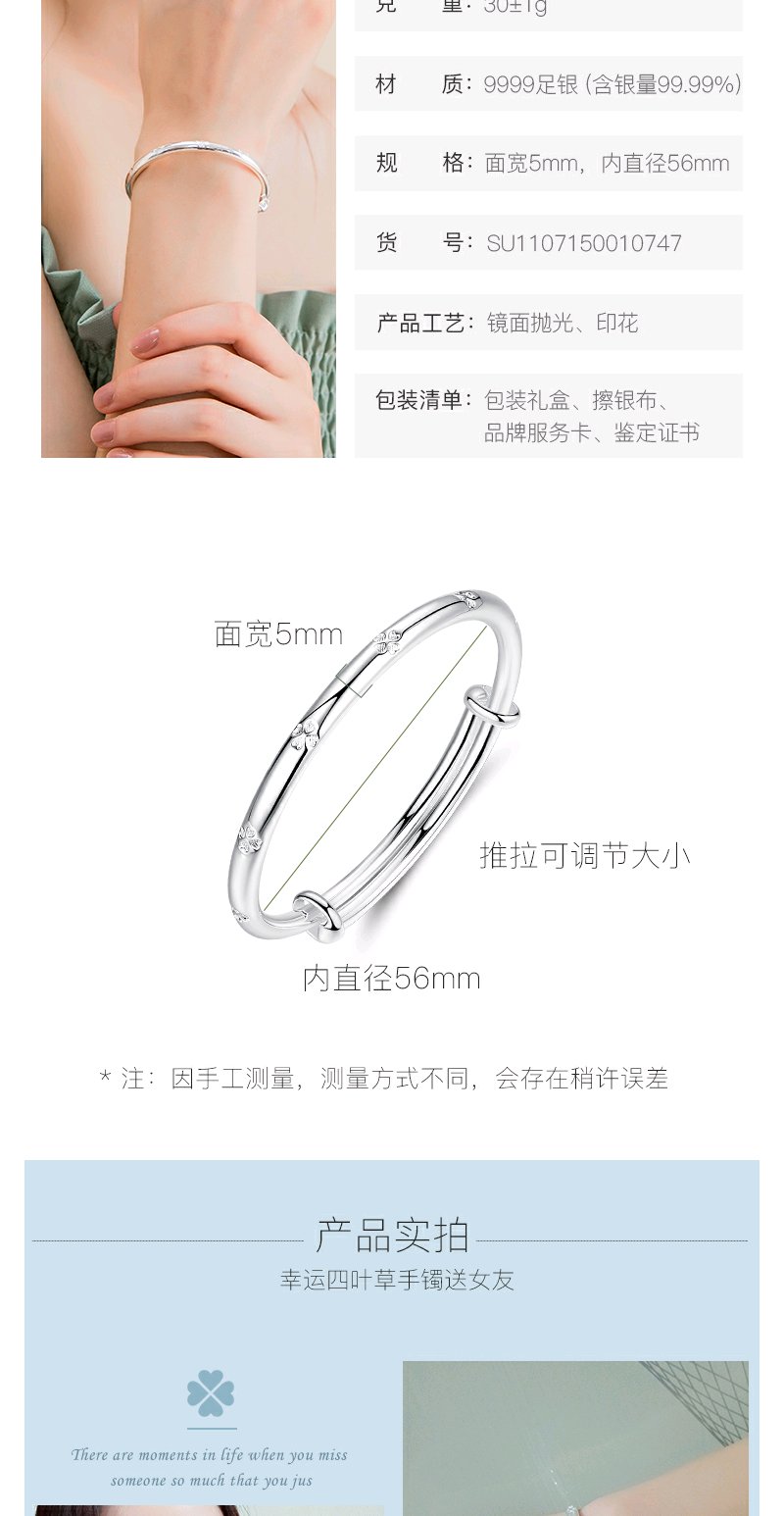 Winy9999足银唯美满天星手镯送女友闺蜜节日生日礼物