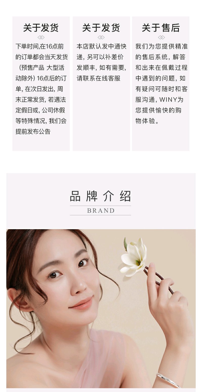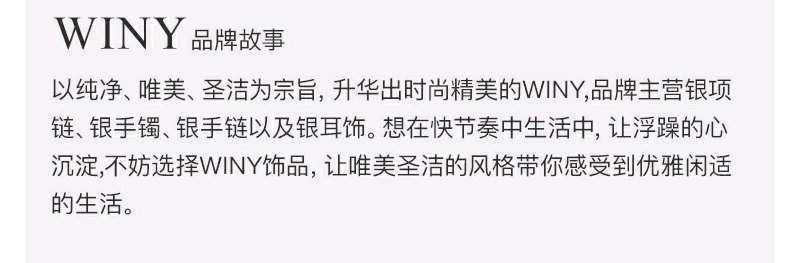 唯一winy是国内网络饰品品牌的先行者。 创立初衷源于对亲情、爱情、友情的珍惜唯一,用心做好每一件饰品为您守护人生中如珠宝般珍贵动人的那些时刻那怕岁月流转,唯爱始终如一。