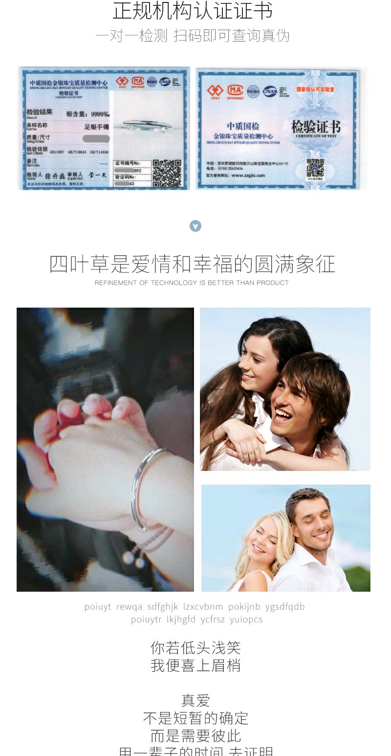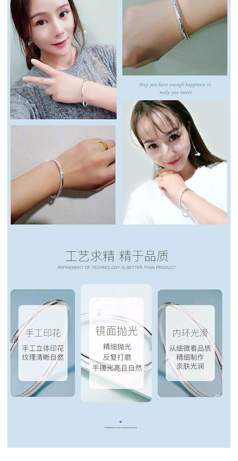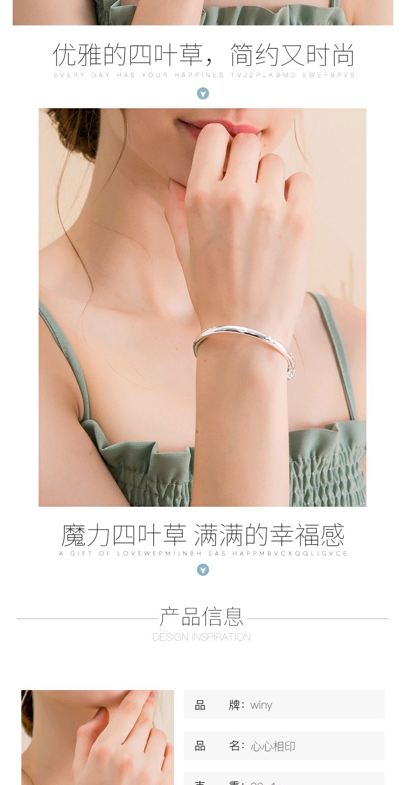 Winy9999足银心心相印手镯送女友闺蜜节日生日礼物