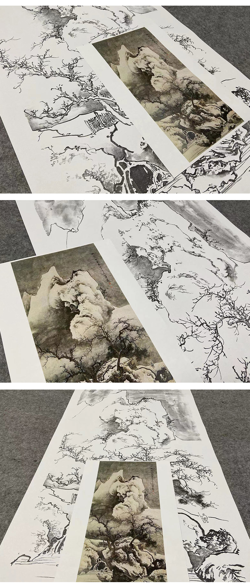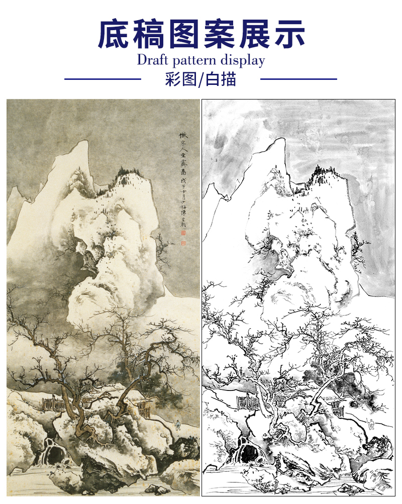 陈少梅竖幅工笔山水白描底稿-《雪霁图》-多种白描尺寸可选-CR38