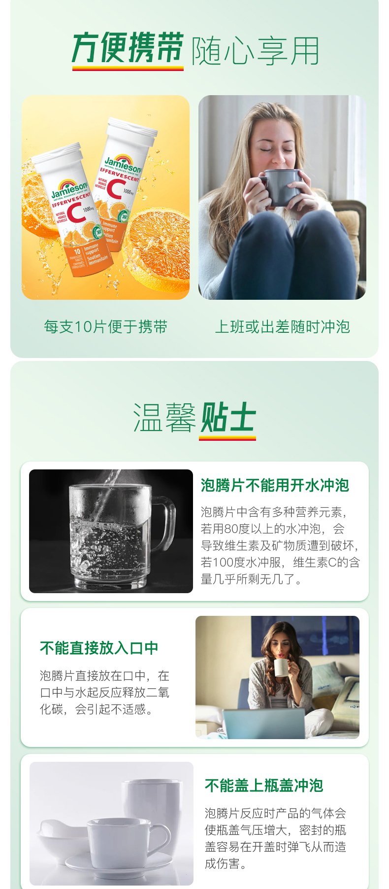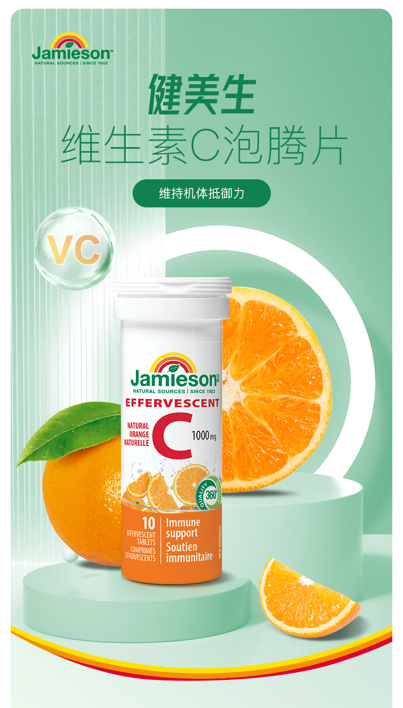 【品牌发货】Jamieson健美生维生素C泡腾片10片嫩白肌肤片剂