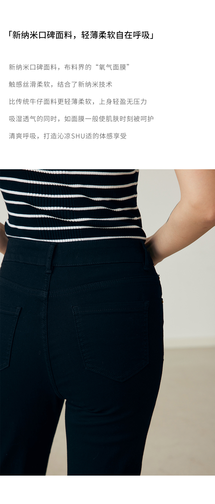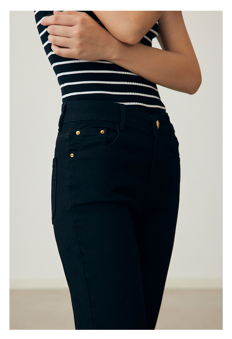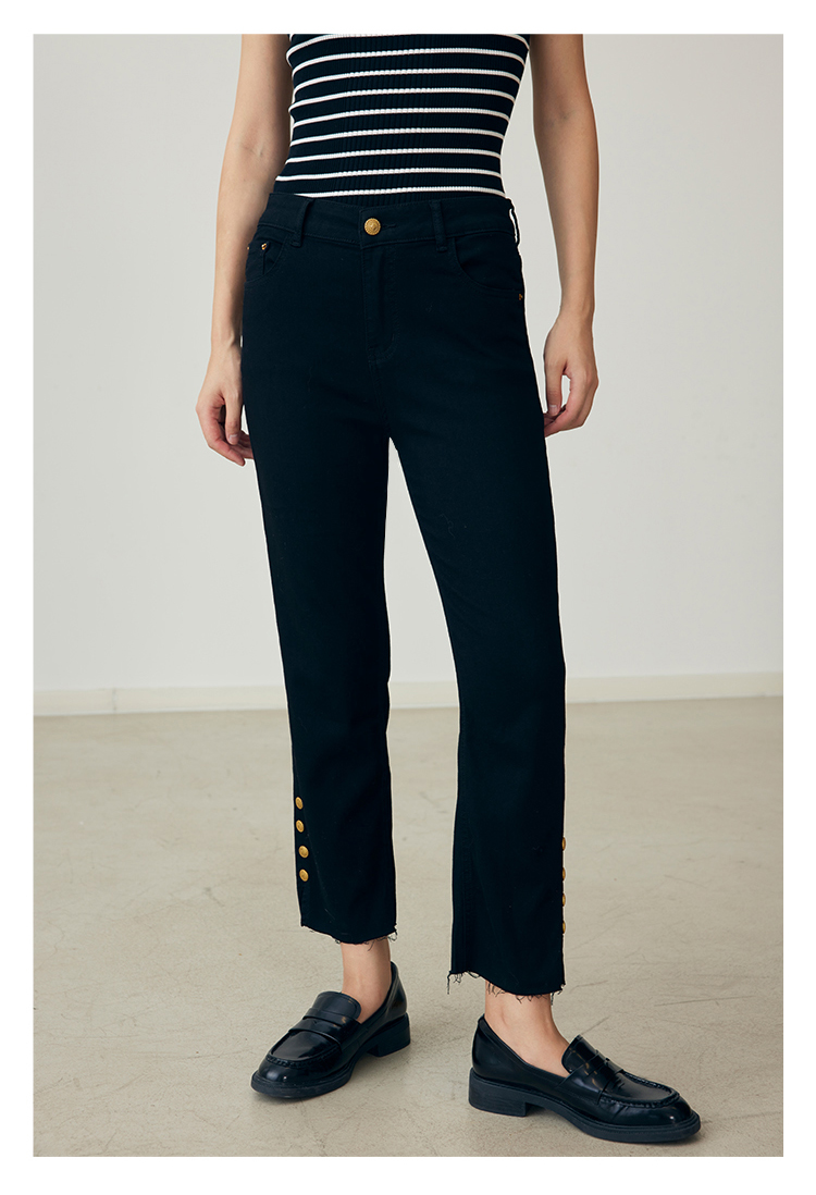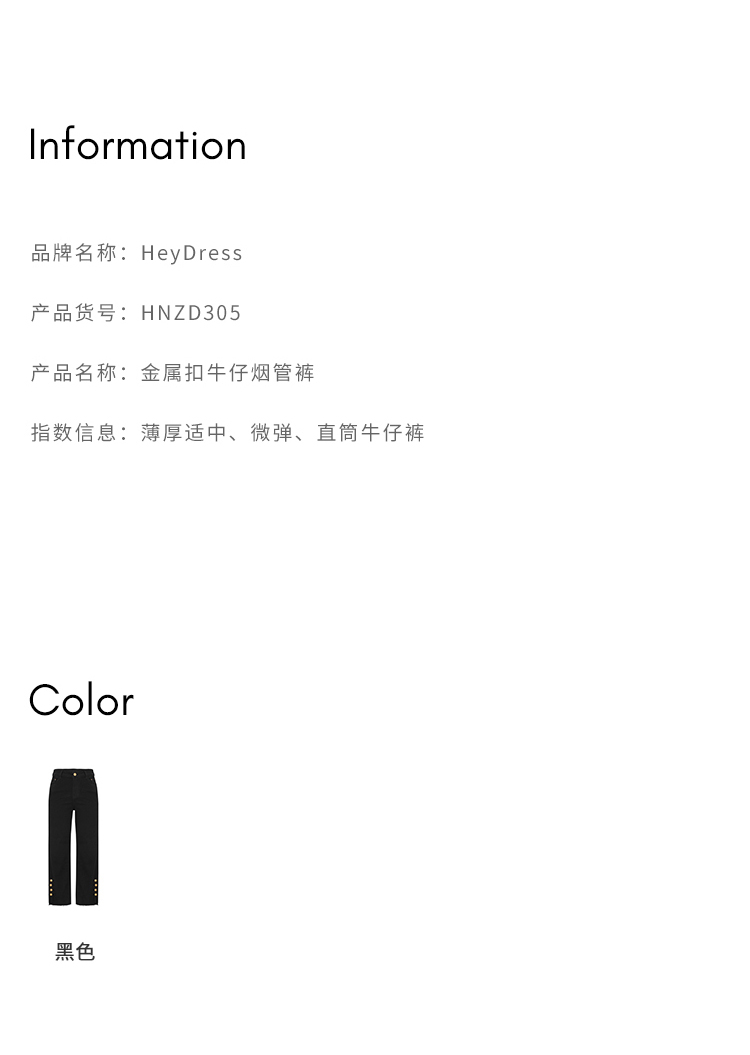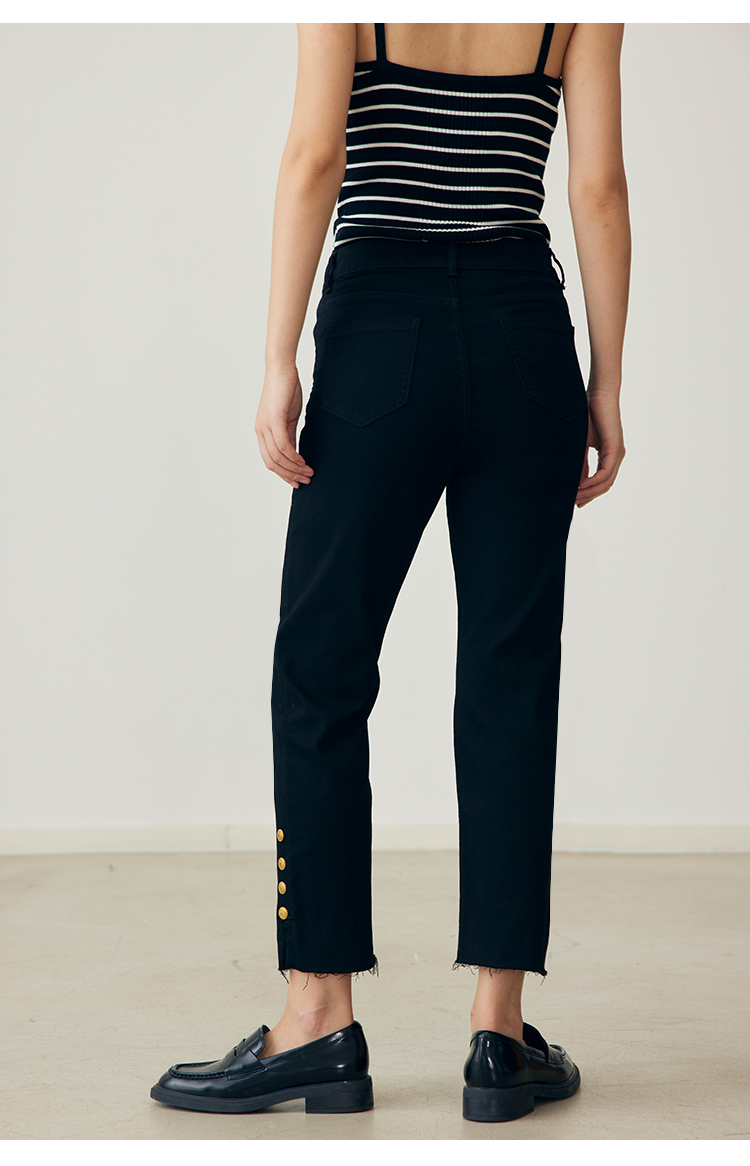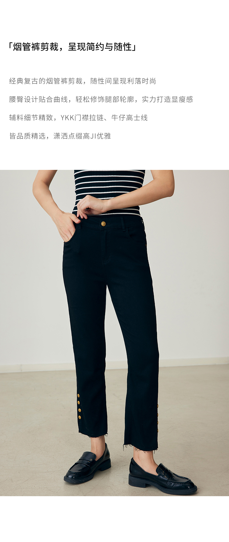HeyDress法式九分牛仔裤女春秋高腰直筒烟管裤显瘦小个子黑色裤子