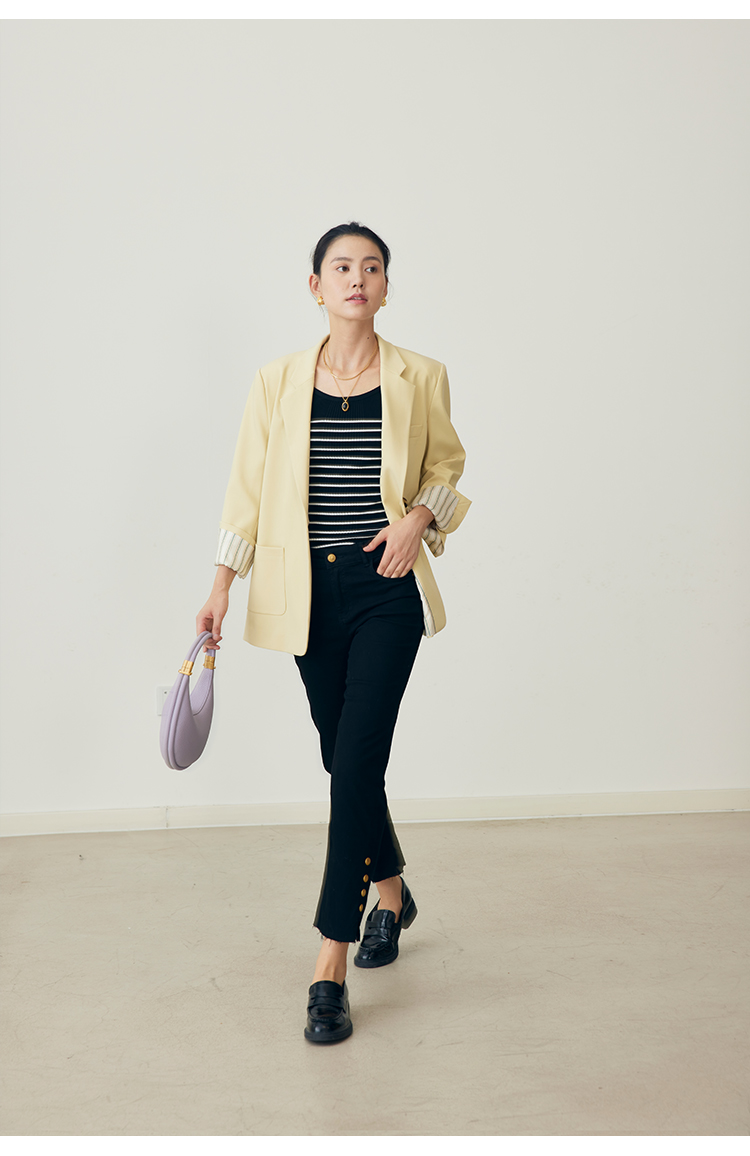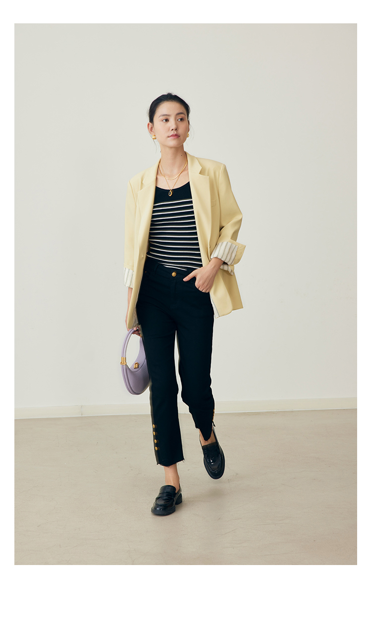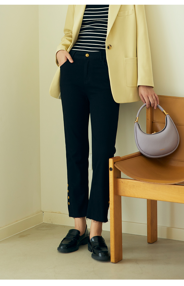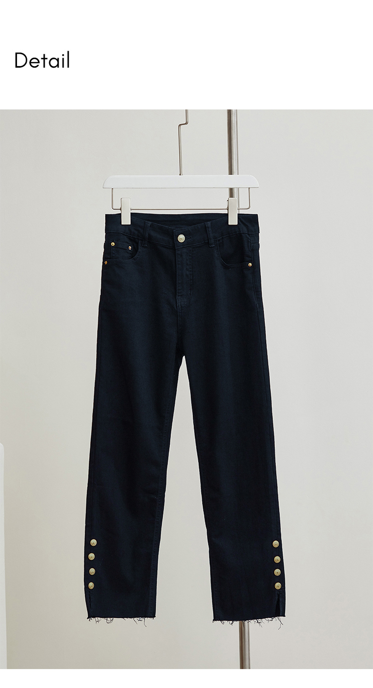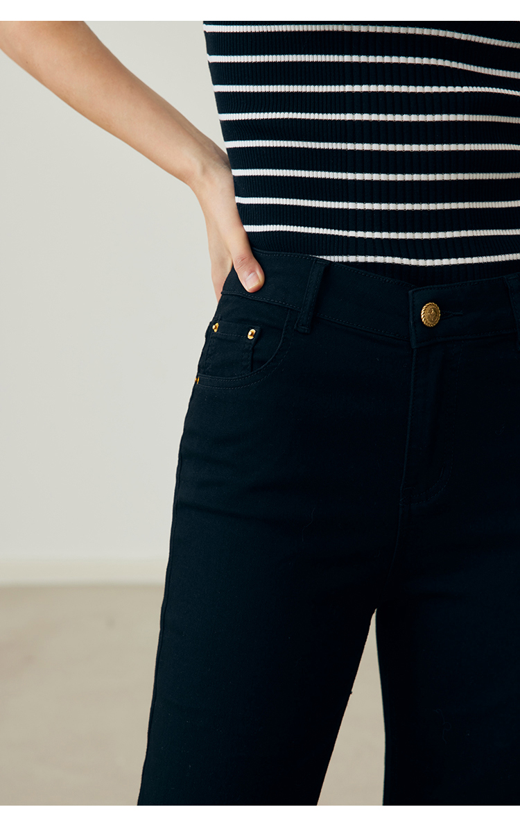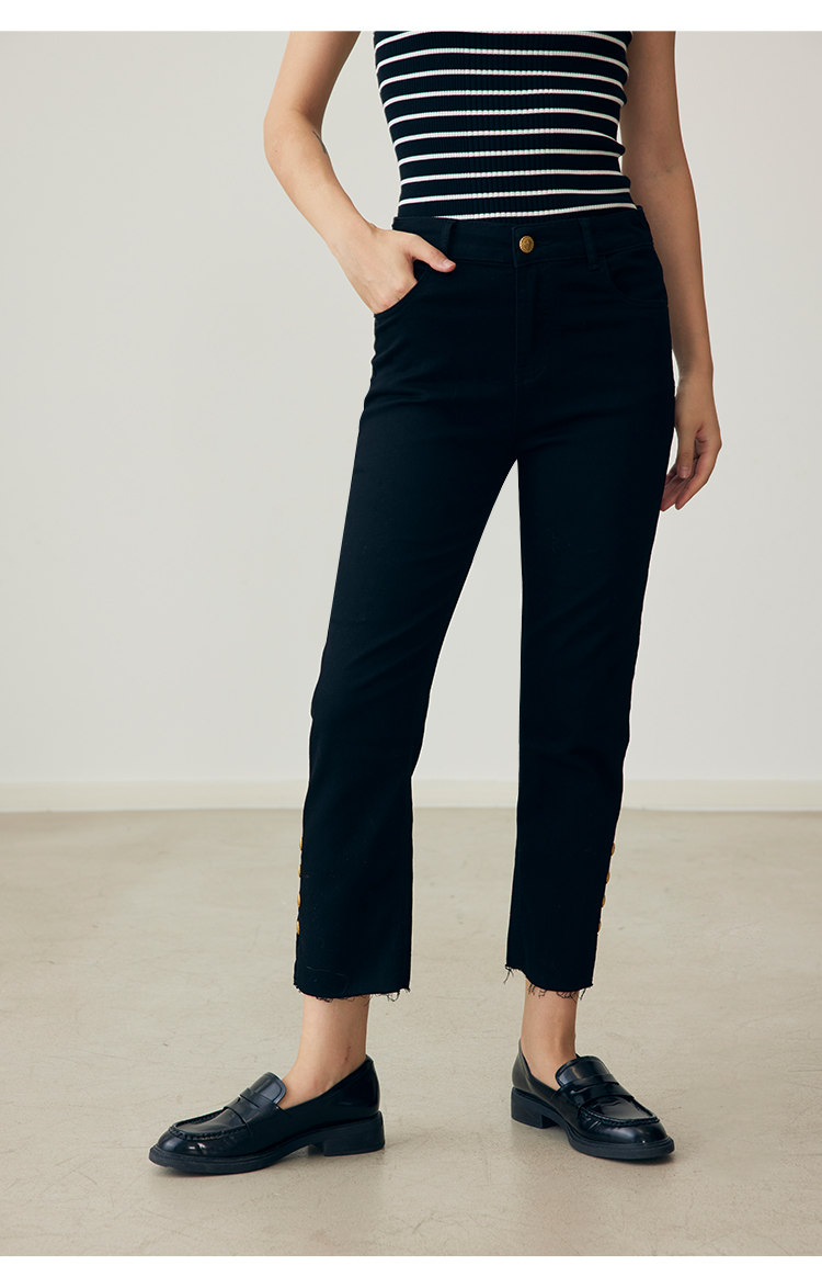 HeyDress法式九分牛仔裤女春秋高腰直筒烟管裤显瘦小个子黑色裤子