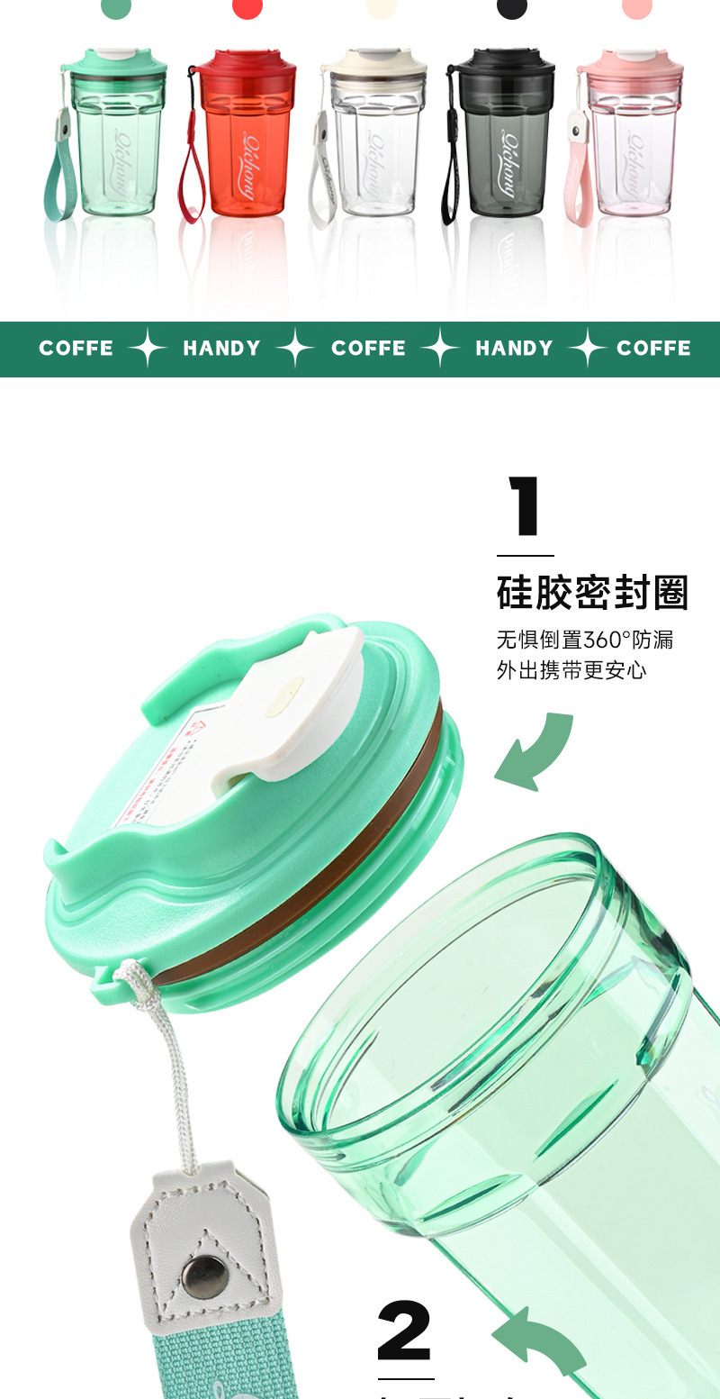 【健康pc❗360°防漏】网红高颜值车载塑料咖啡杯便携户外防摔随行杯时尚学生用水杯。xa
