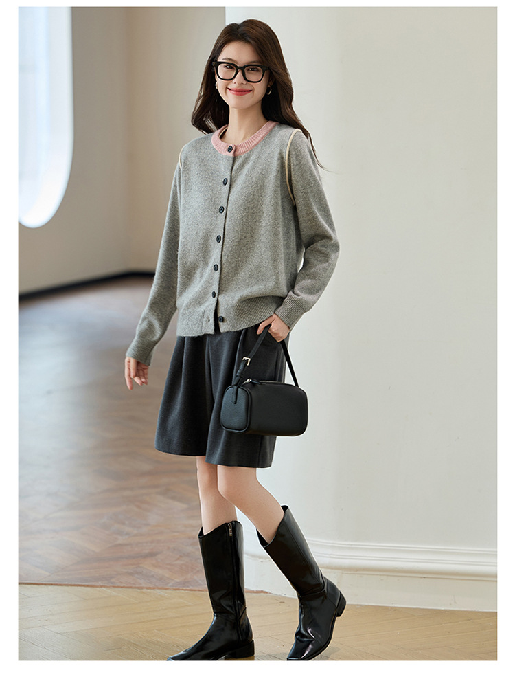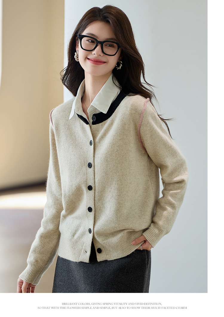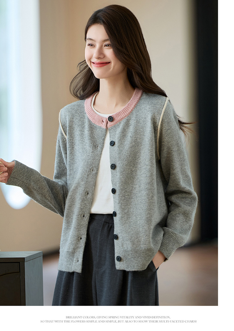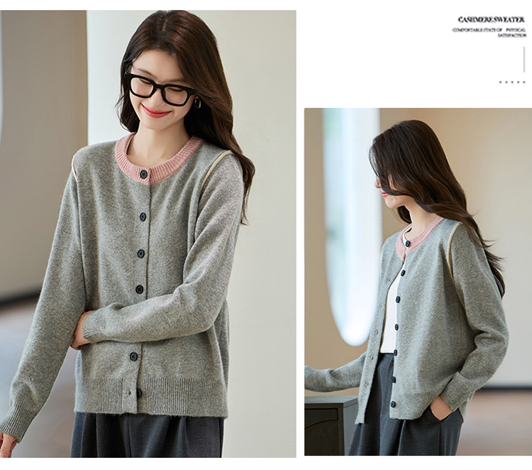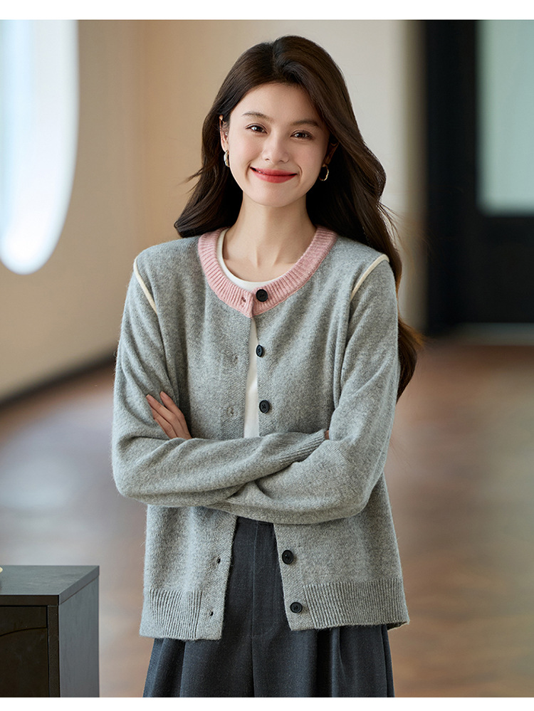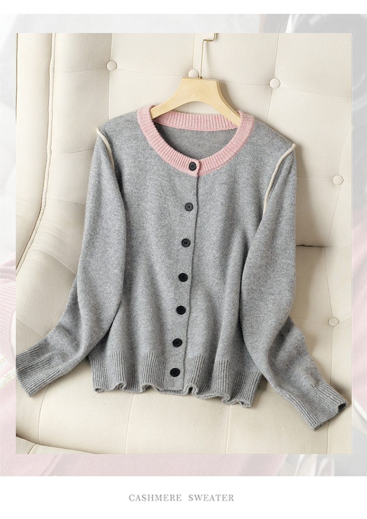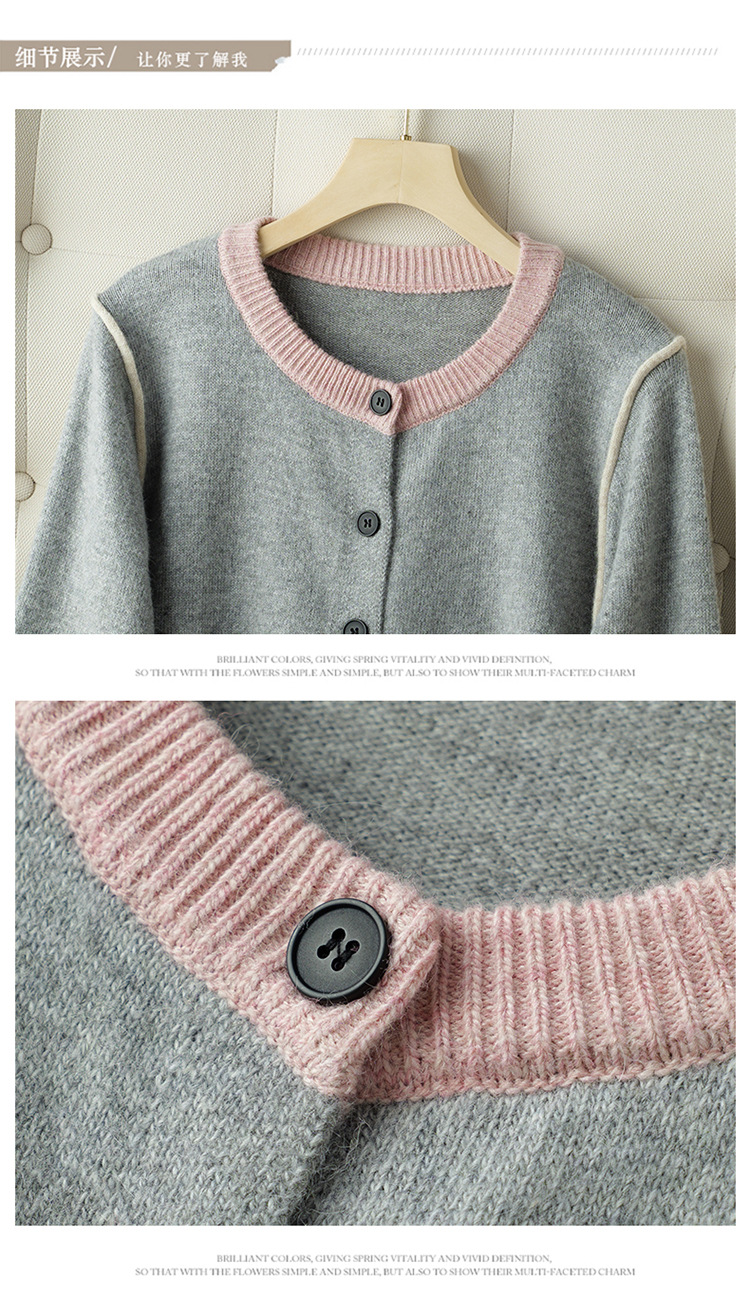 CC-J865秋装新款时髦插肩袖显瘦针织开衫休闲短款拼色小个子上衣女厚