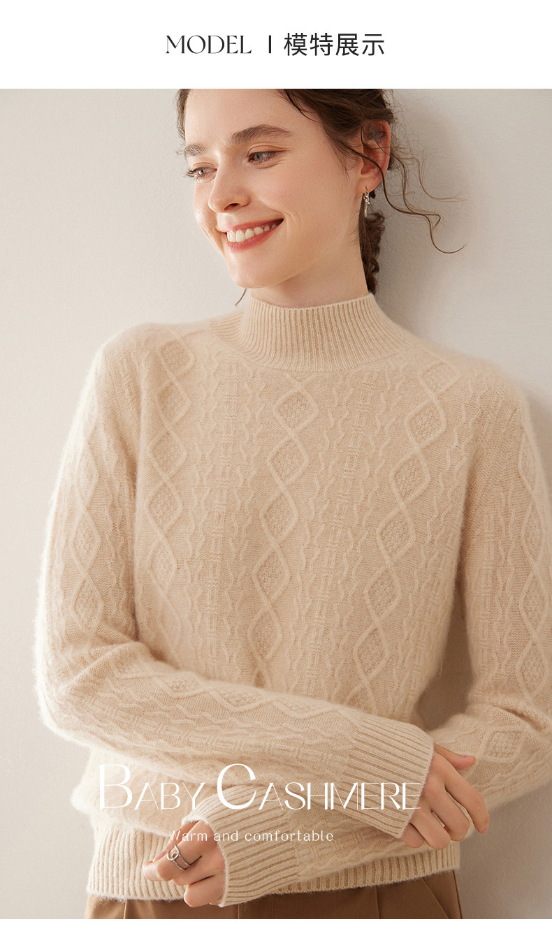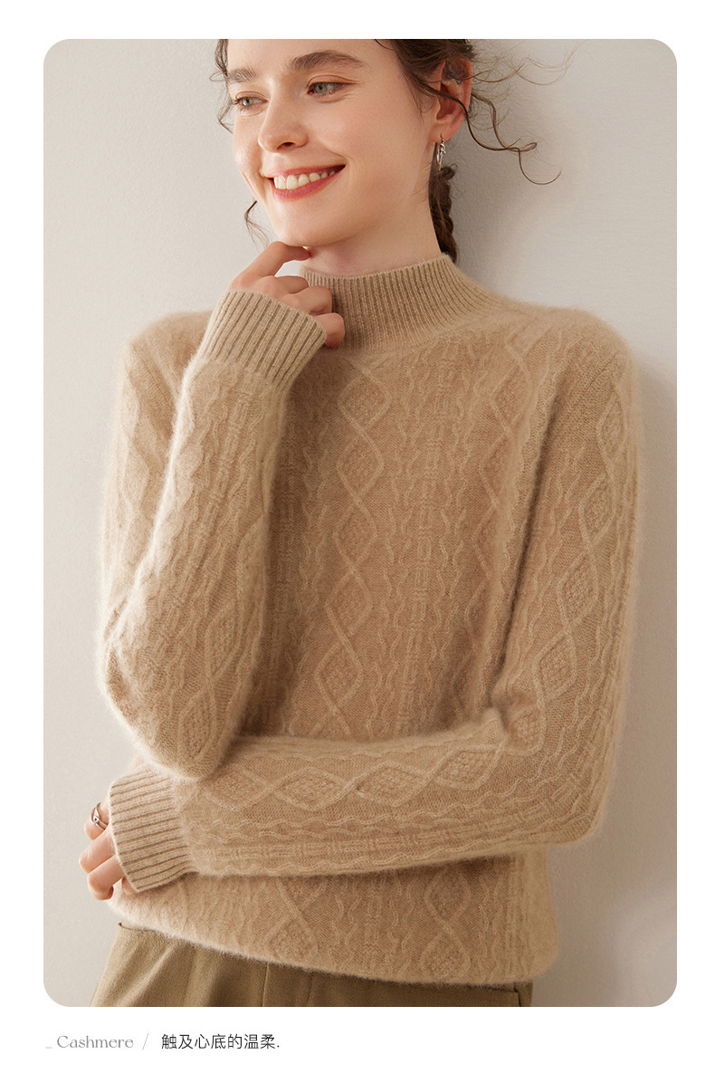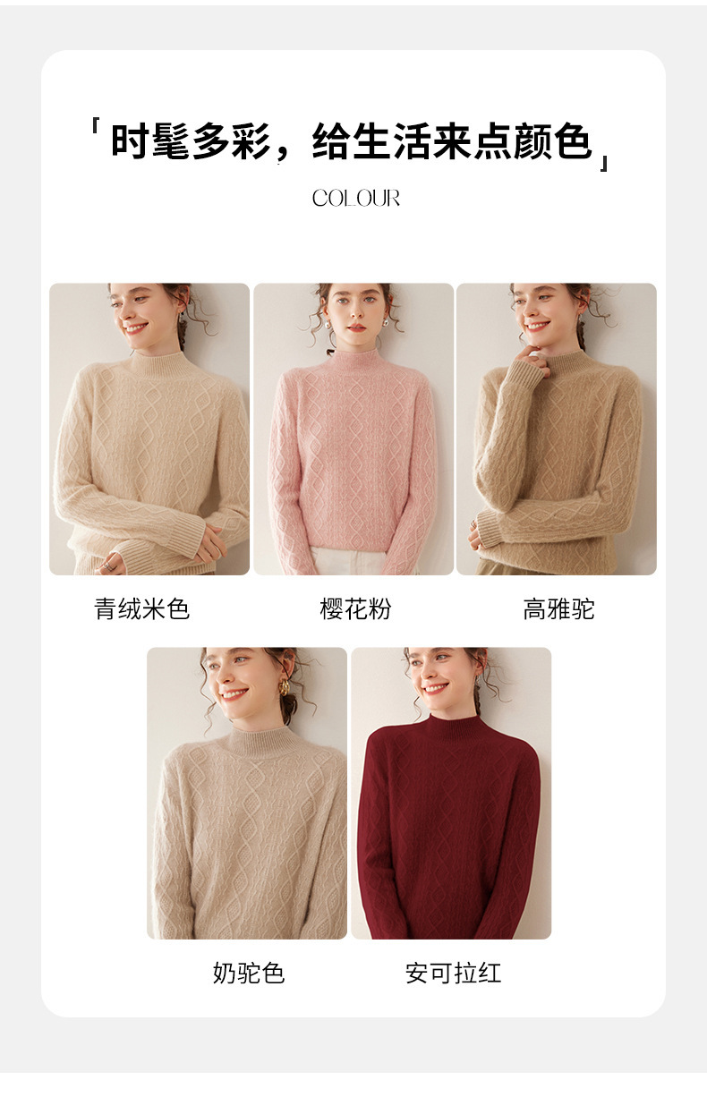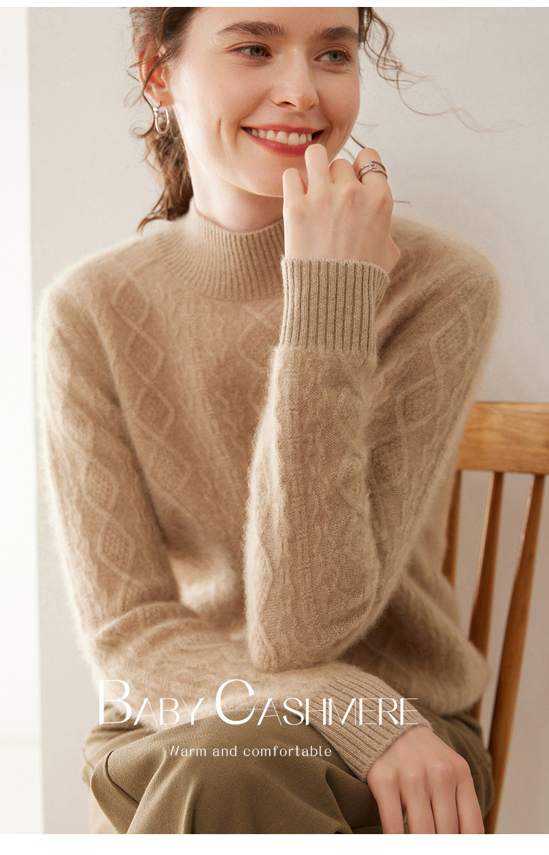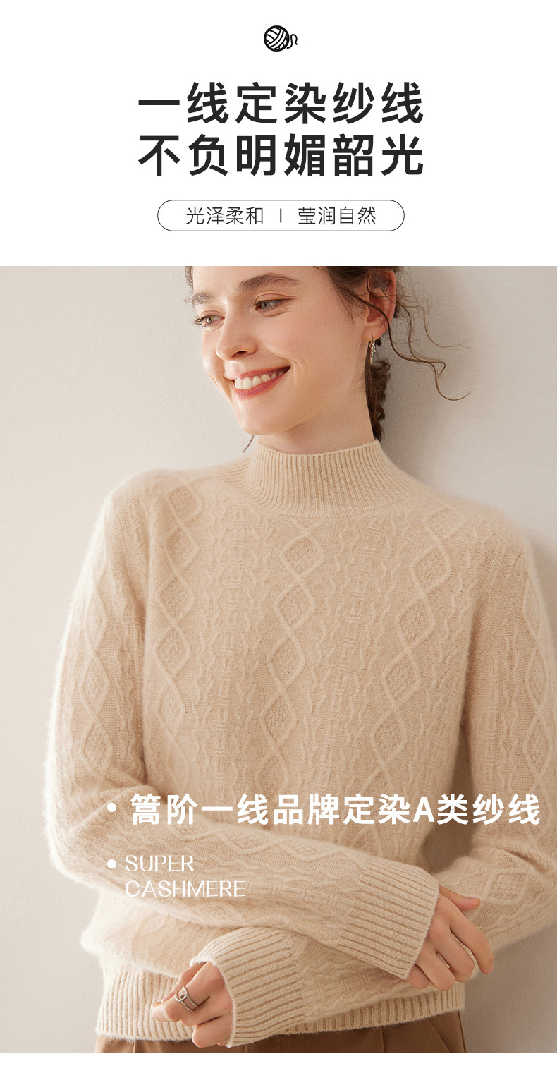 【自】全新升级【铂金会员514/天猫699/差价185】(20252) 洛诗琳复古麻花半高领套头山羊绒毛针织衫显瘦麻花羊绒衫
