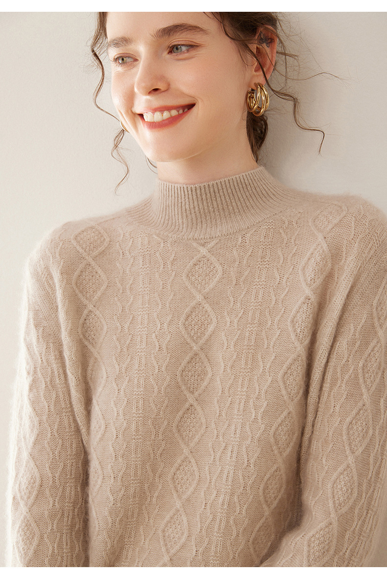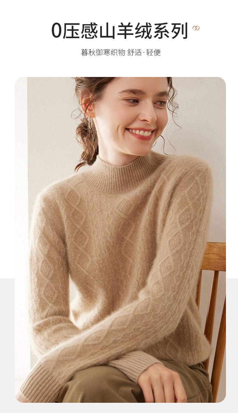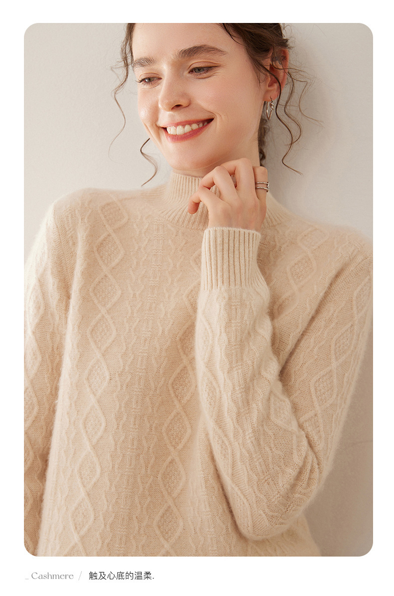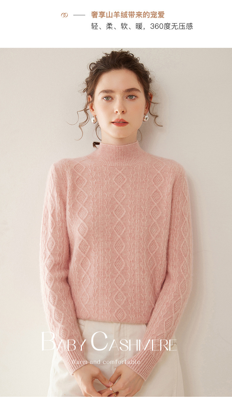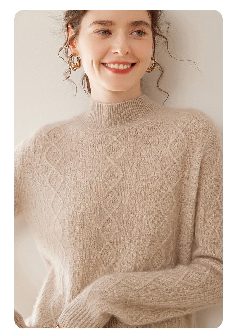 【自】全新升级【铂金会员514/天猫699/差价185】(20252) 洛诗琳复古麻花半高领套头山羊绒毛针织衫显瘦麻花羊绒衫