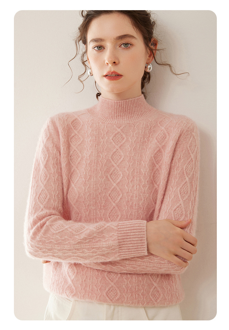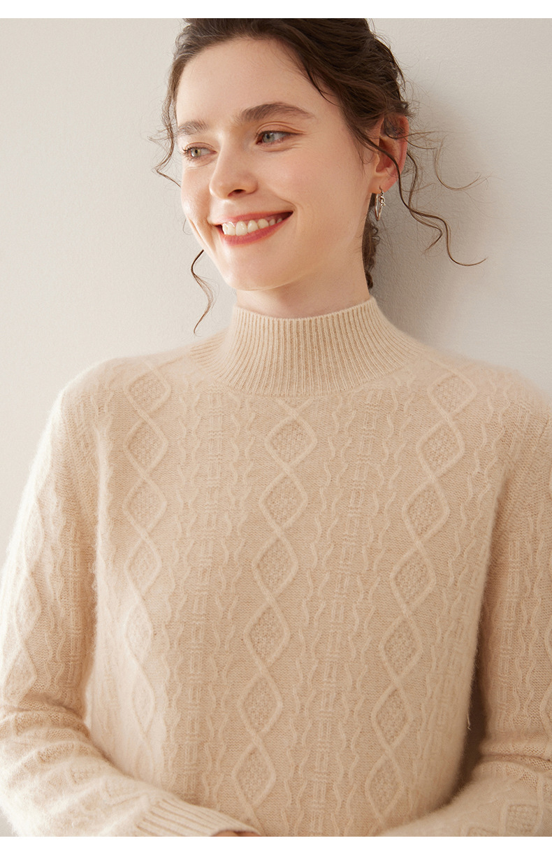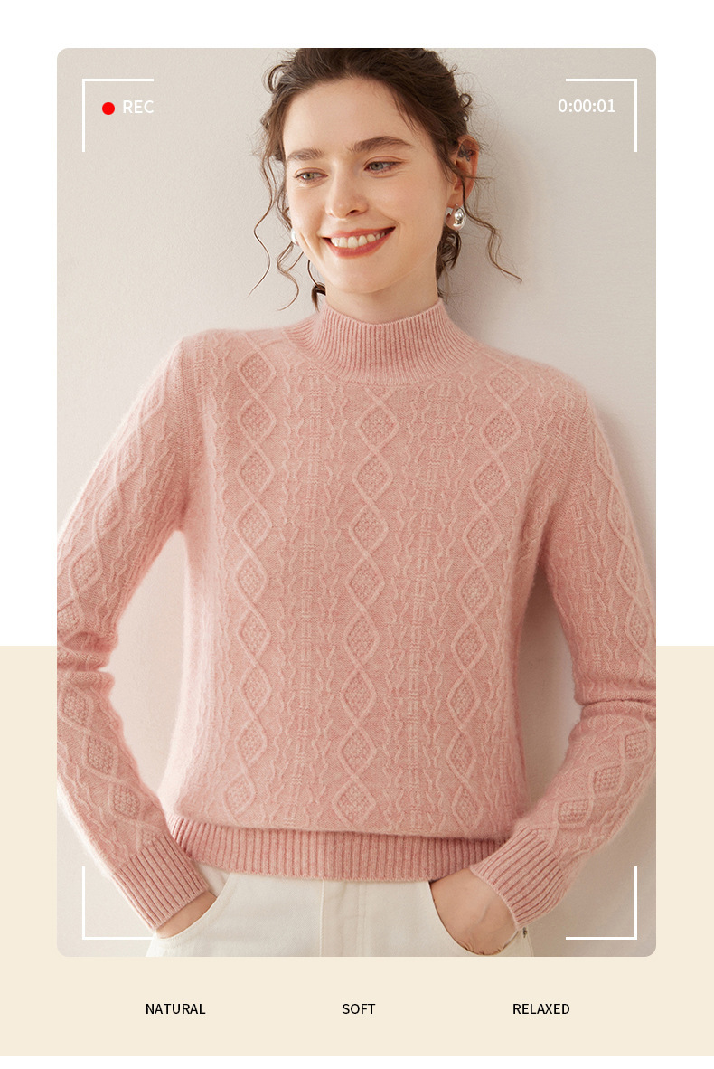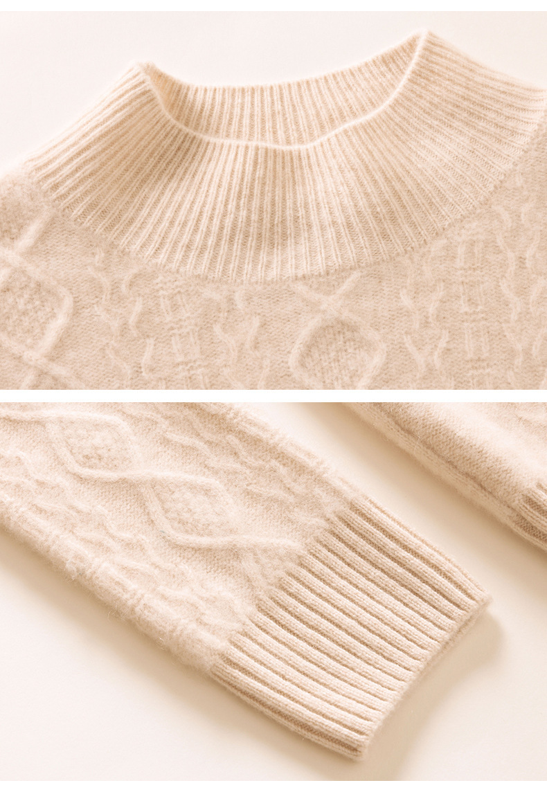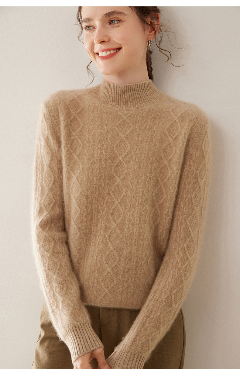 【自】全新升级【铂金会员514/天猫699/差价185】(20252) 洛诗琳复古麻花半高领套头山羊绒毛针织衫显瘦麻花羊绒衫