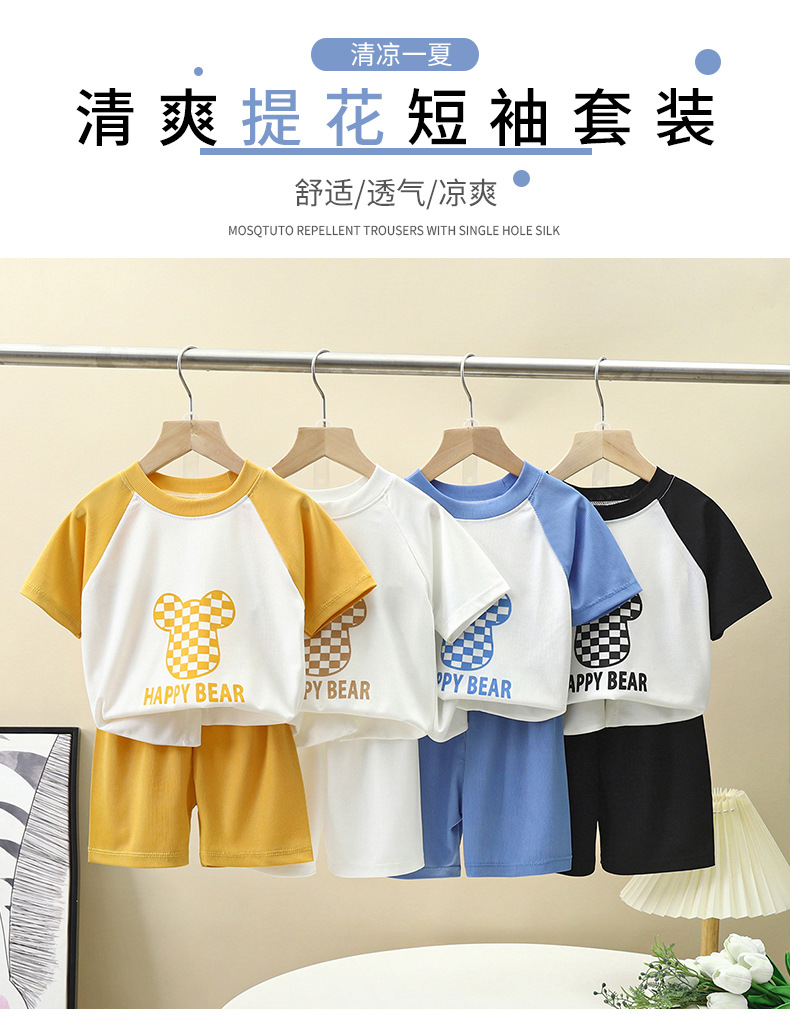 【清仓捡漏39.9两套】大弹力清爽舒适透气,收缩自如不卷边,儿童夏季家居服套装,中大童薄款衣服,男童女童夏童装短袖两件套