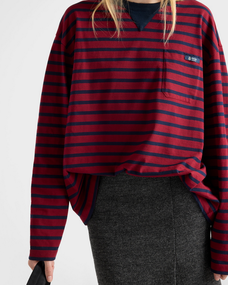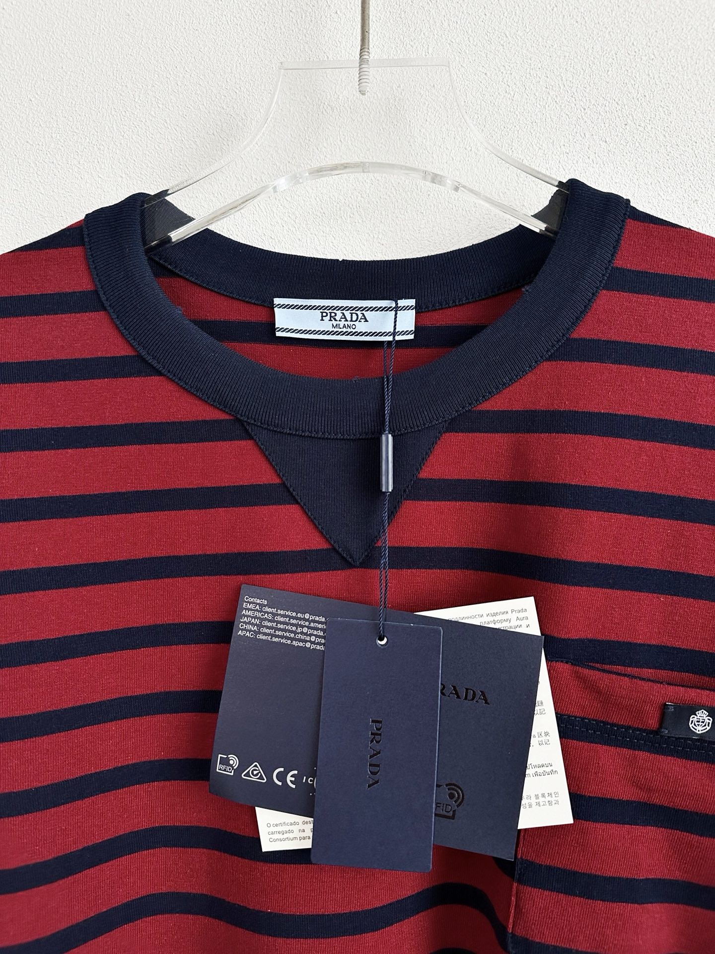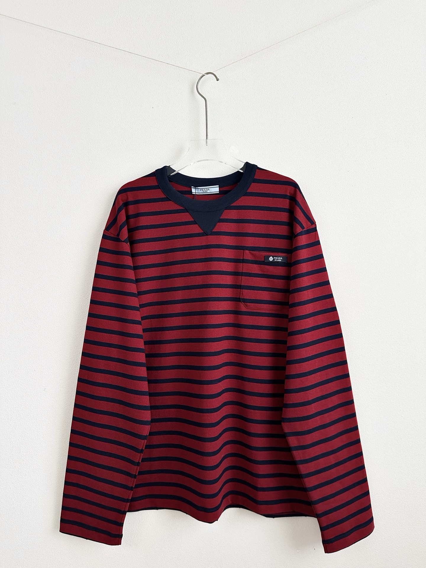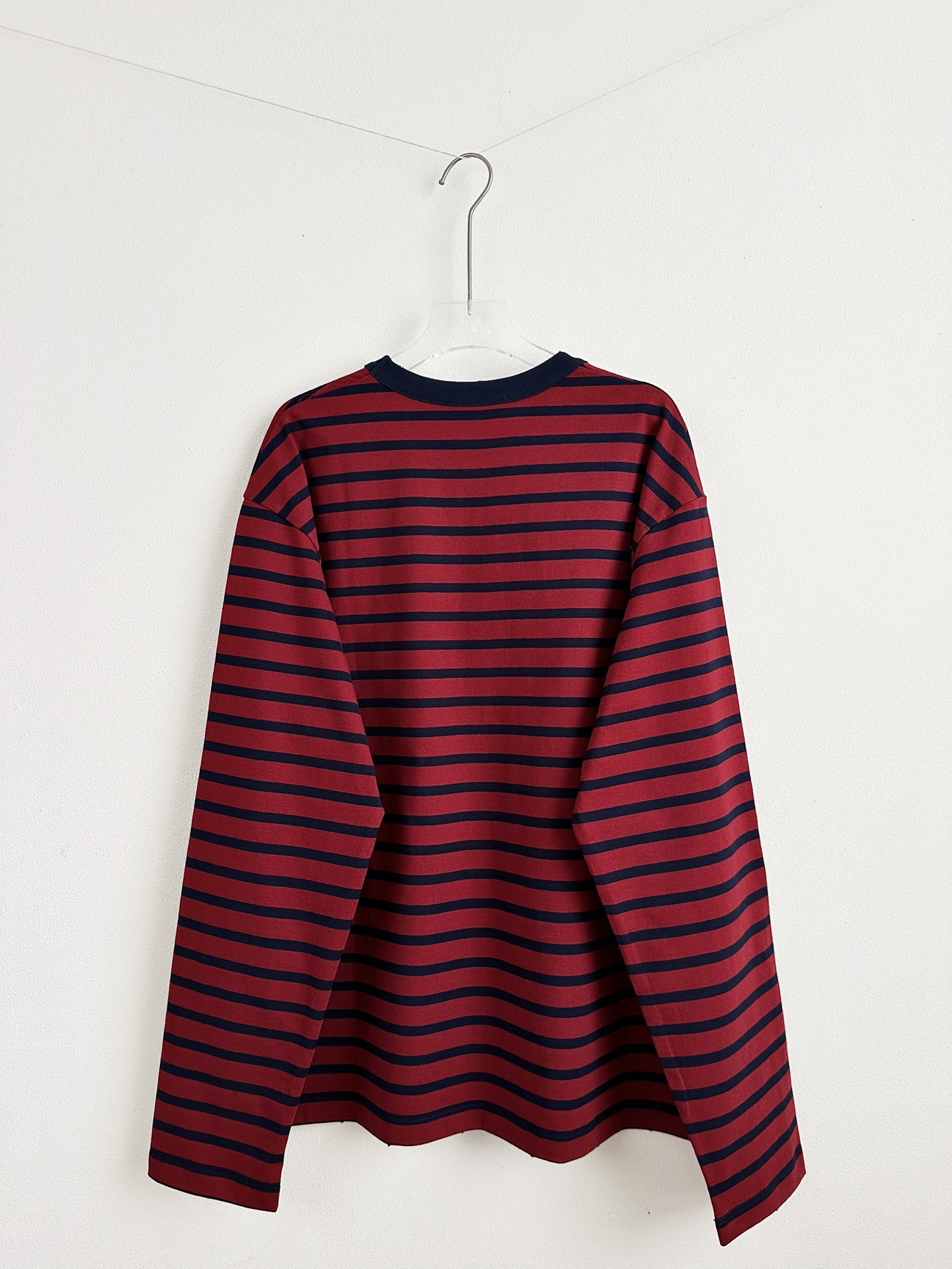 这件衣服就是休闲T恤,条纹和胸口口袋的设计很有复古的感觉