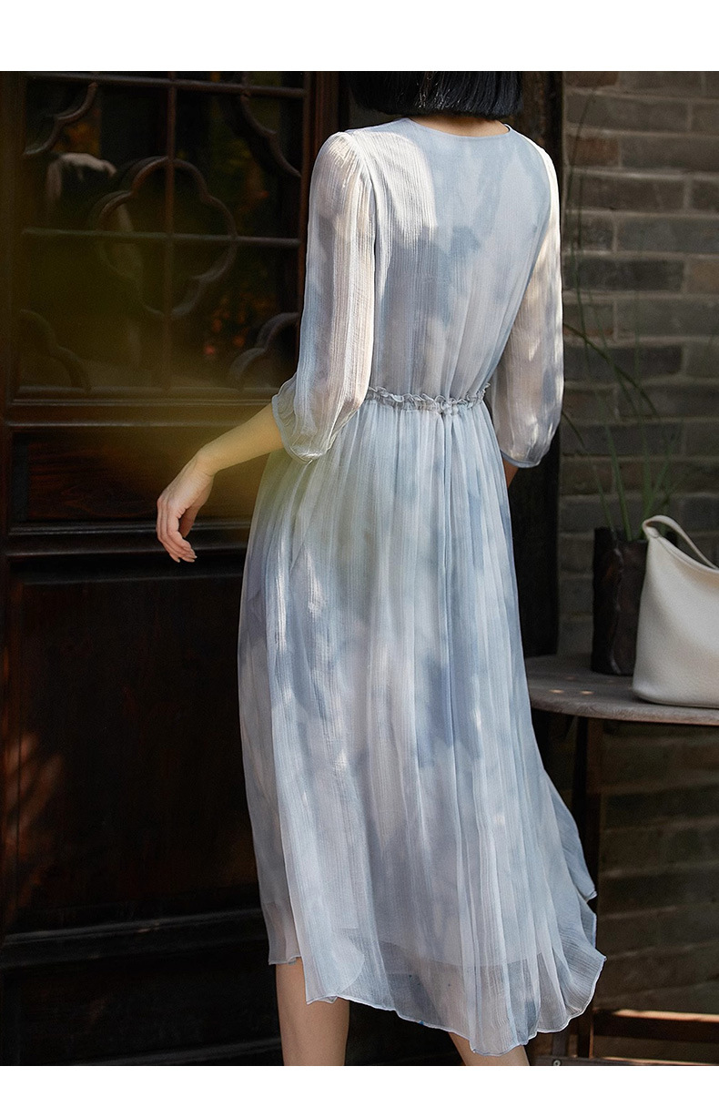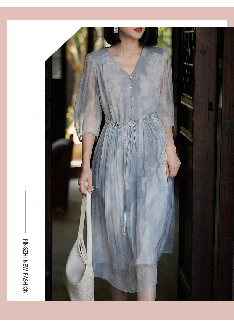 【高货ayts】全新升级【铂金会员514/天猫689/差价175】(13811) 洛诗琳夏季女装新款高端收腰印花真丝连衣裙