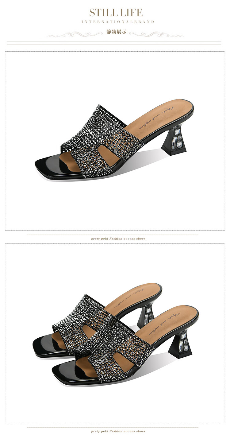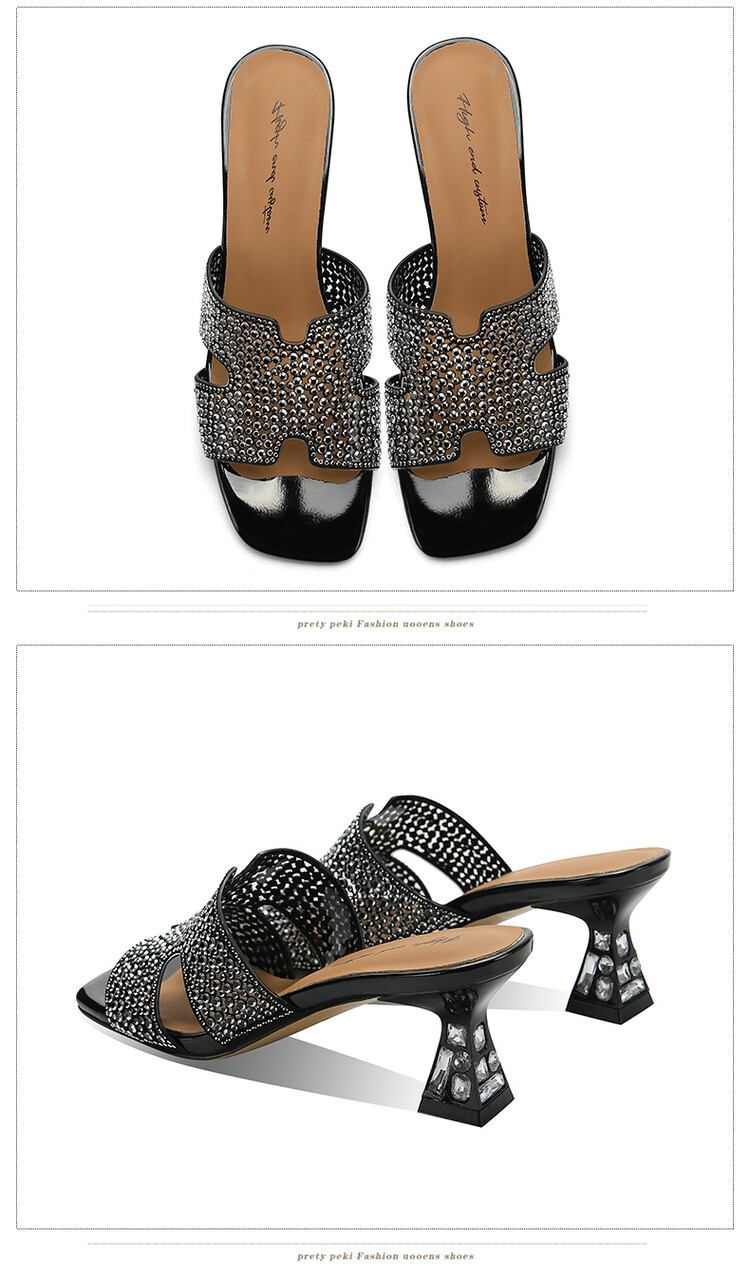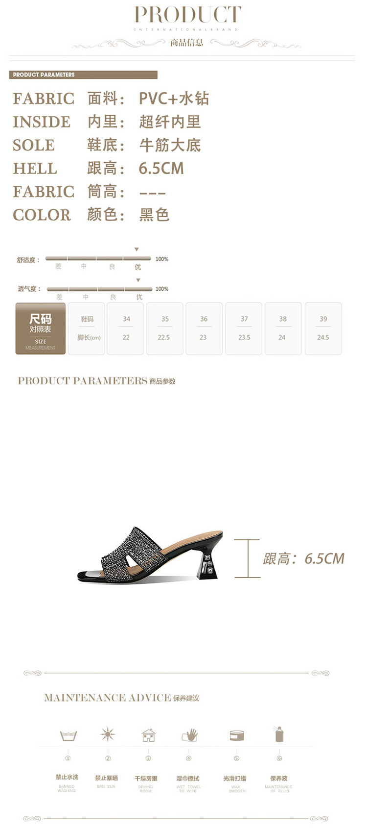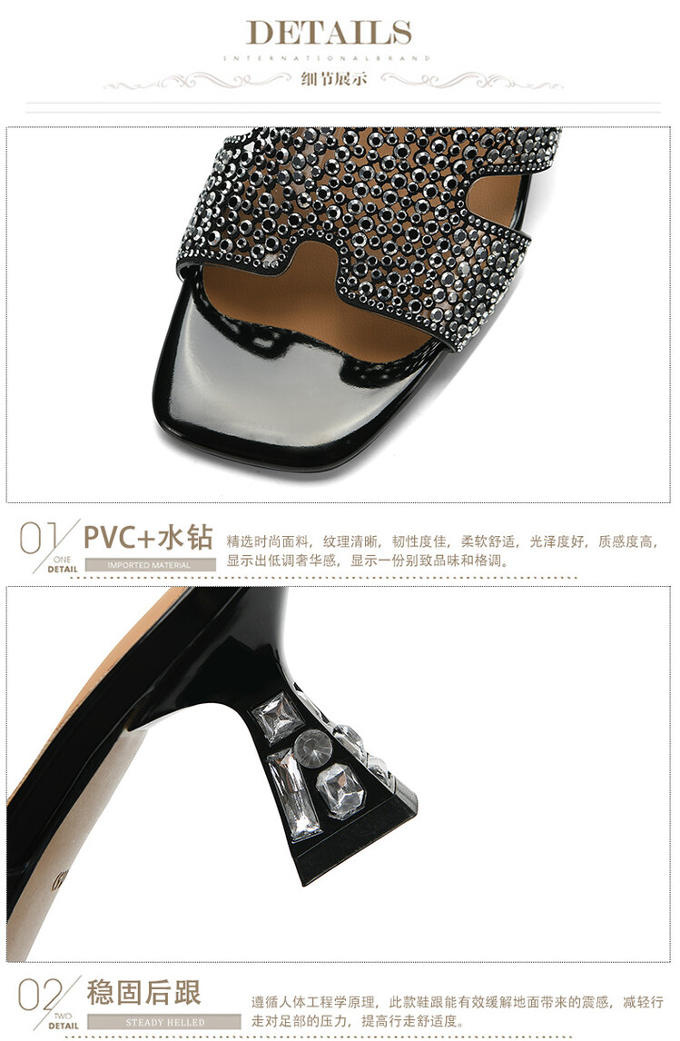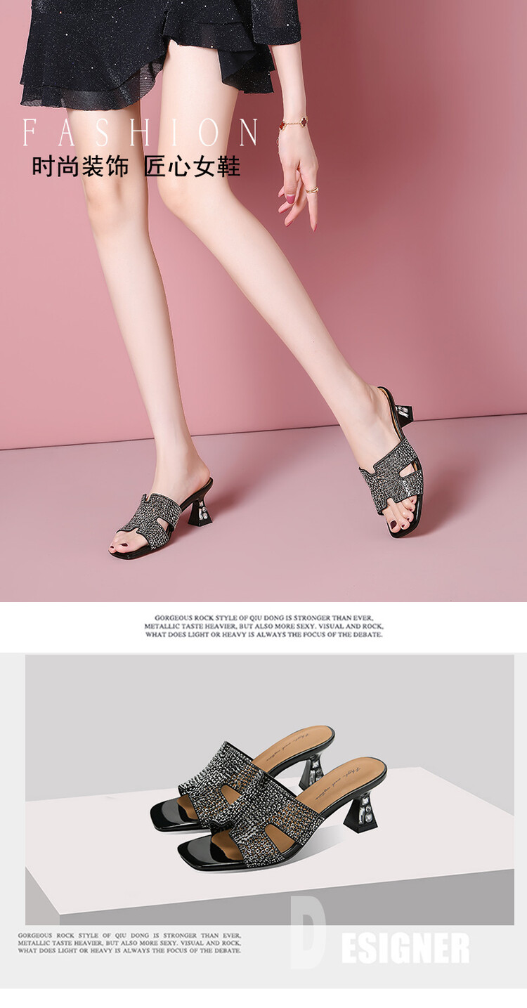 【预售5天】时尚水钻一字拖鞋女夏外穿高跟烫钻H拖气质露趾凉拖SY&5100