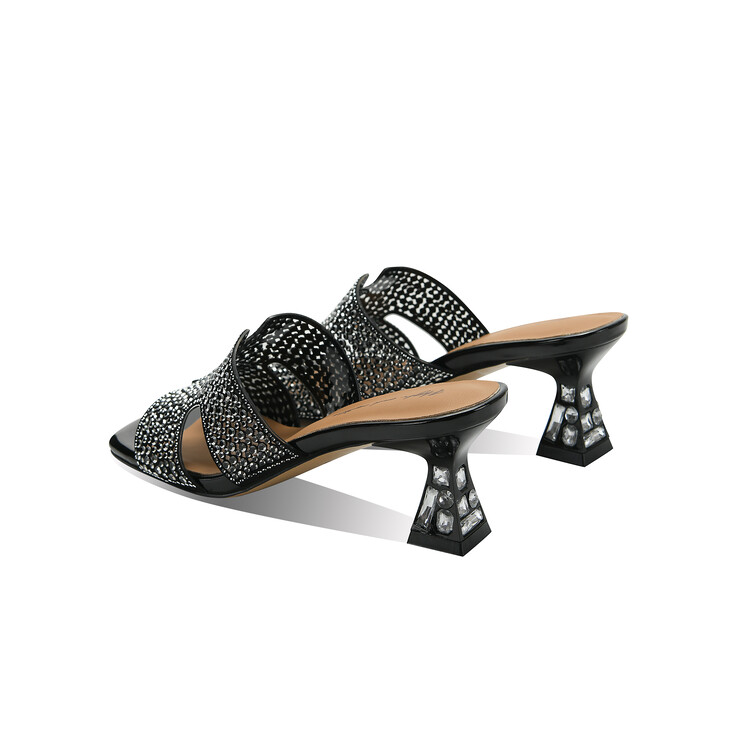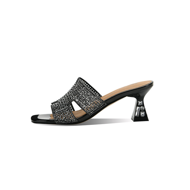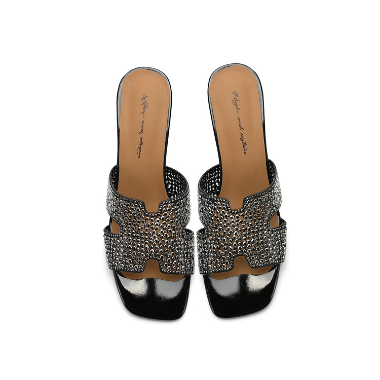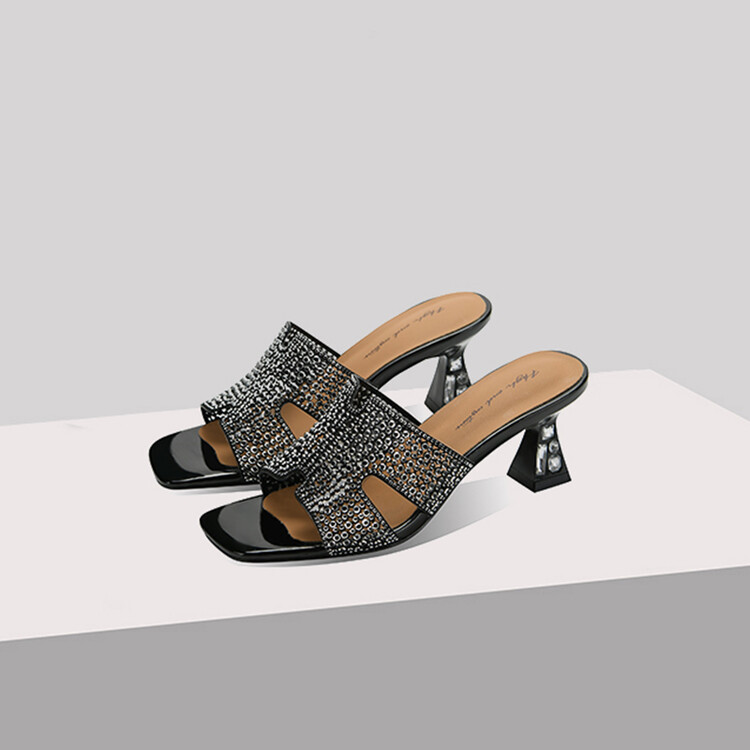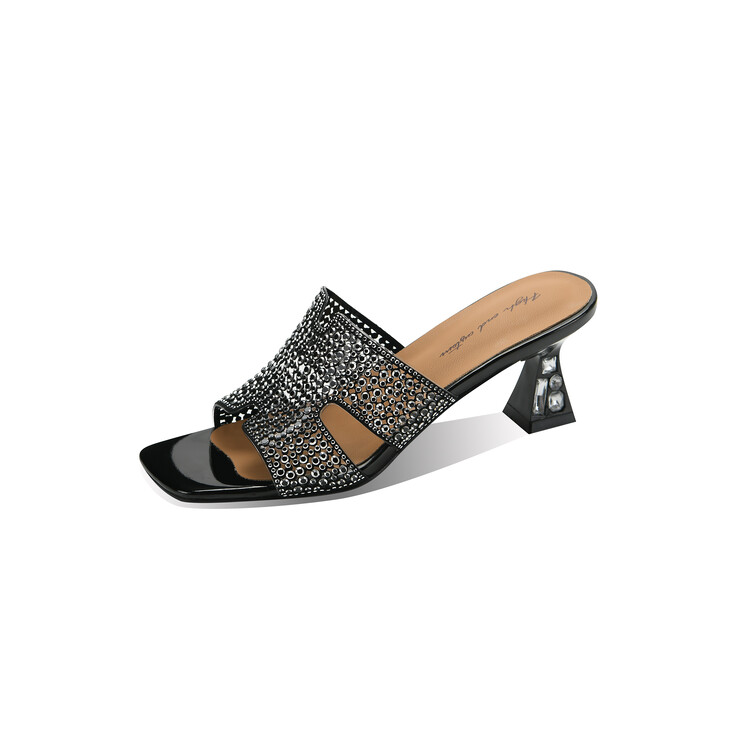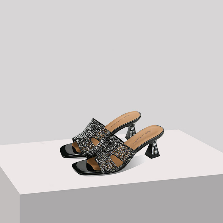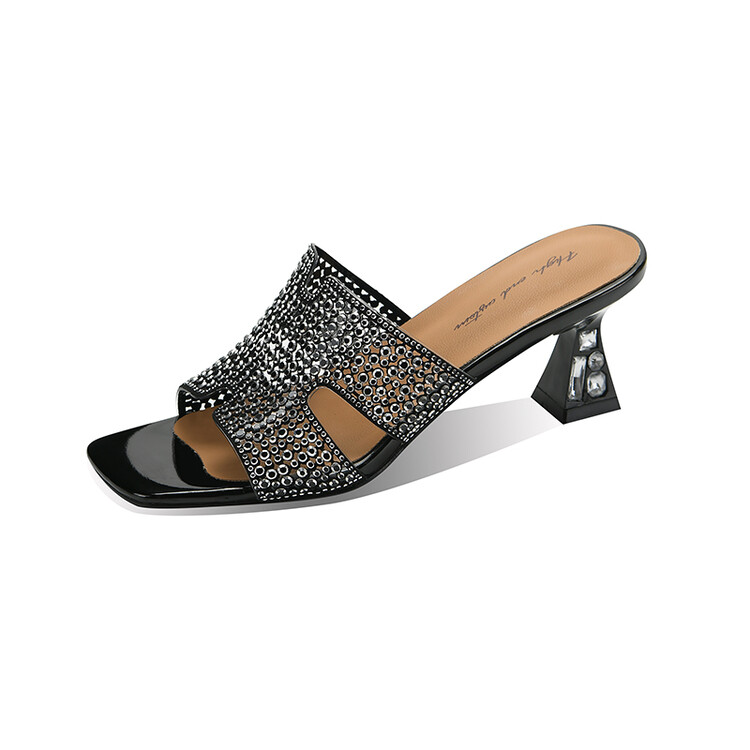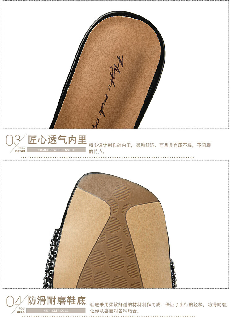 【预售5天】时尚水钻一字拖鞋女夏外穿高跟烫钻H拖气质露趾凉拖SY&5100