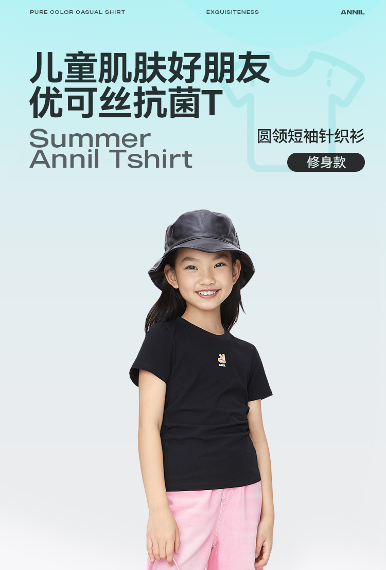 女童3A级抗菌短袖T恤新款安奈儿童装实体店同款AG411557