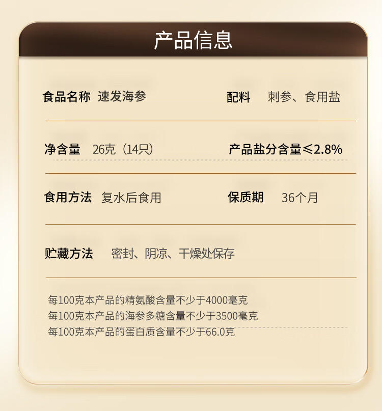 [正宗同仁堂品牌]北京同仁堂 造养青年 速发海参26克 14只 送礼盒 选自辽宁 严格控盐 营养高标SY