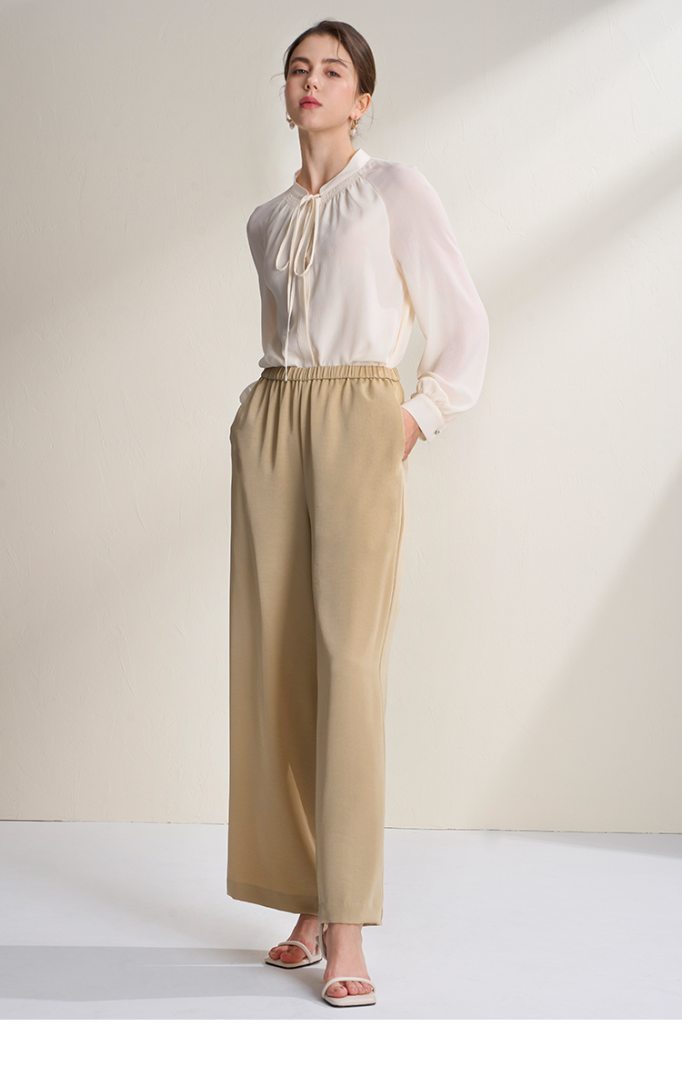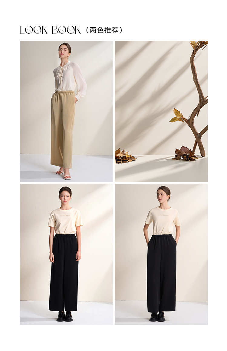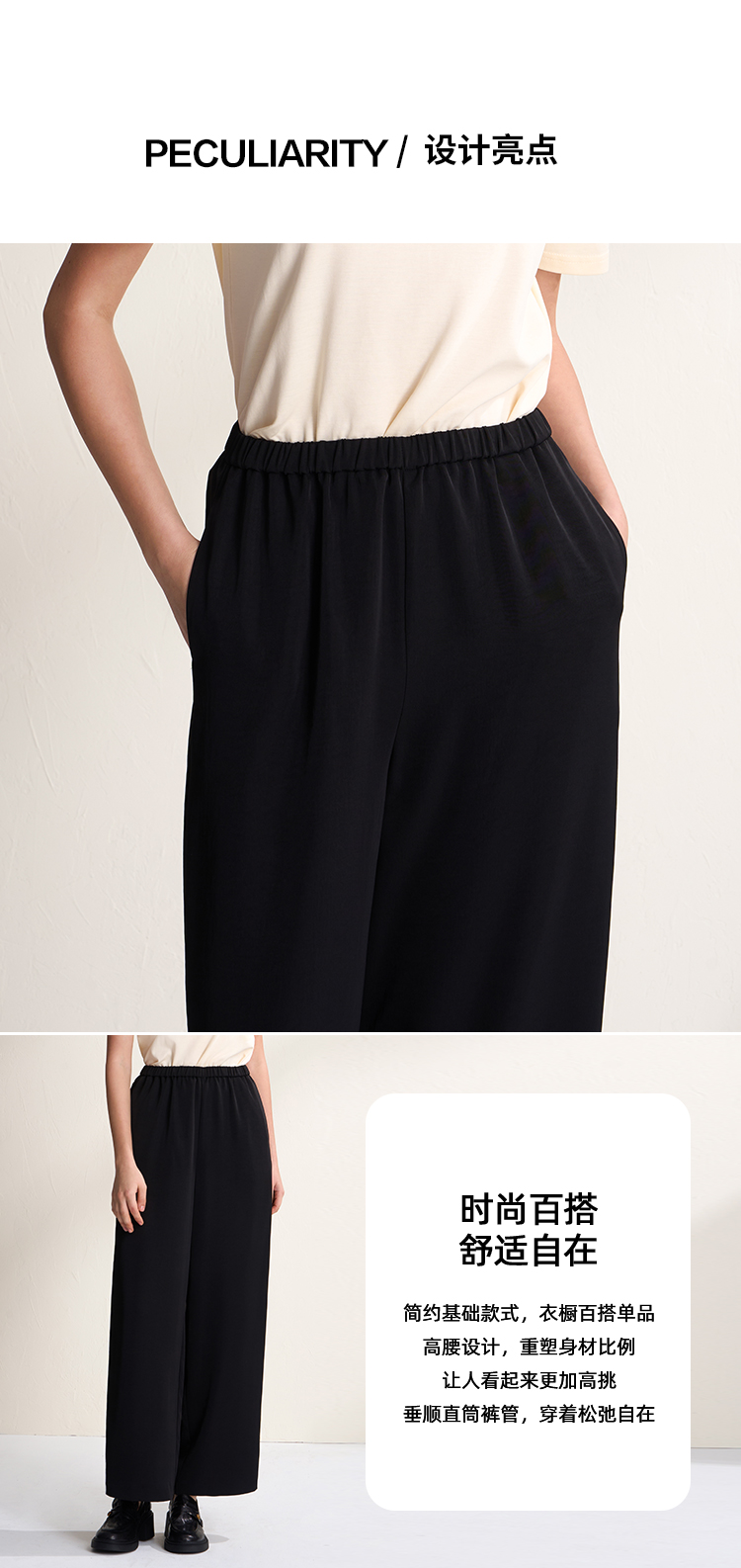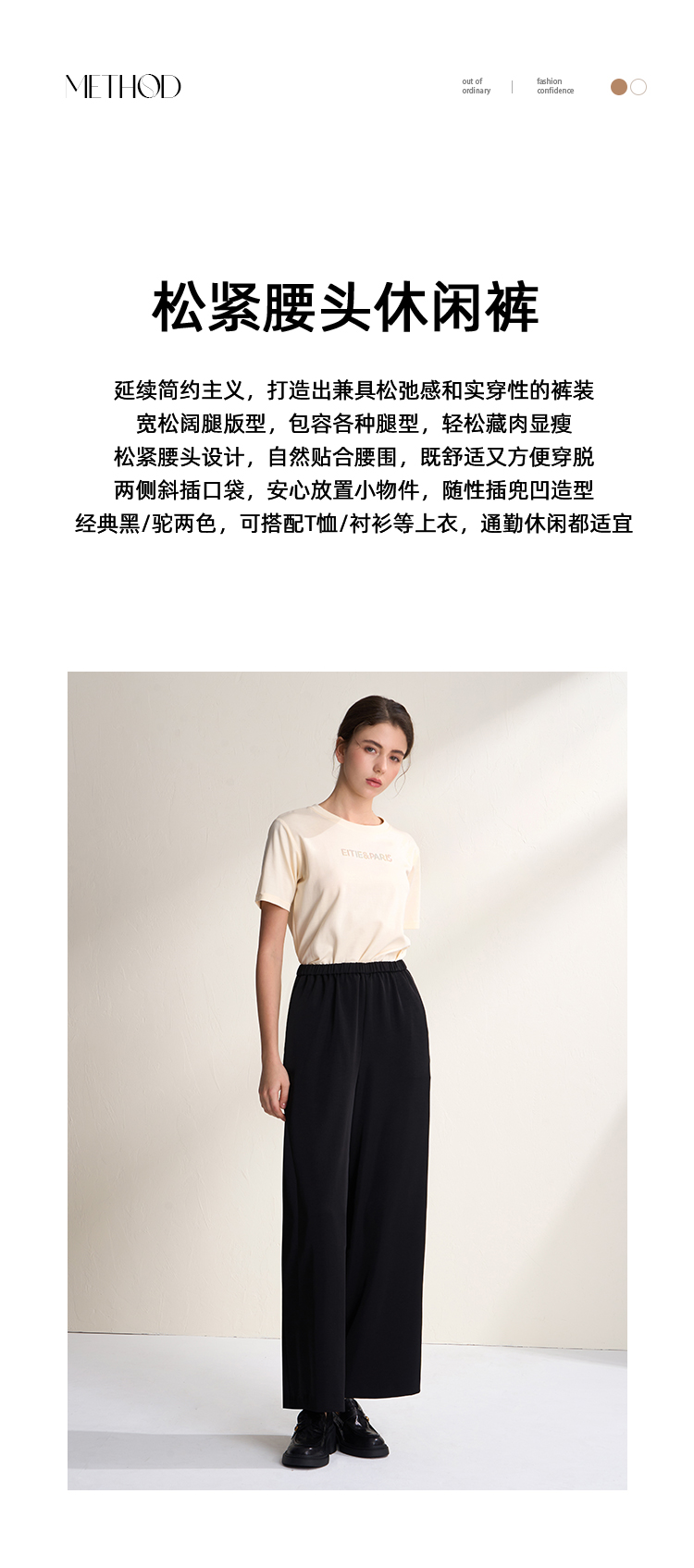EITIE爱特爱轻松百搭松紧腰显瘦直筒通勤休闲裤2026春季新款A2605105