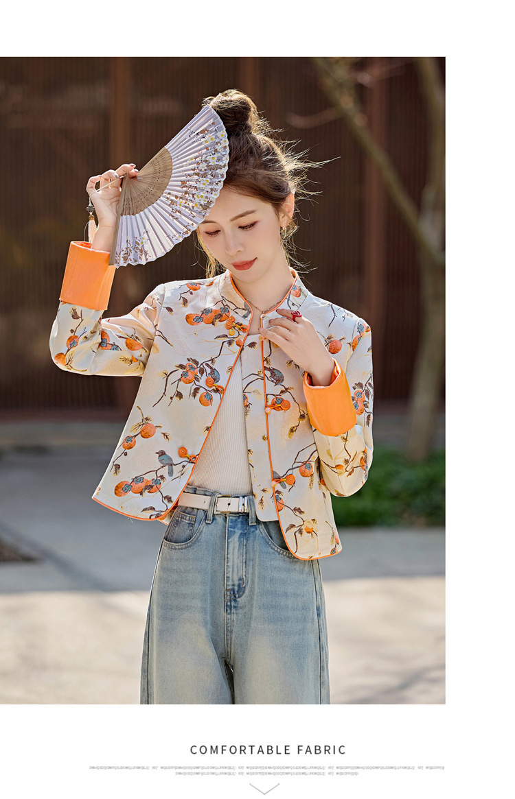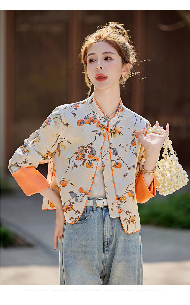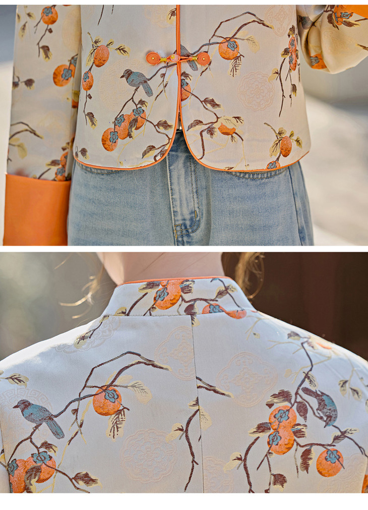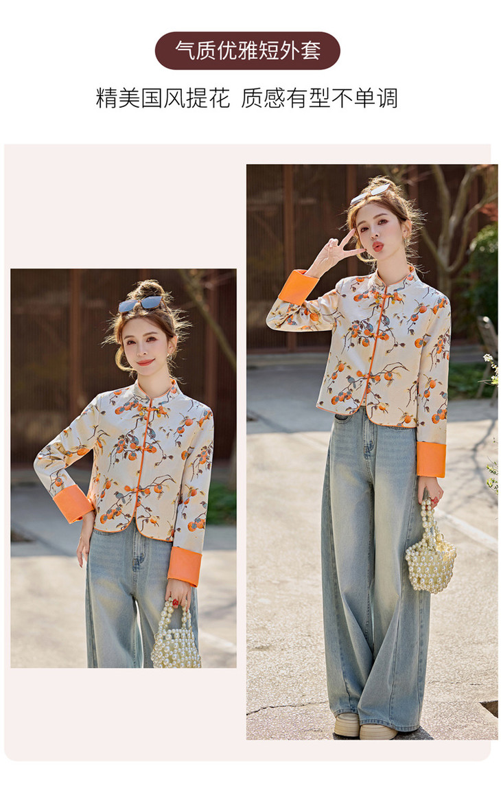 【预售3天】新中式国风提花短外套秋新款复古盘扣撞色拼接小个子上衣 SYY2720 商品图4