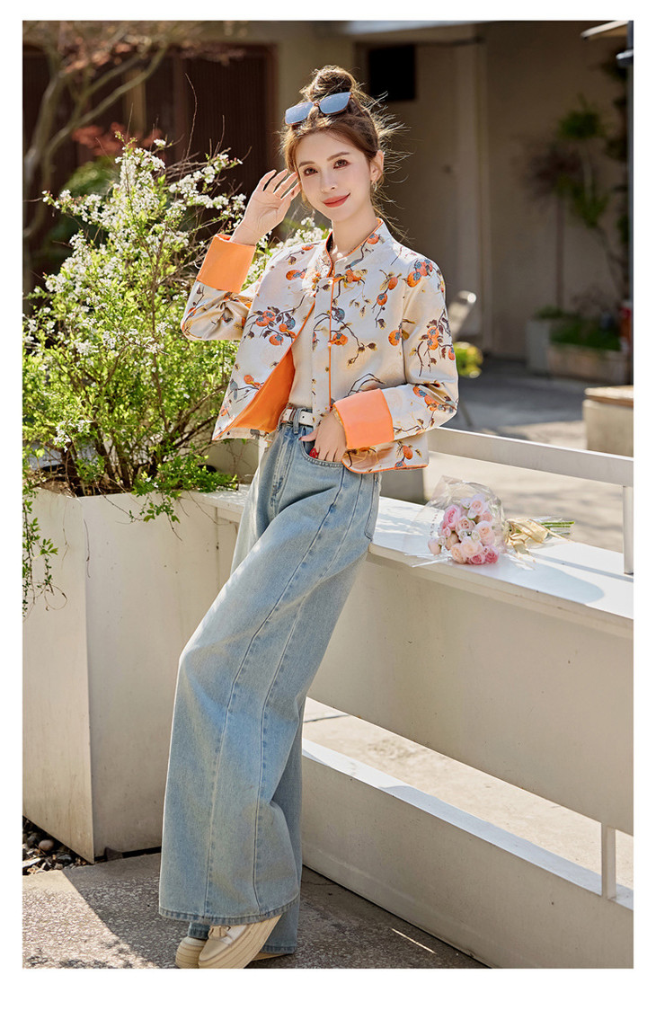【预售3天】新中式国风提花短外套秋新款复古盘扣撞色拼接小个子上衣 SYY2720
