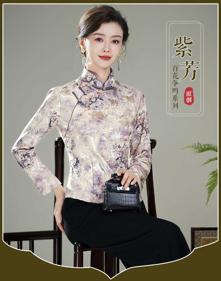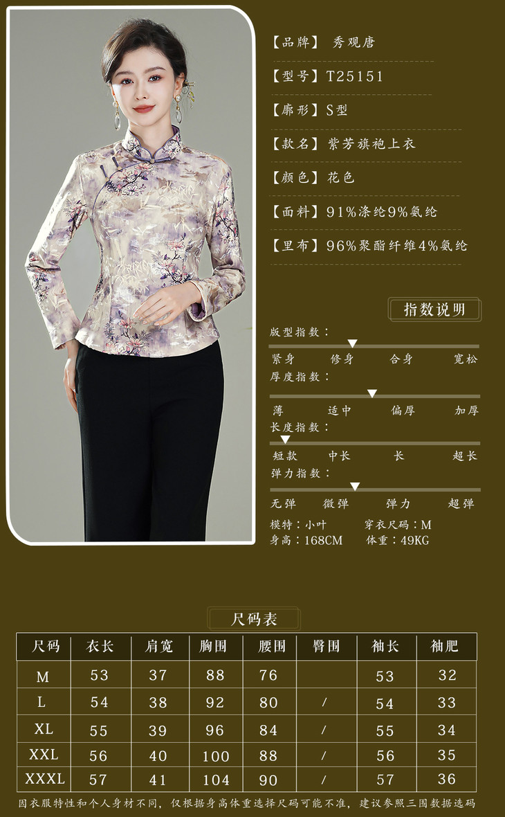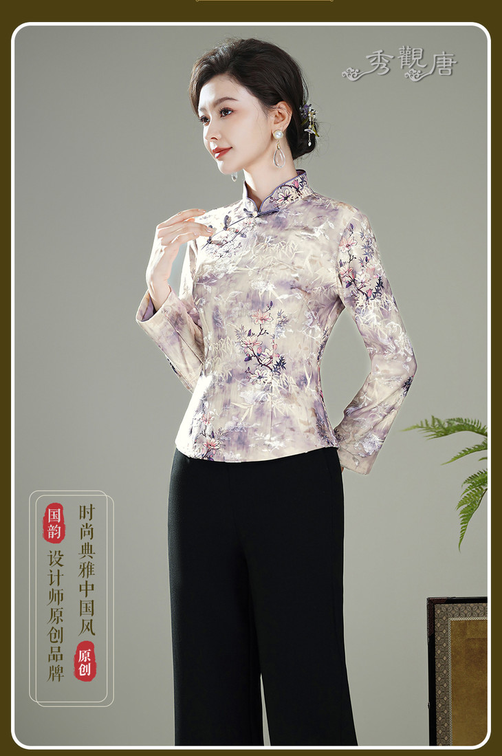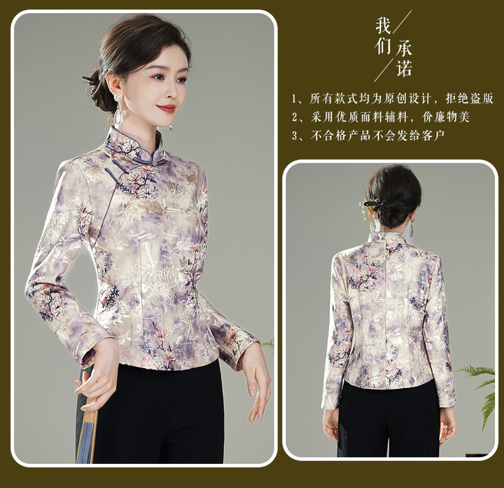【紫芳】厚保暖女士中国风,唐装盘扣旗袍上衣外套XGT-T25151