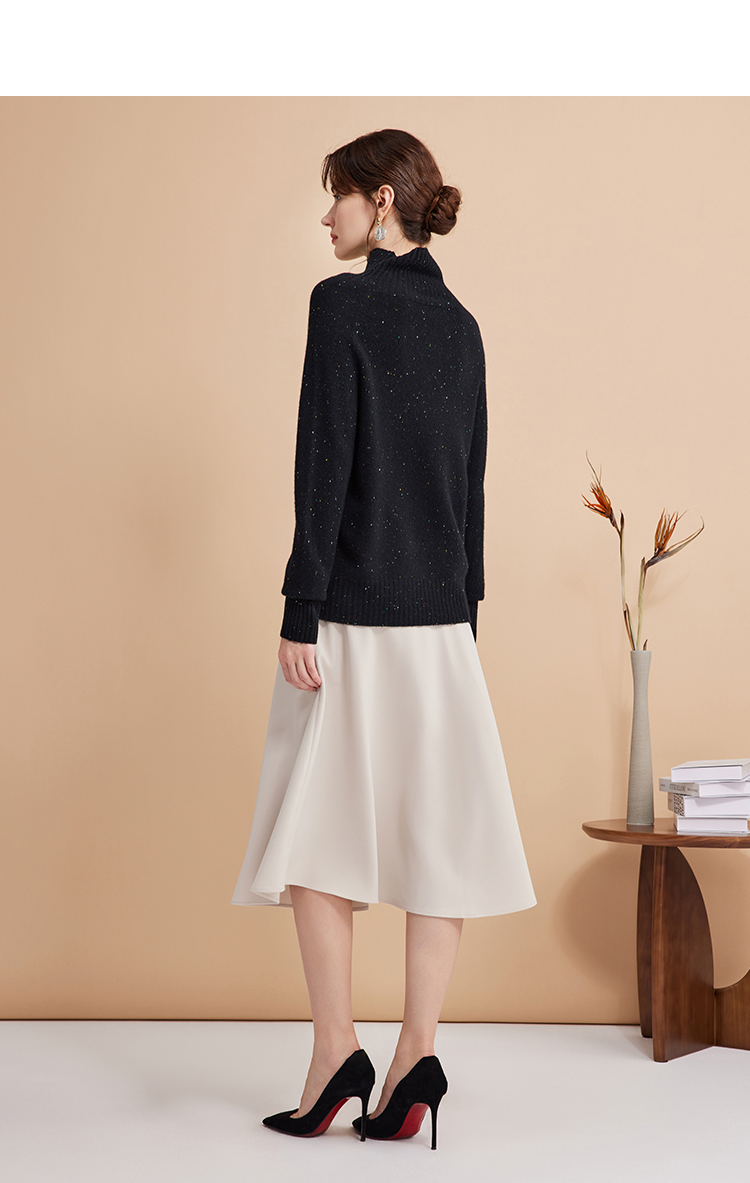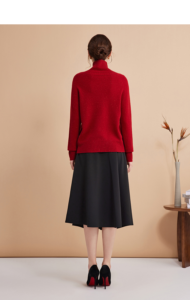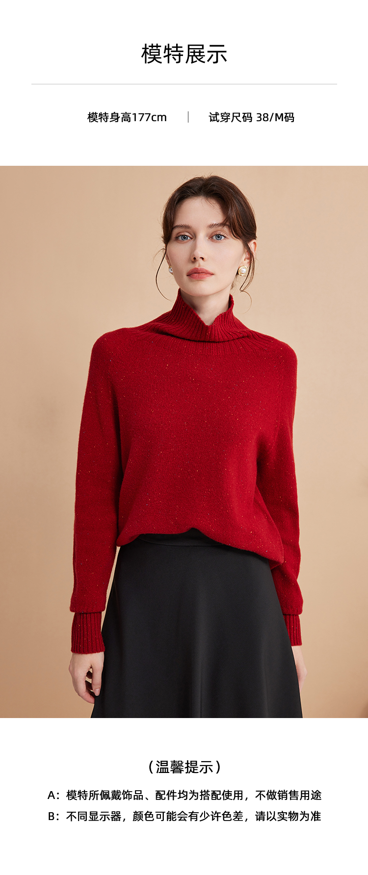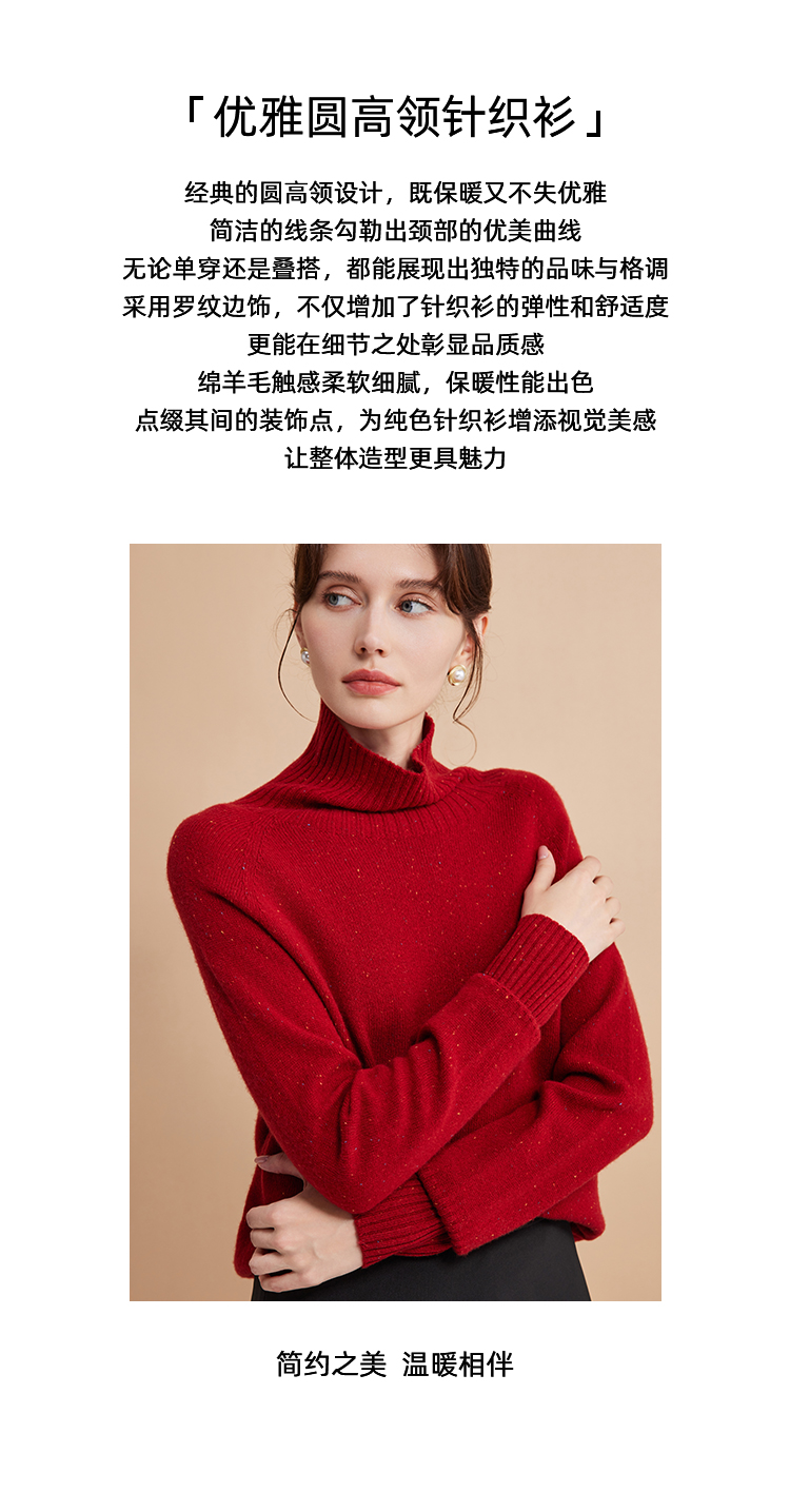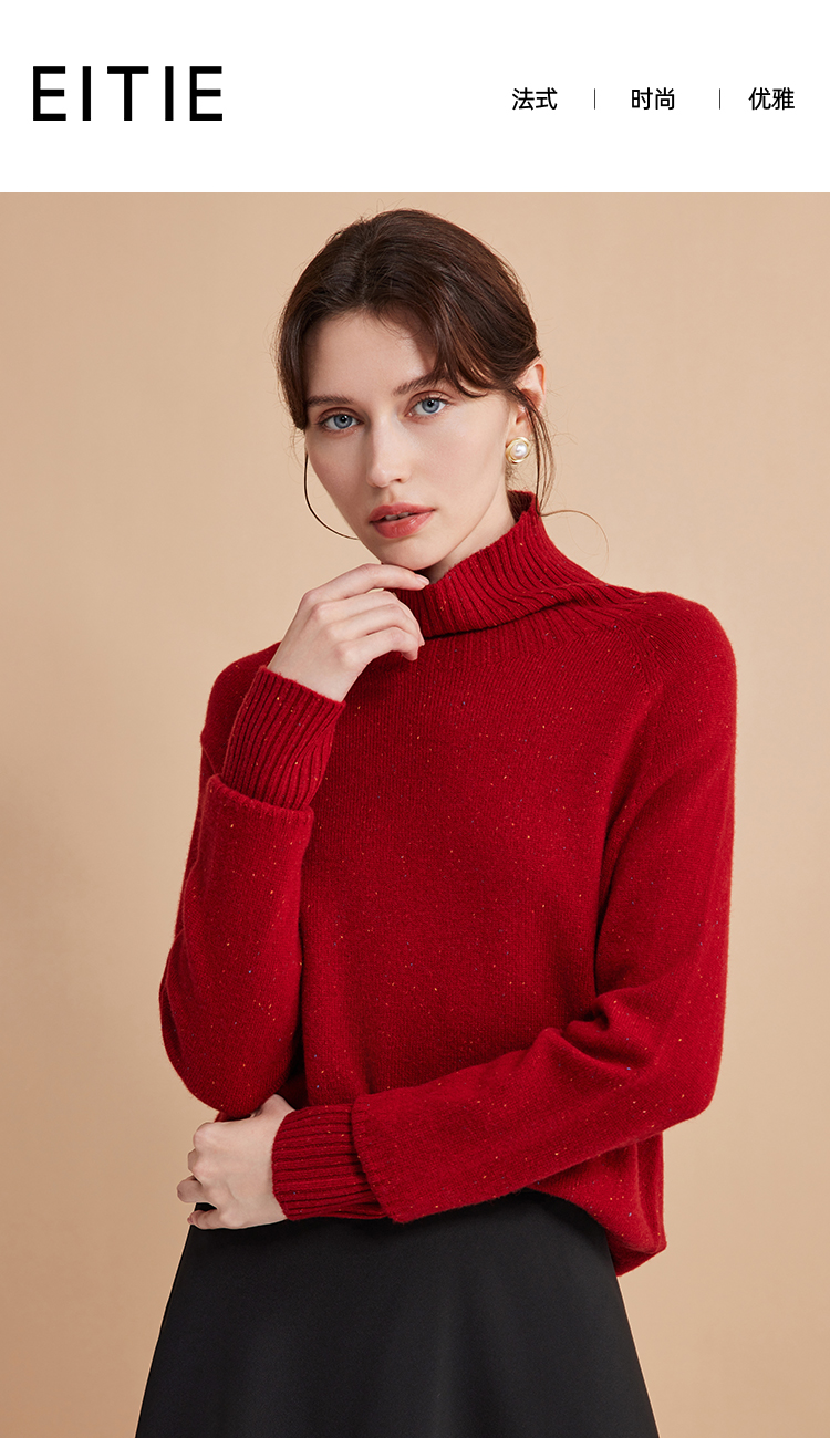 EITIE爱特爱秋季新款简约纯色高领保暖舒适100%绵羊毛针织衫D2401415
