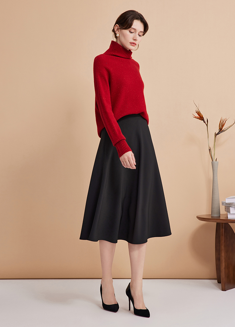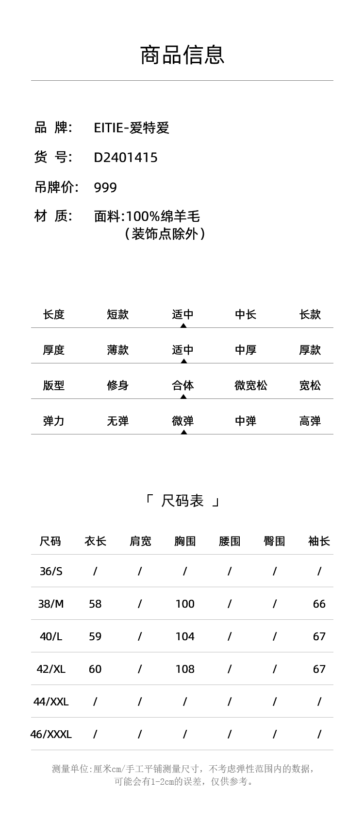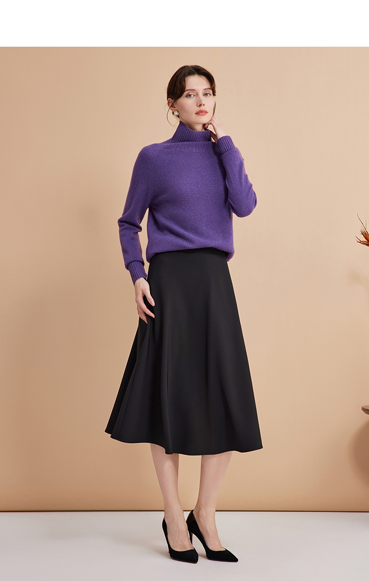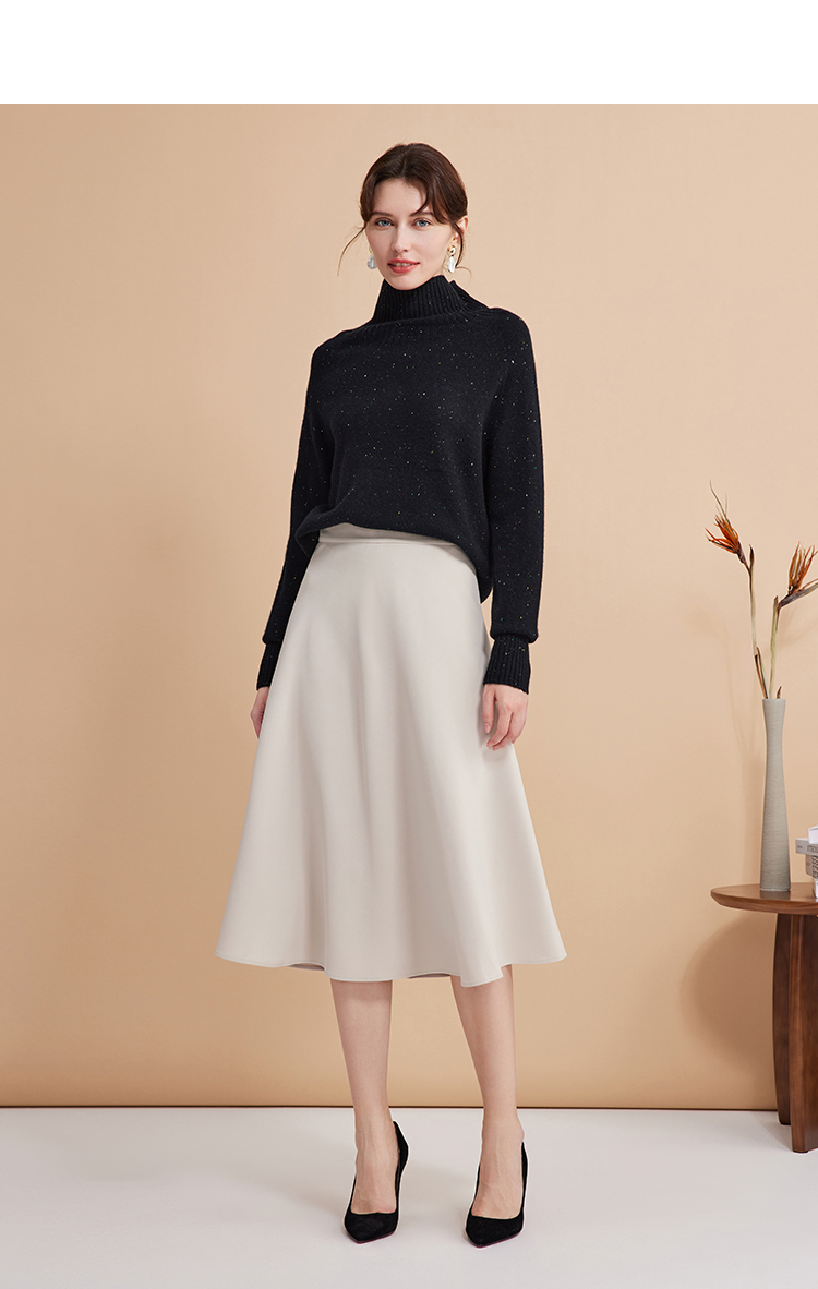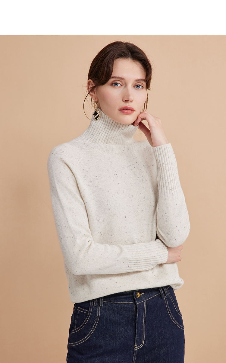 EITIE爱特爱秋季新款简约纯色高领保暖舒适100%绵羊毛针织衫D2401415