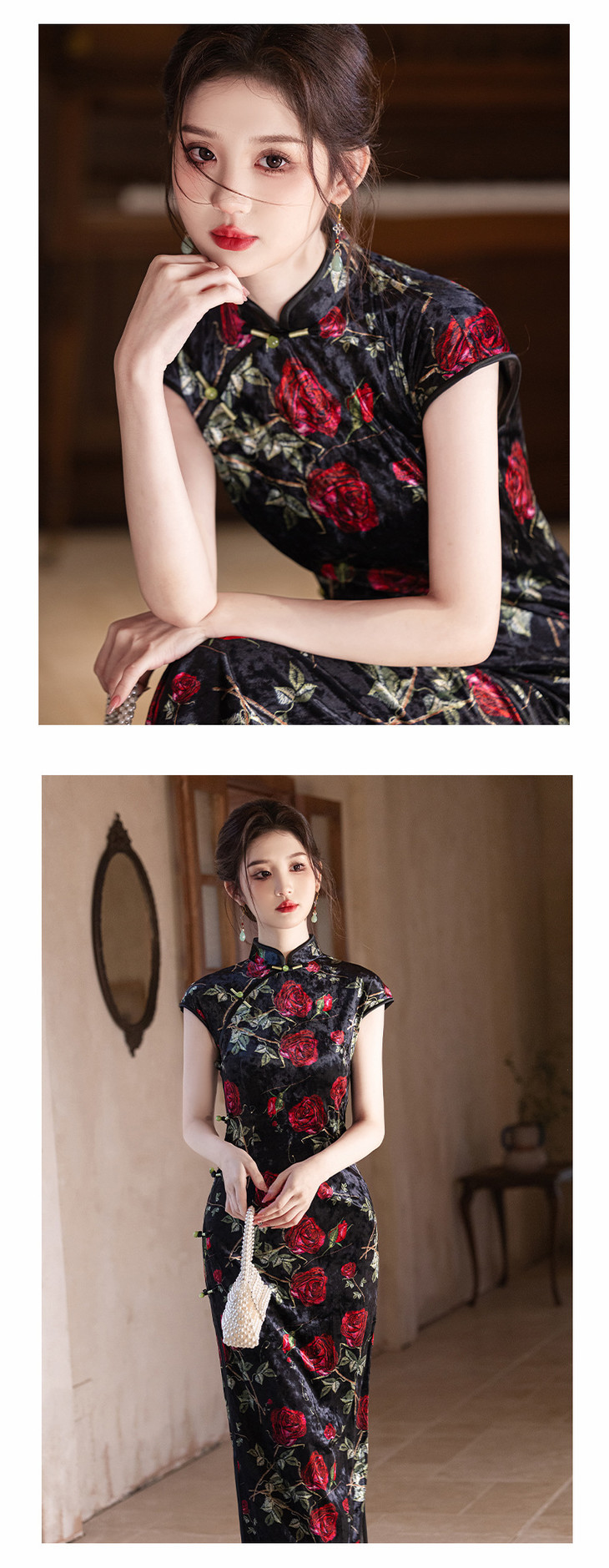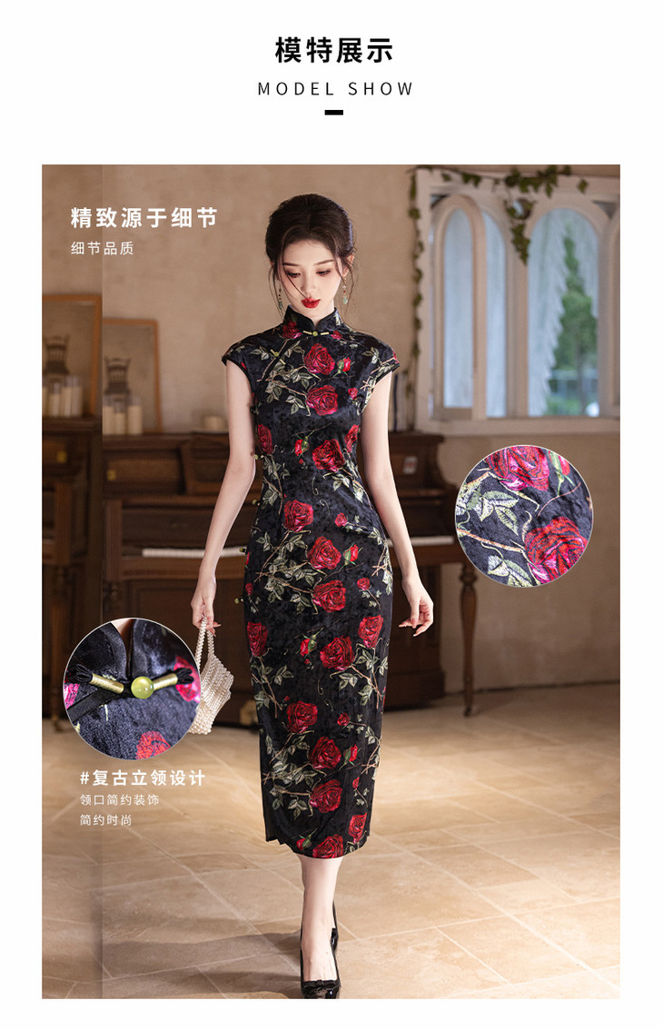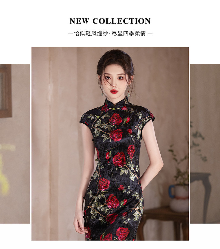 新中式无袖丝绒旗袍年轻款高级感气质改良YG2502