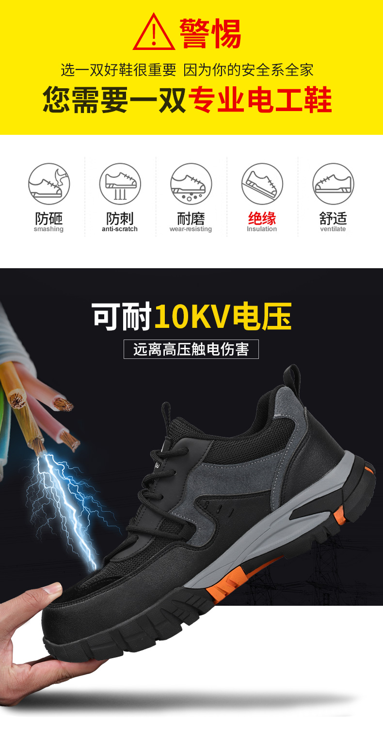 马年新款防砸防刺穿绝缘10KV玻纤头4.0凯夫拉四季款橡胶底低帮