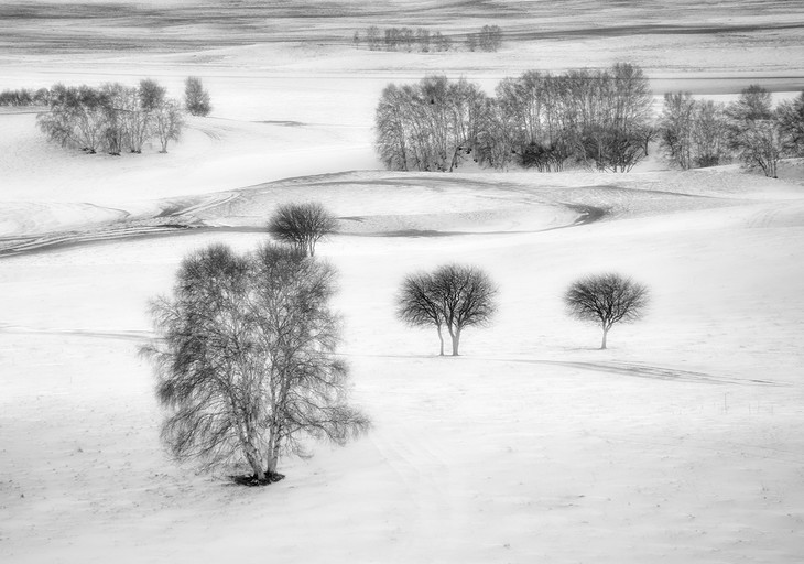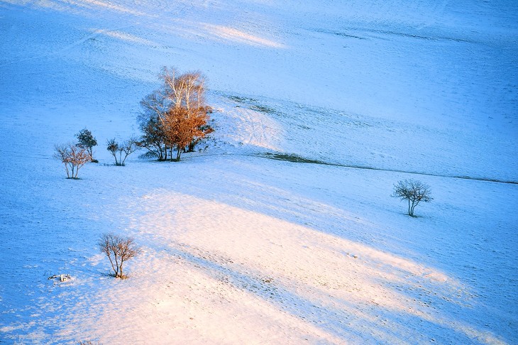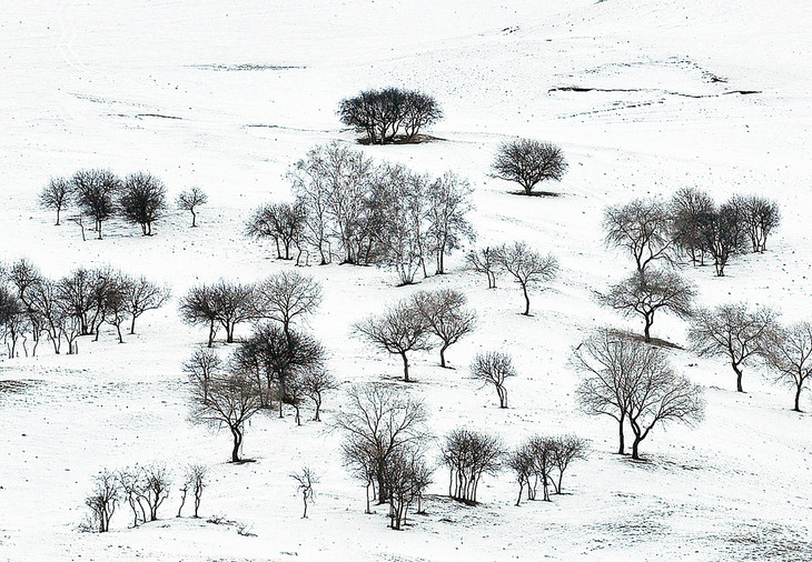 冬天的坝上,银装素裹,纷外妖娆,那“忽如一夜春风来,千树万树梨花开”的场面,让摄影人怦然心动;那种荒凉空旷的美,恰似一幅幅水墨画般的场景,让摄影家留恋忘返;那皑皑白雪在阳光的照射下,变幻出千奇百怪的光影,让摄影家频频按动快门。