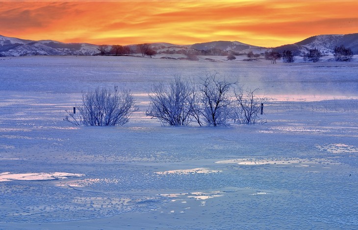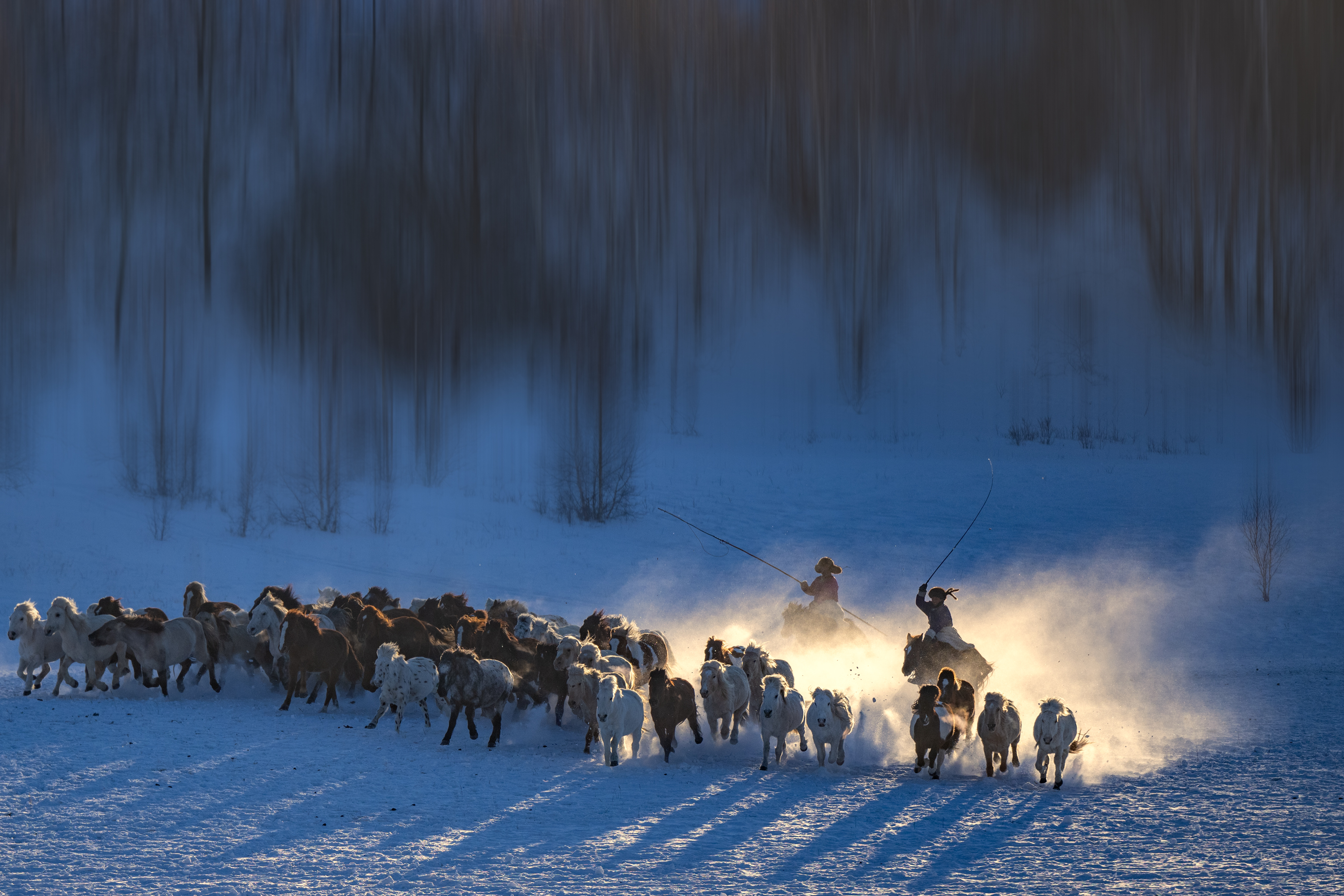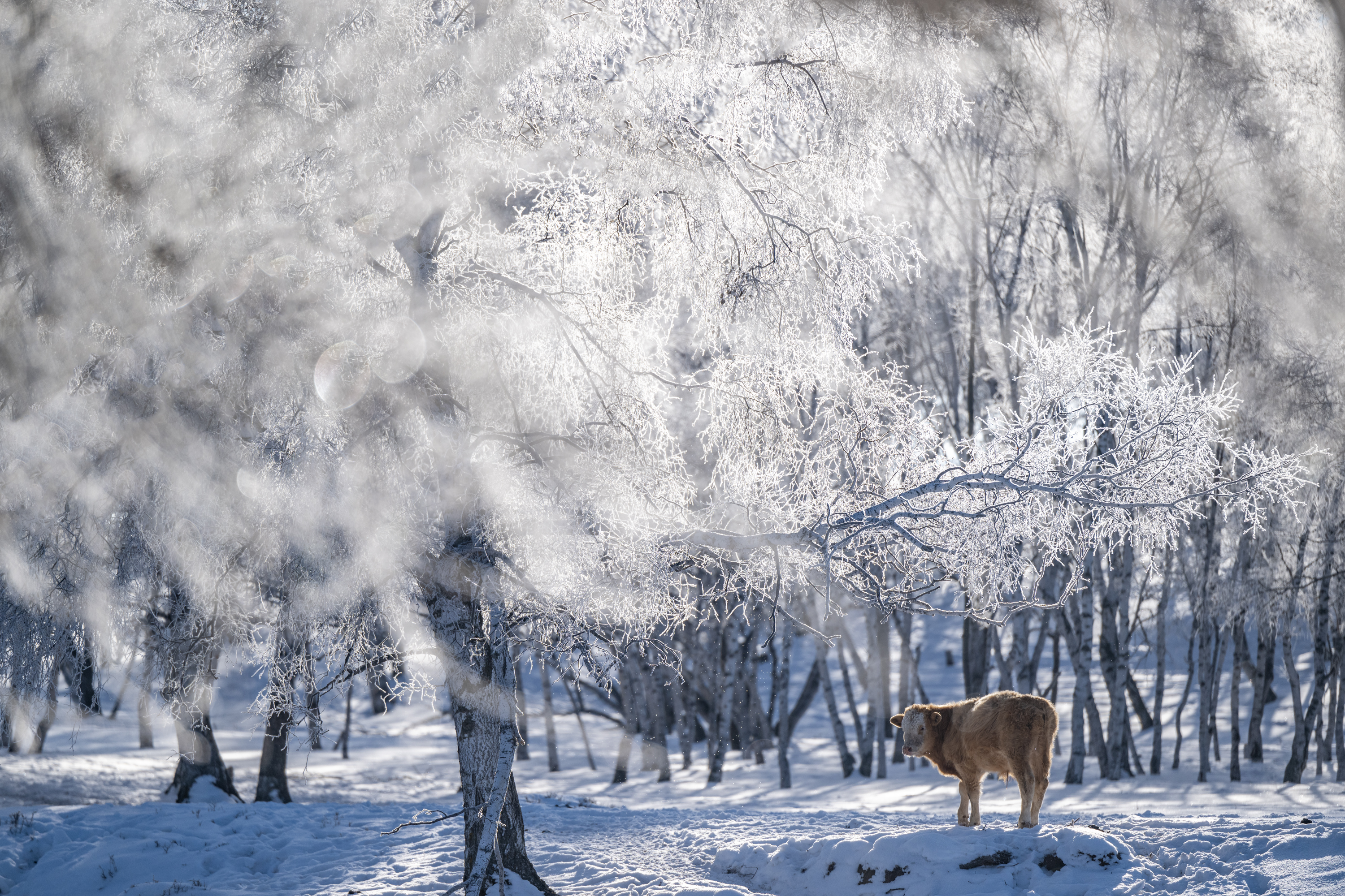 在一派银装素裹的纯净中,我们拍摄无限的林海雪原,洁白的雪浪,冰凌中的白桦,风雪中的驼队,雪原中的骏马,散落的牛群、羊群,牧村的篱笆……素美的境界,圆我们拍摄冰雪世界之梦。