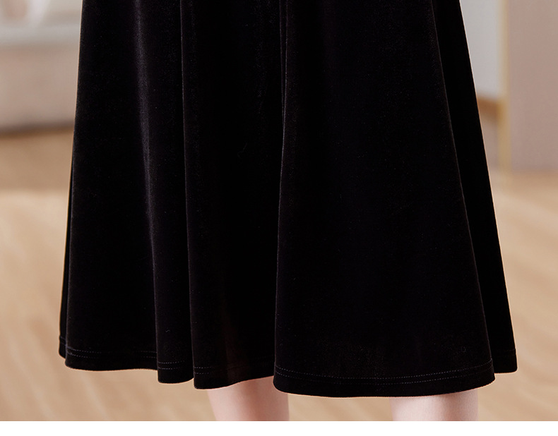 百媚生 钻石绒V领真口袋蕾丝边丝绒连衣裙6023 商品图4