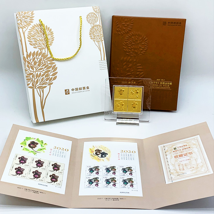 2020年鼠年邮票金 含纯金2克 小版邮票 带精美包装