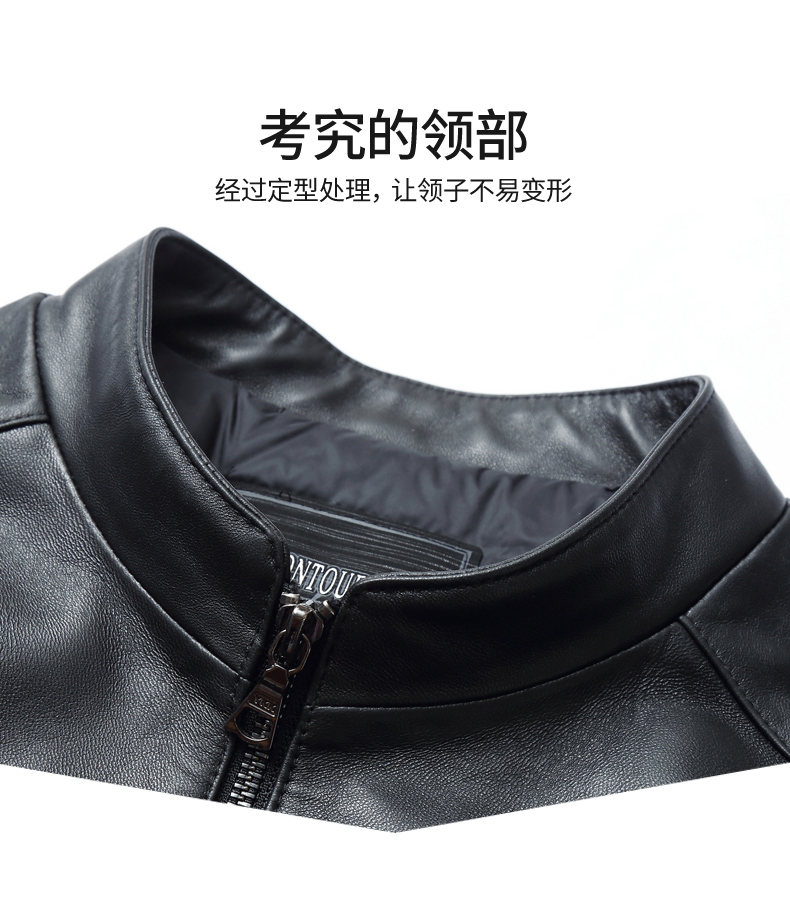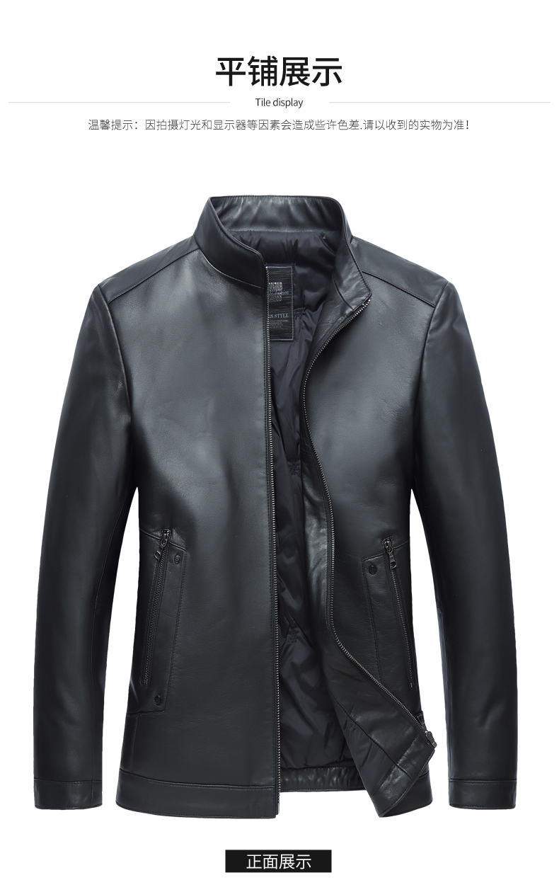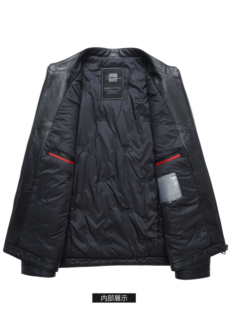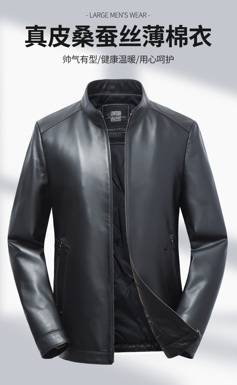 【真皮】大依优型大码真皮桑蚕丝薄棉衣夹克外套休闲简约大号皮夹克真皮皮草加肥加大