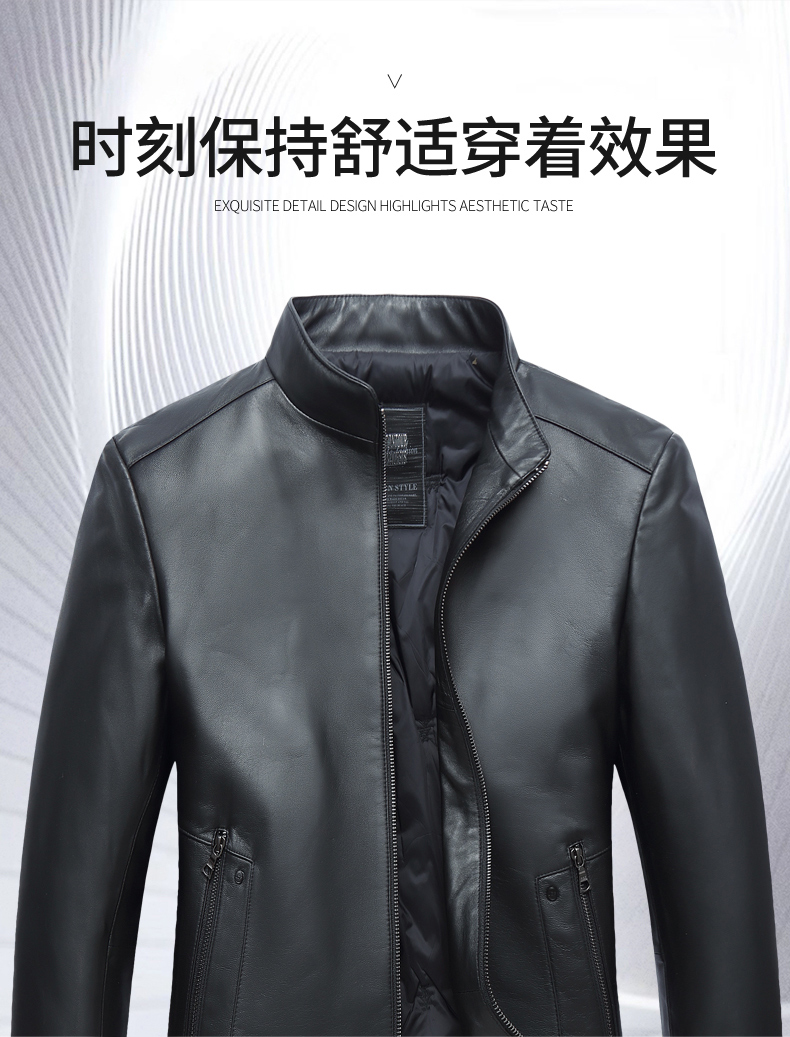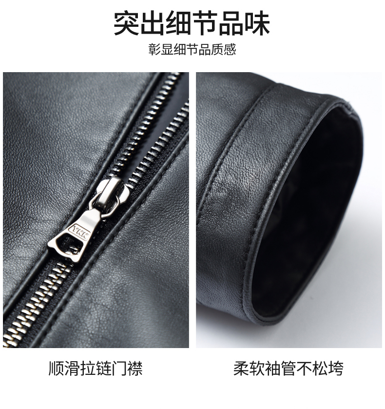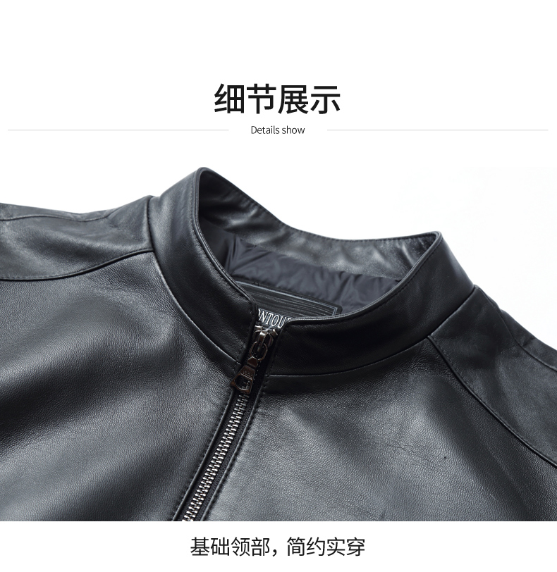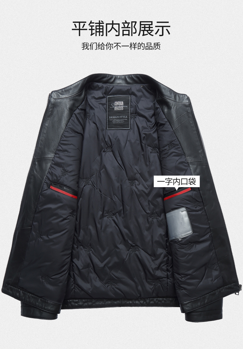 【真皮】大依优型大码真皮桑蚕丝薄棉衣夹克外套休闲简约大号皮夹克真皮皮草加肥加大