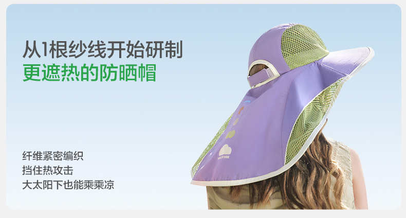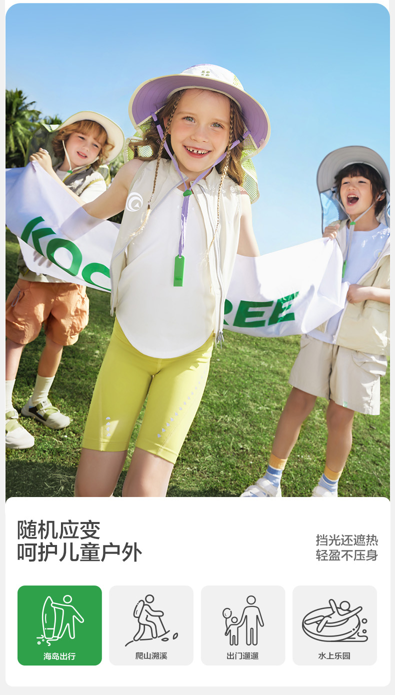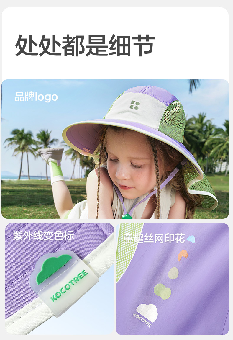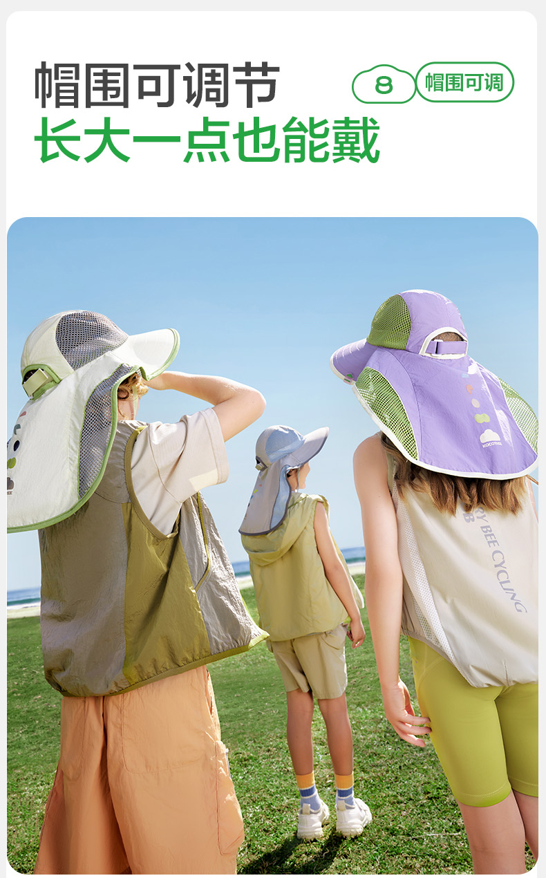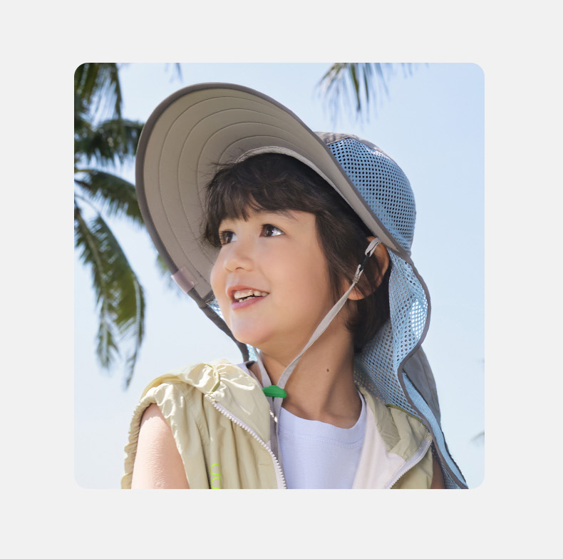 KK树儿童防晒帽防紫外线男童女孩大帽檐遮阳宝宝太阳帽2025年新款小氧气防晒披肩帽