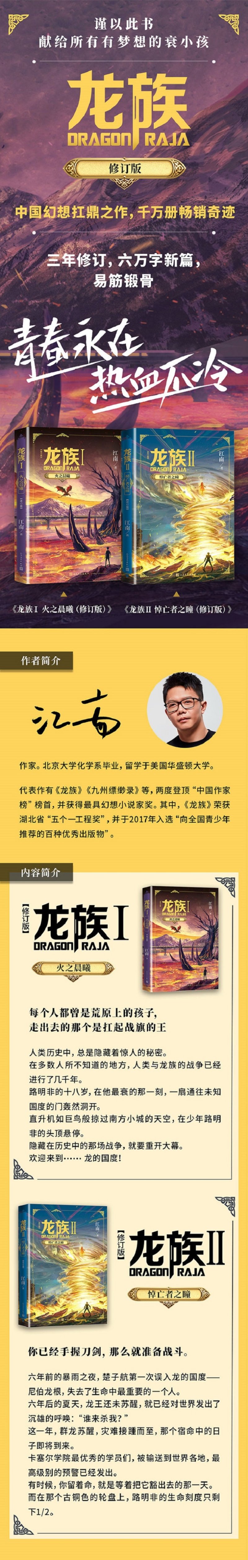 等,两度登顶“中国作家榜”榜首,并获得最*幻想小说家奖。其中,《龙族》荣获湖北省“五个一