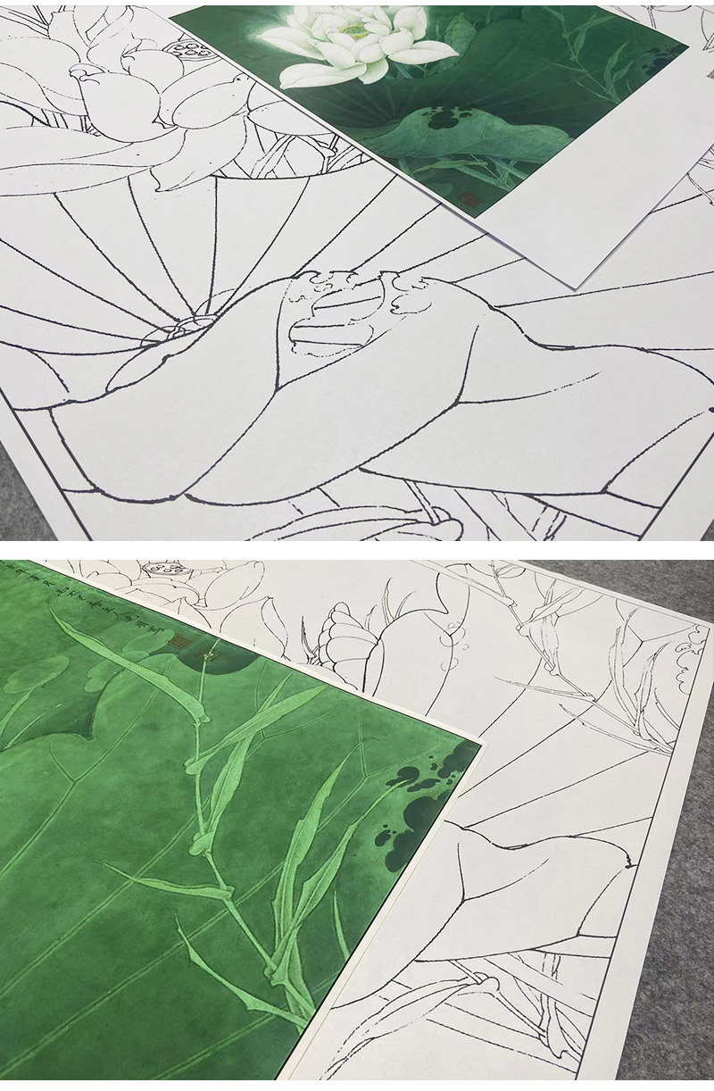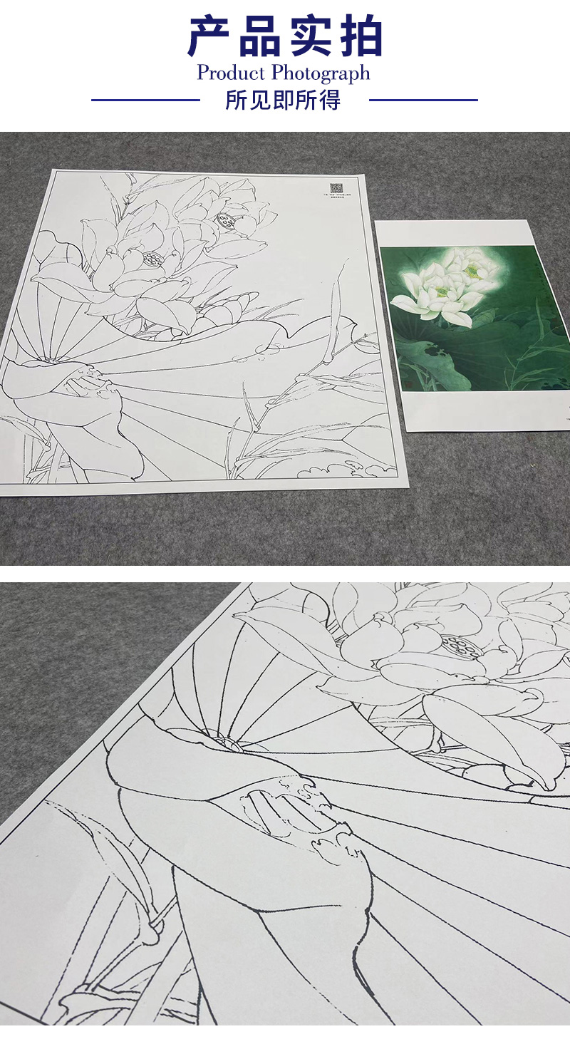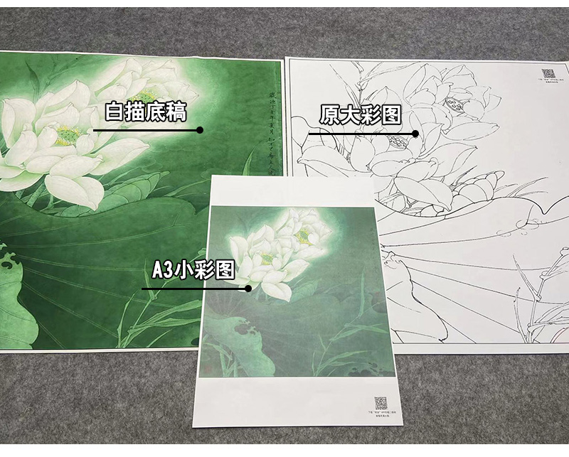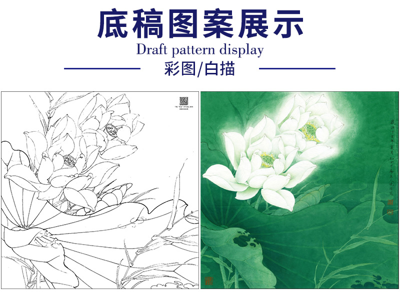 【大彩图】李晓明工笔画白描底稿斗方小品《圣洁之花》白荷临摹勾线花花鸟线稿K093