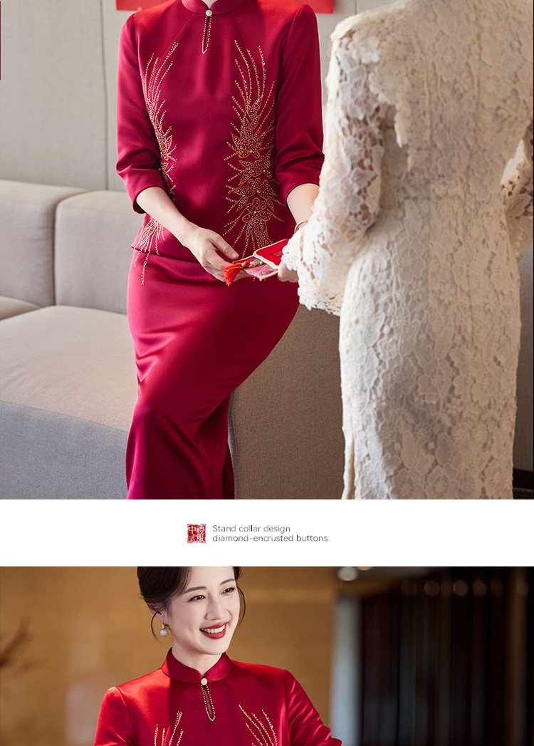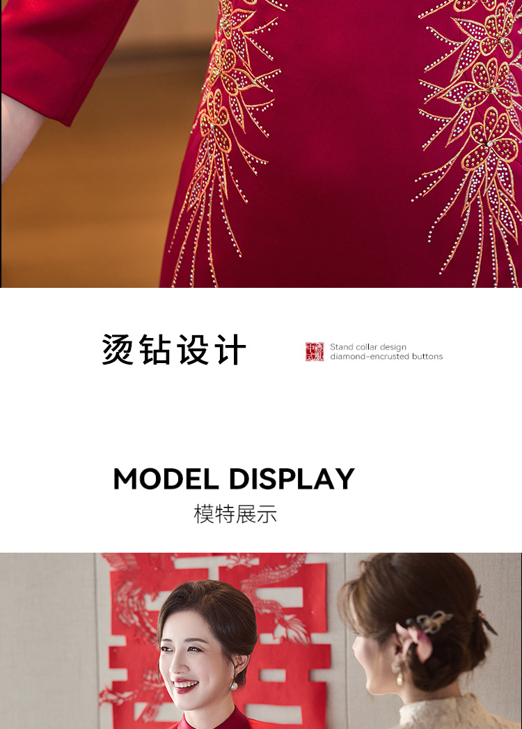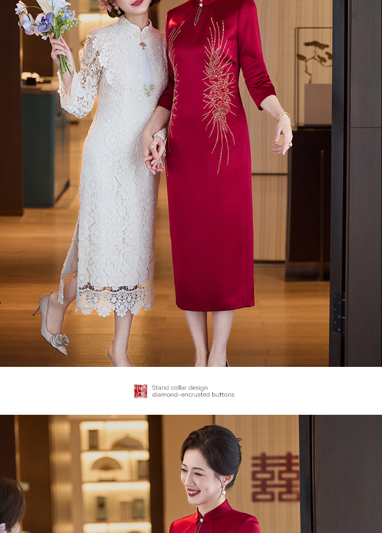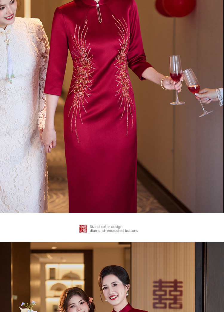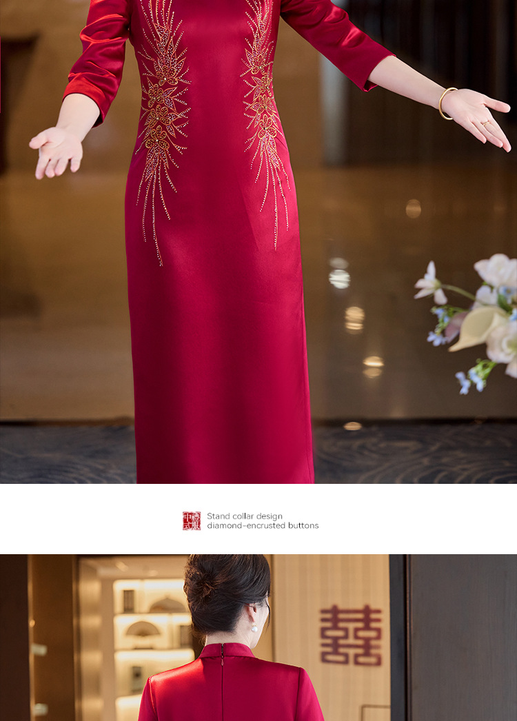 LHS C68中式端庄醋酸刺绣花旗袍裙