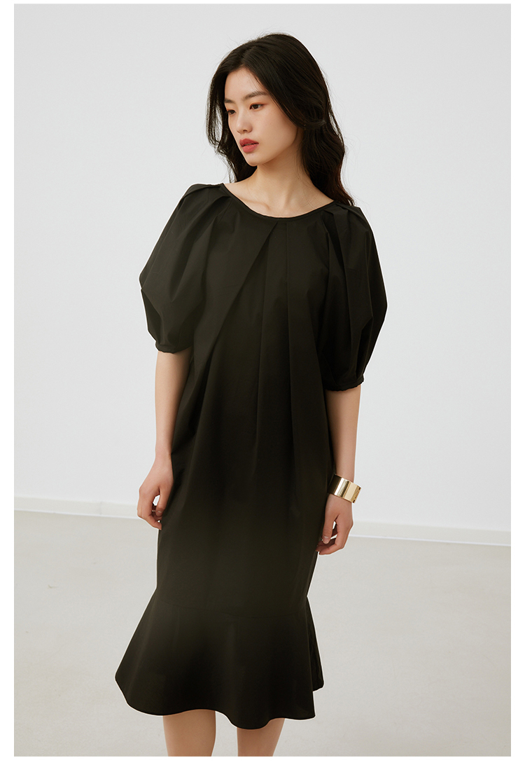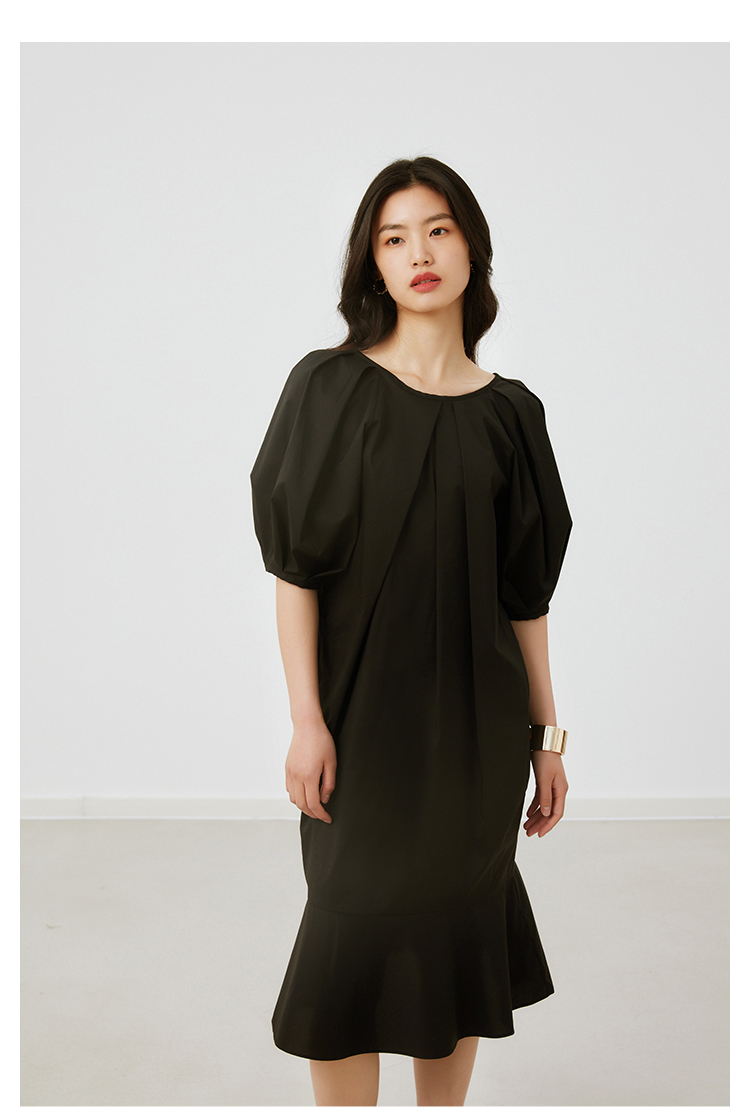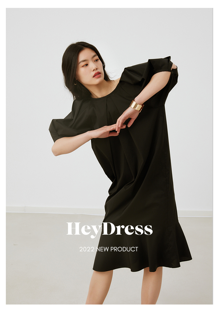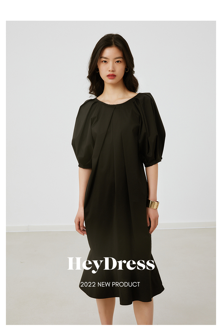 HeyDress法式复古连衣裙女宽松显瘦鱼尾设计感小黑裙气质小众裙子