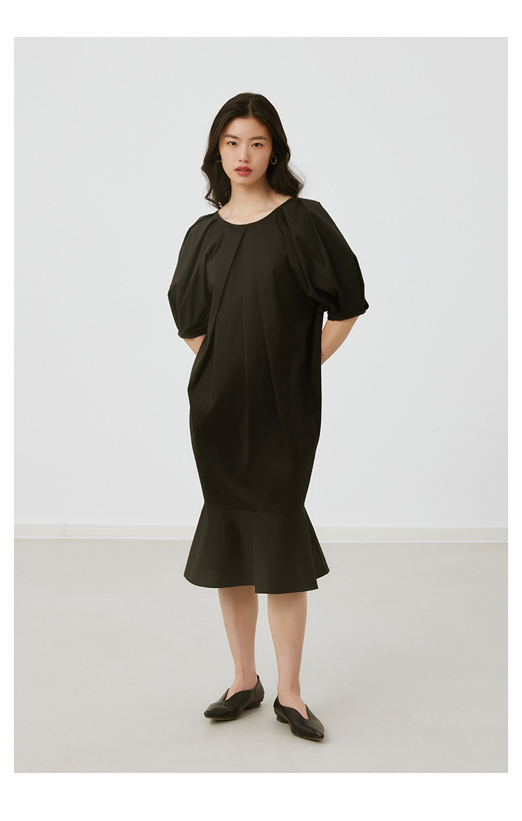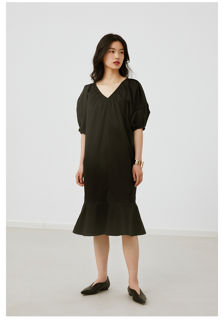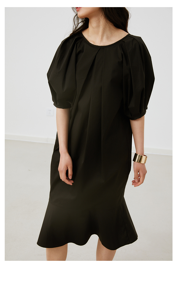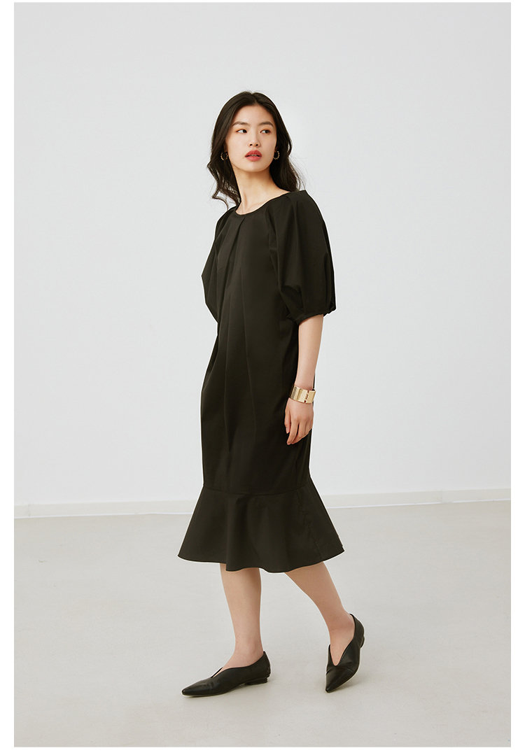 HeyDress法式复古连衣裙女宽松显瘦鱼尾设计感小黑裙气质小众裙子