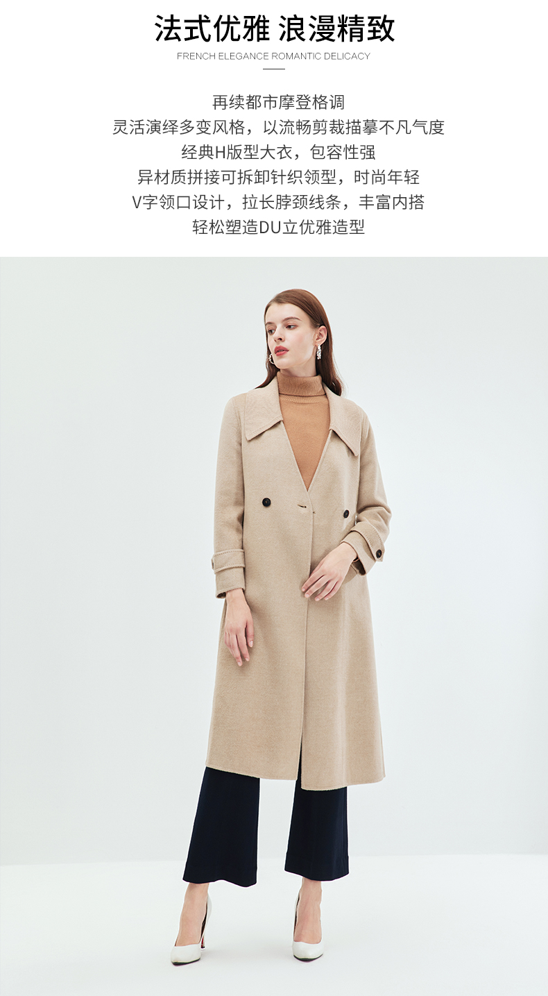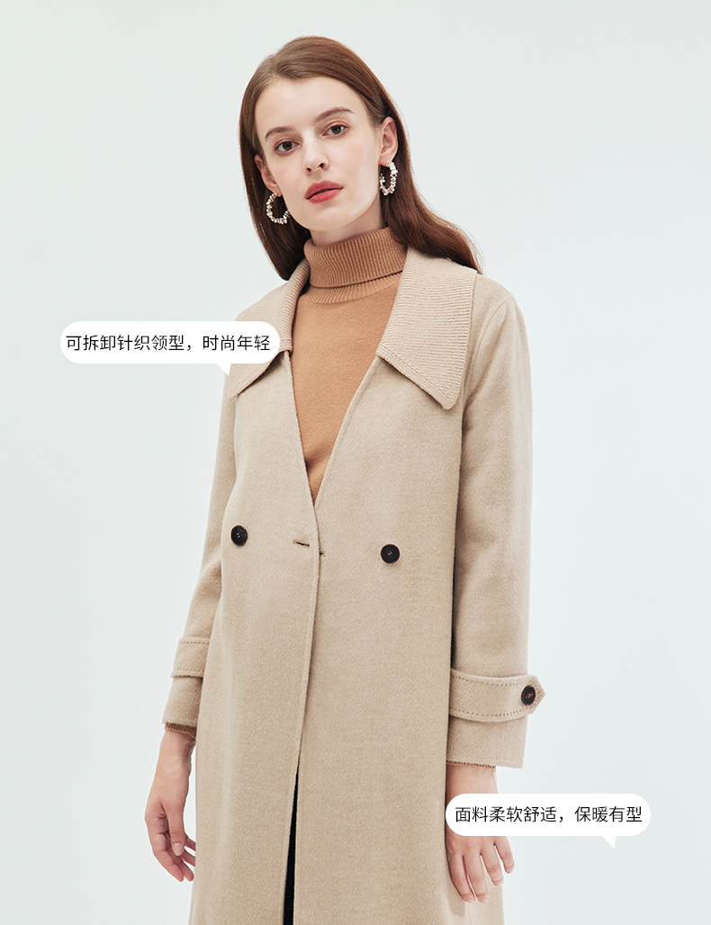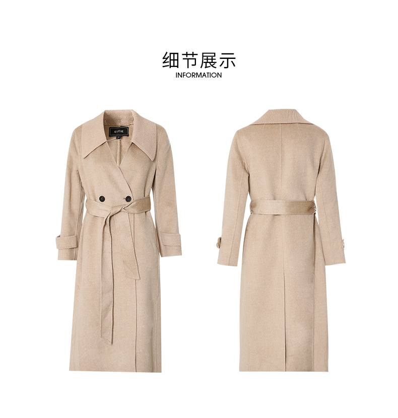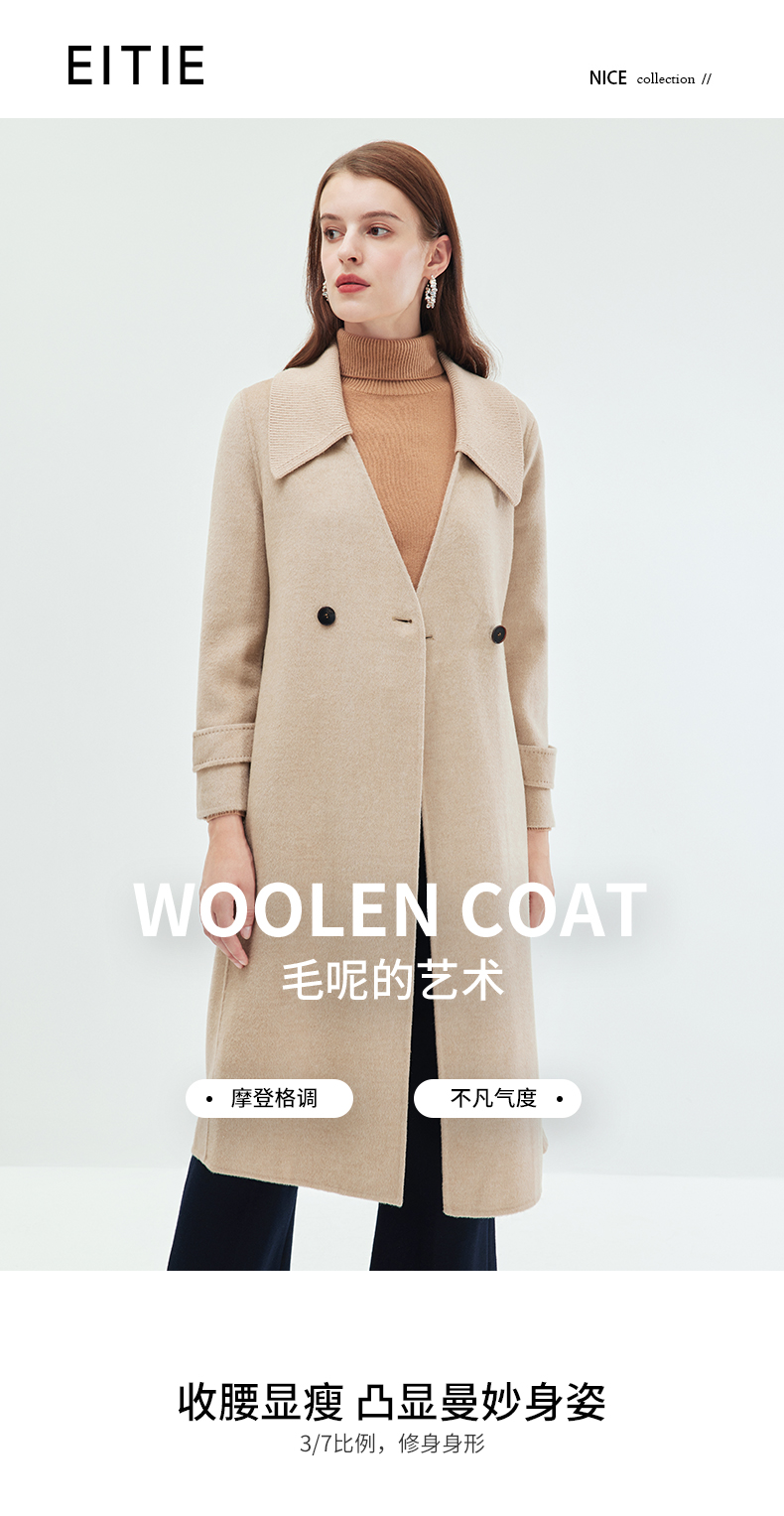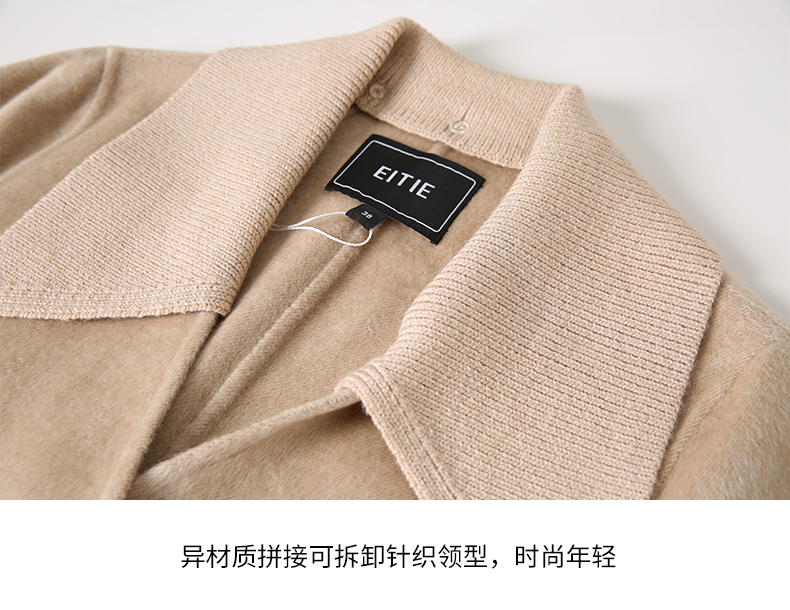 EITIE爱特爱冬季新款气质翻领中长款毛织领拼接大衣外套7214914
