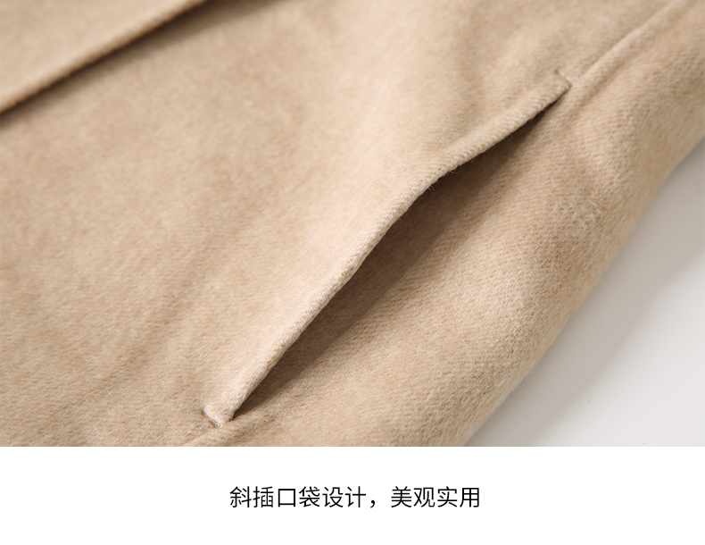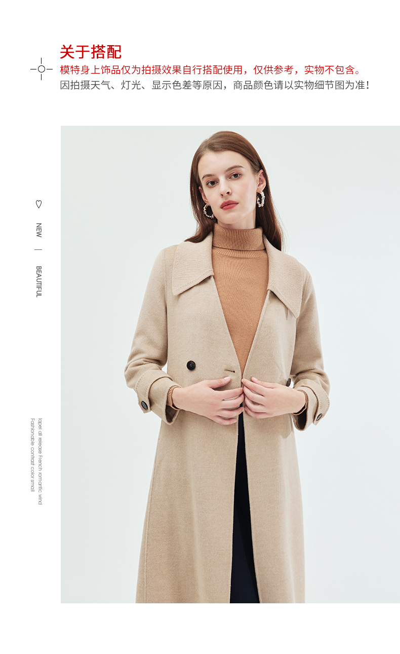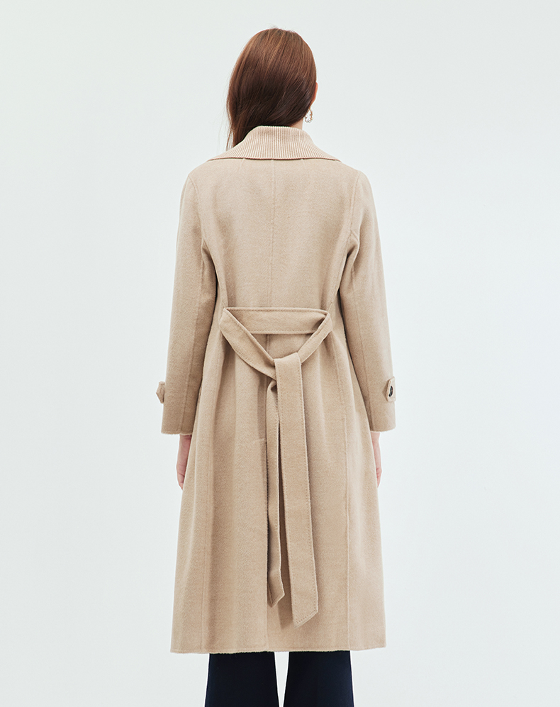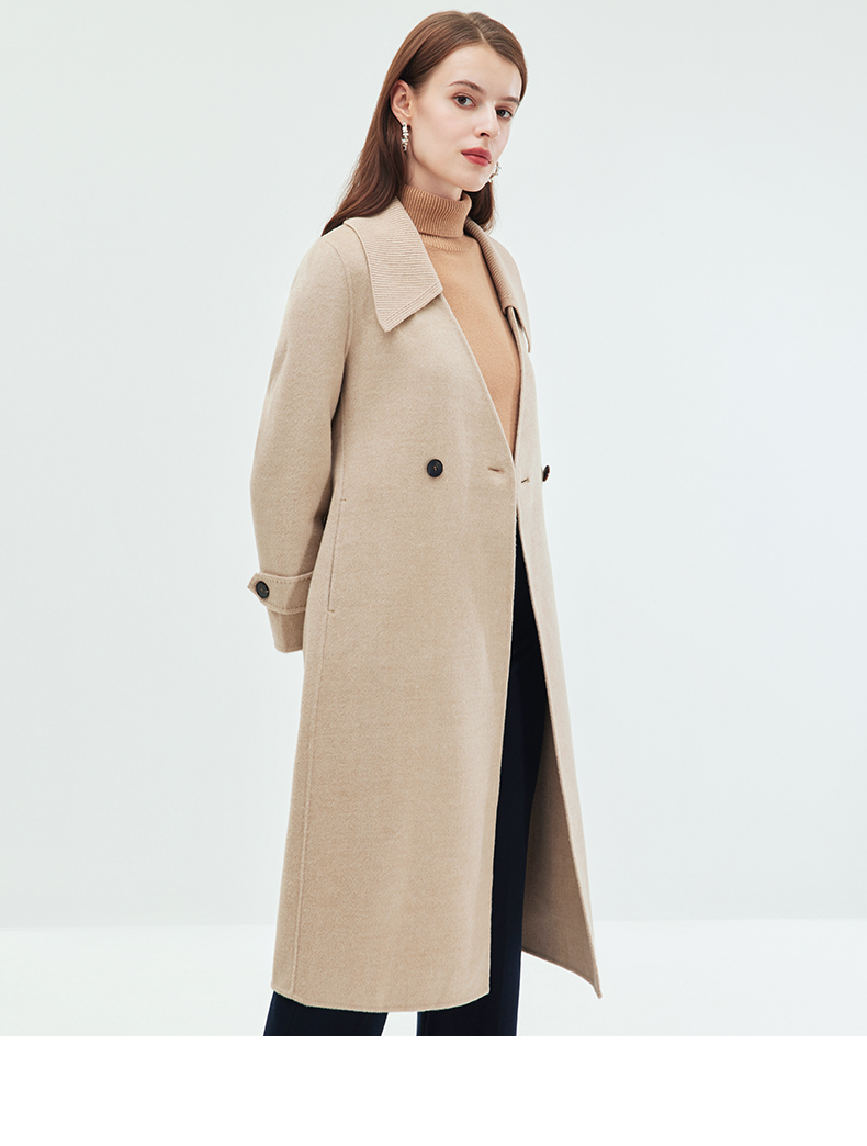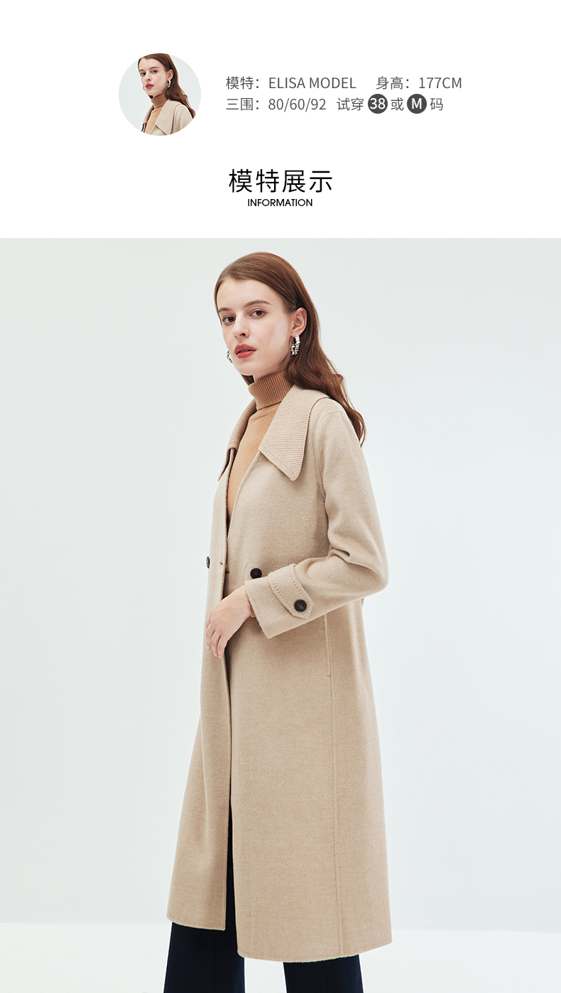 EITIE爱特爱冬季新款气质翻领中长款毛织领拼接大衣外套7214914