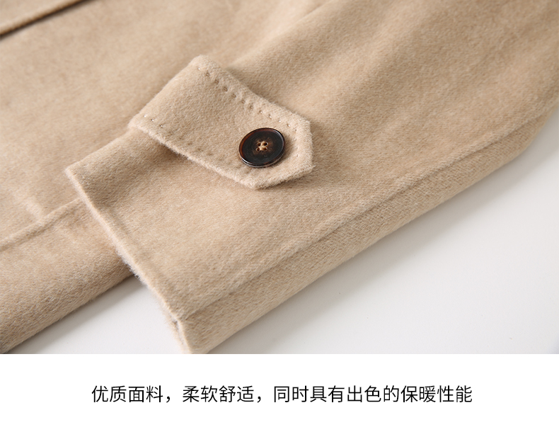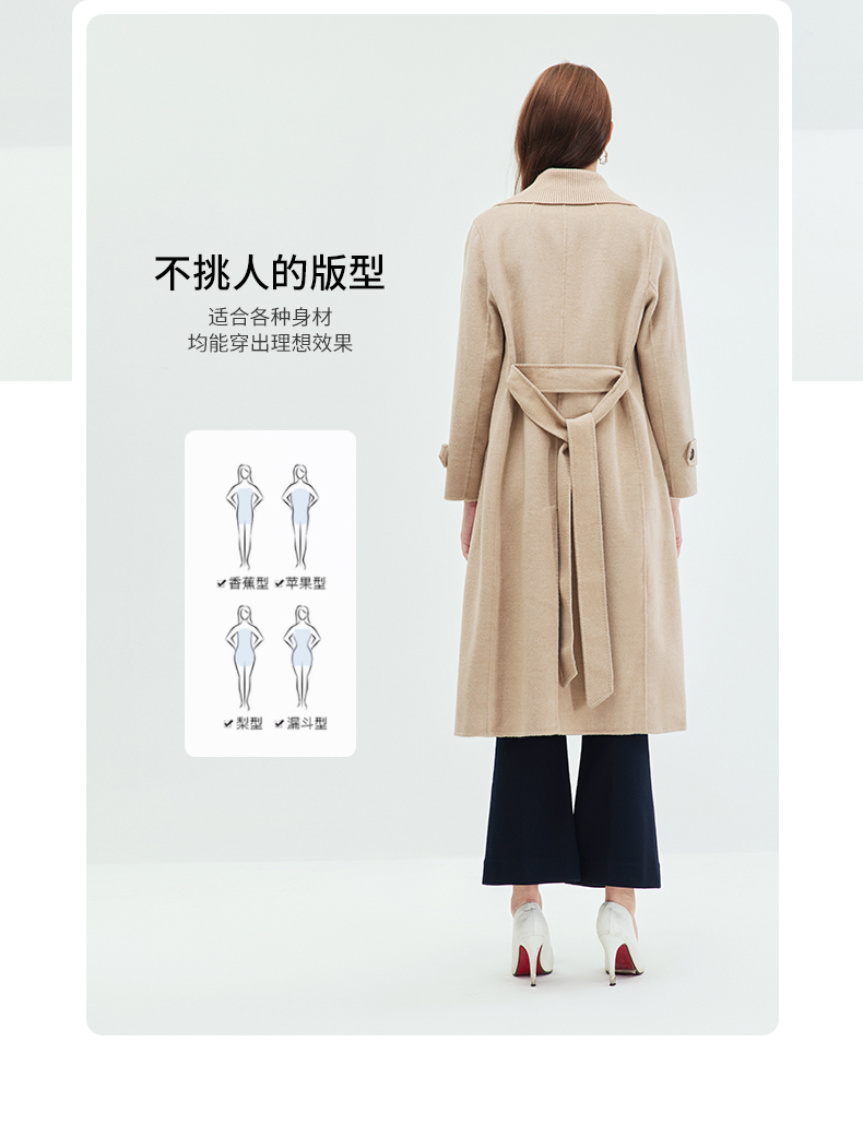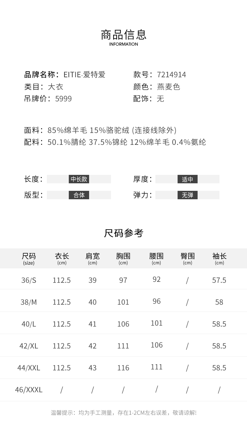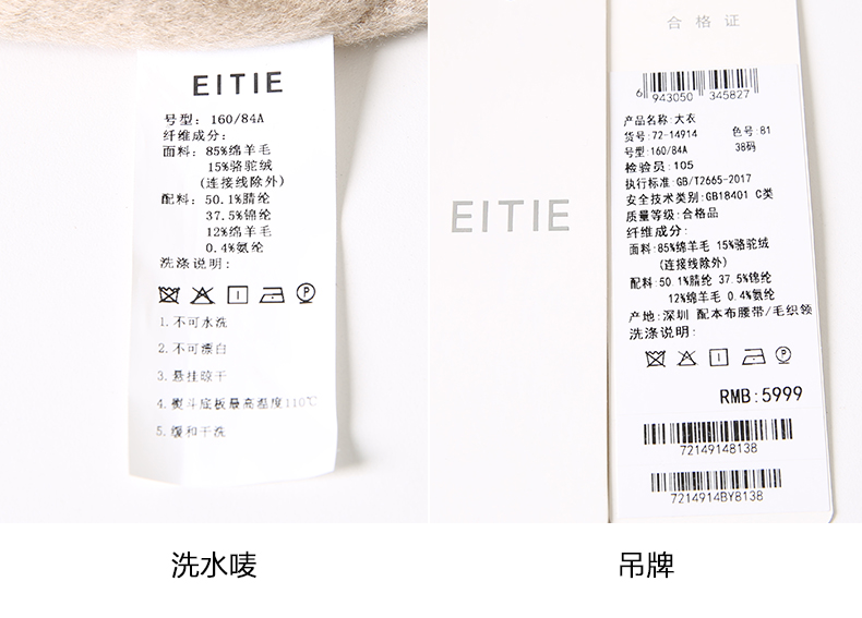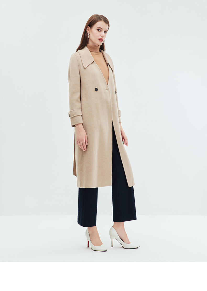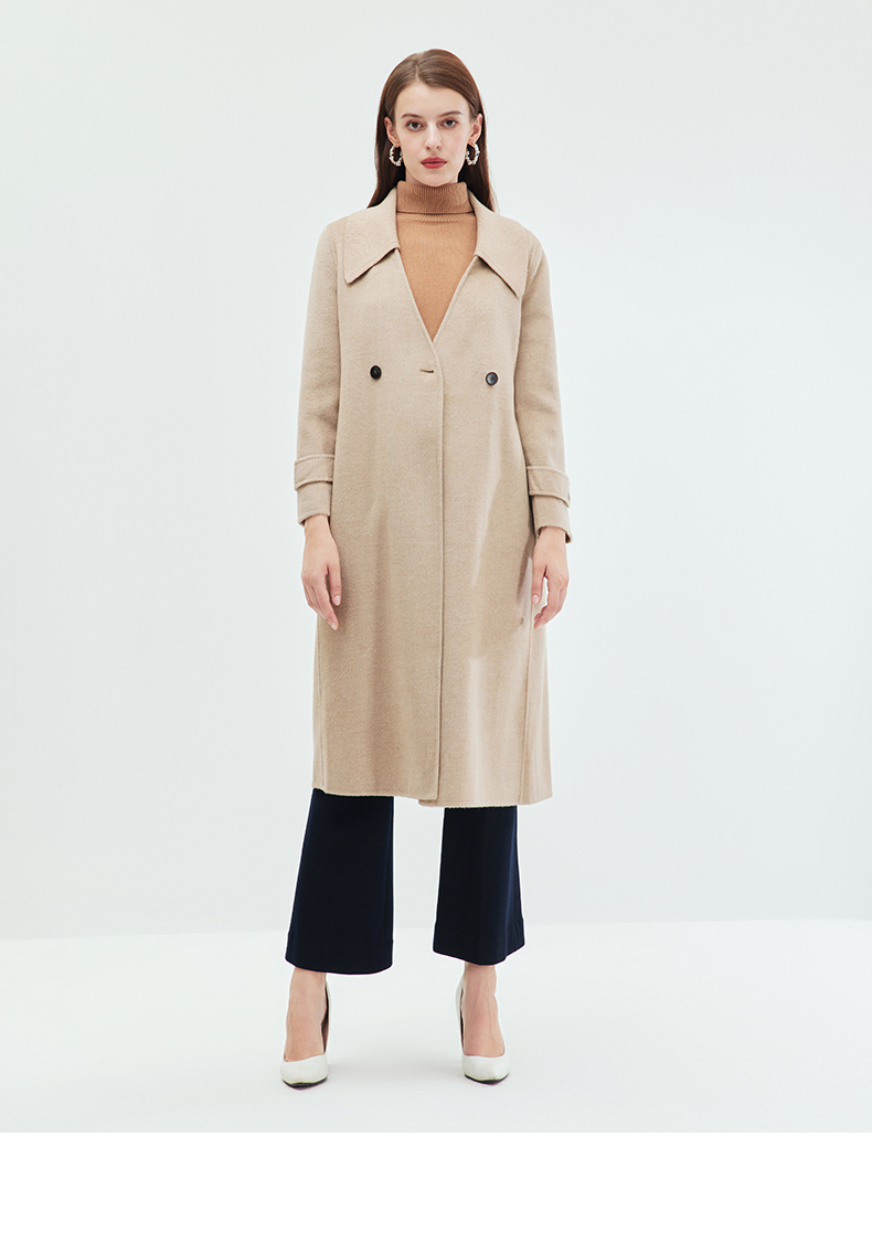 EITIE爱特爱冬季新款气质翻领中长款毛织领拼接大衣外套7214914