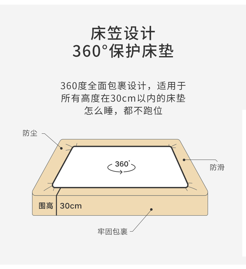 JACE久适 A类全棉水洗棉纯色系列 贴身细腻柔软使用安心单床笠 360度全方位包裹不跑位简约床单