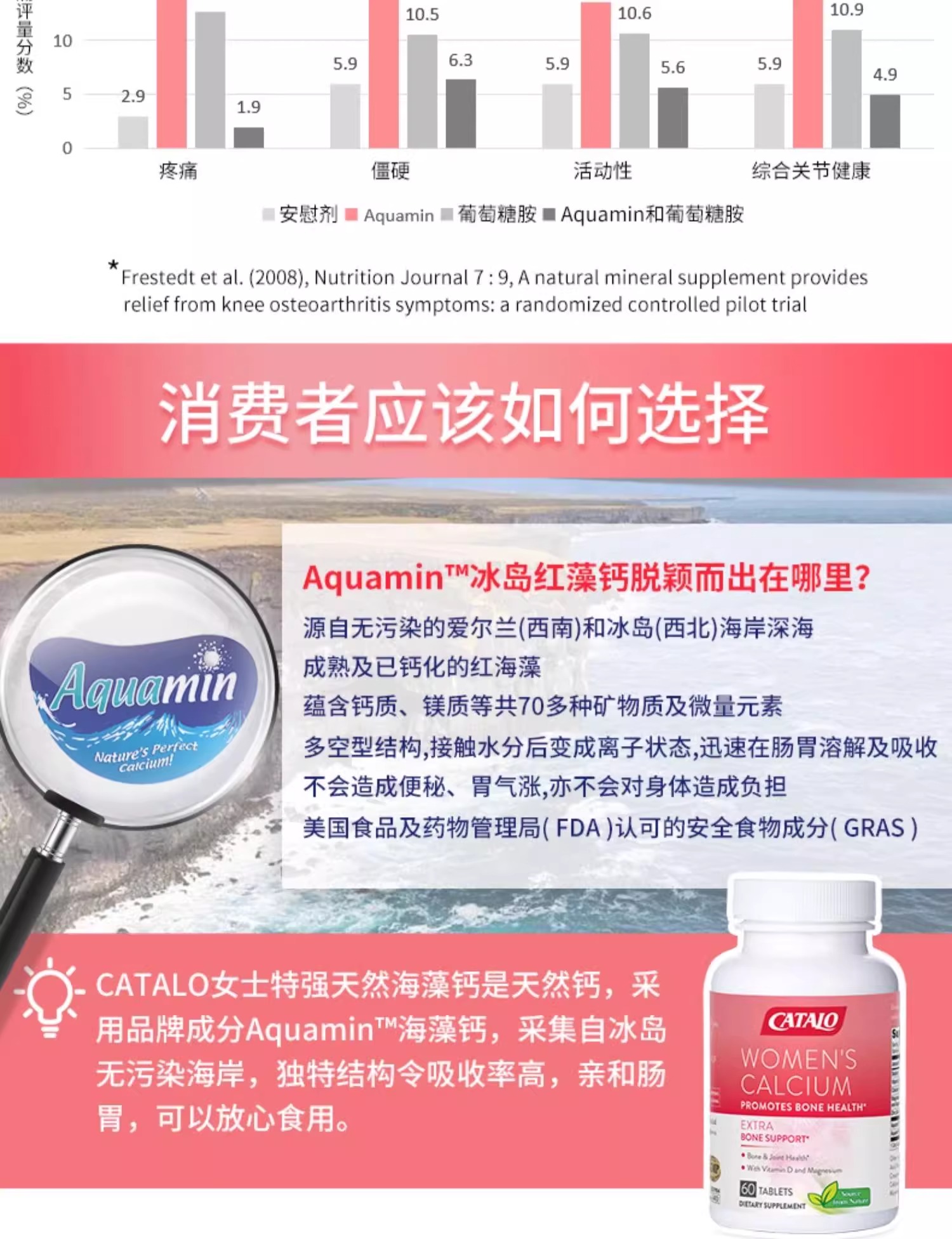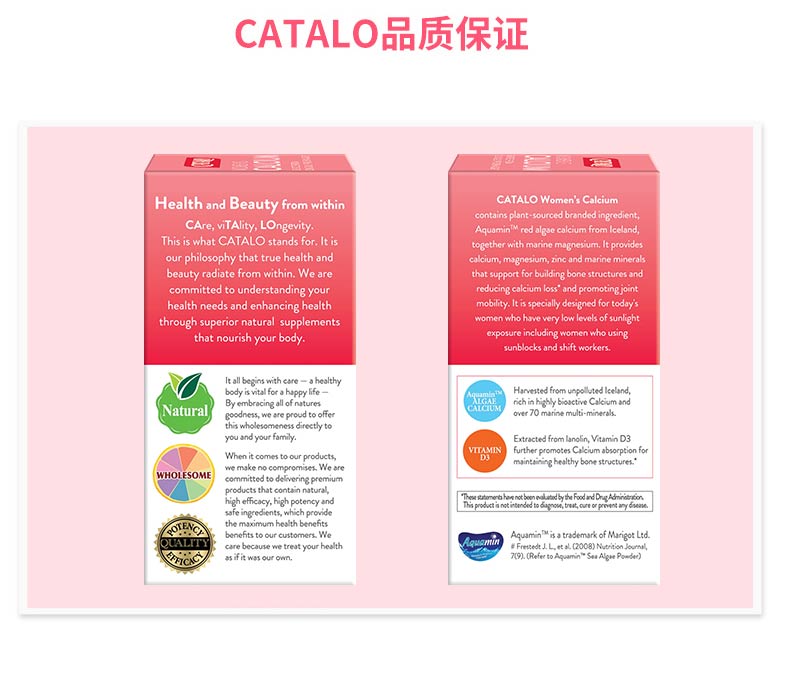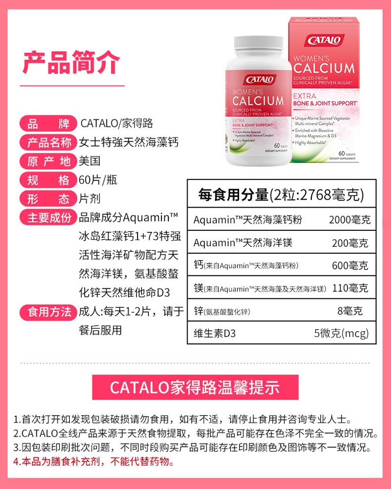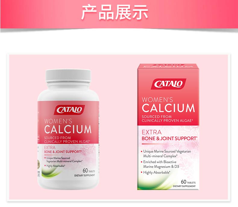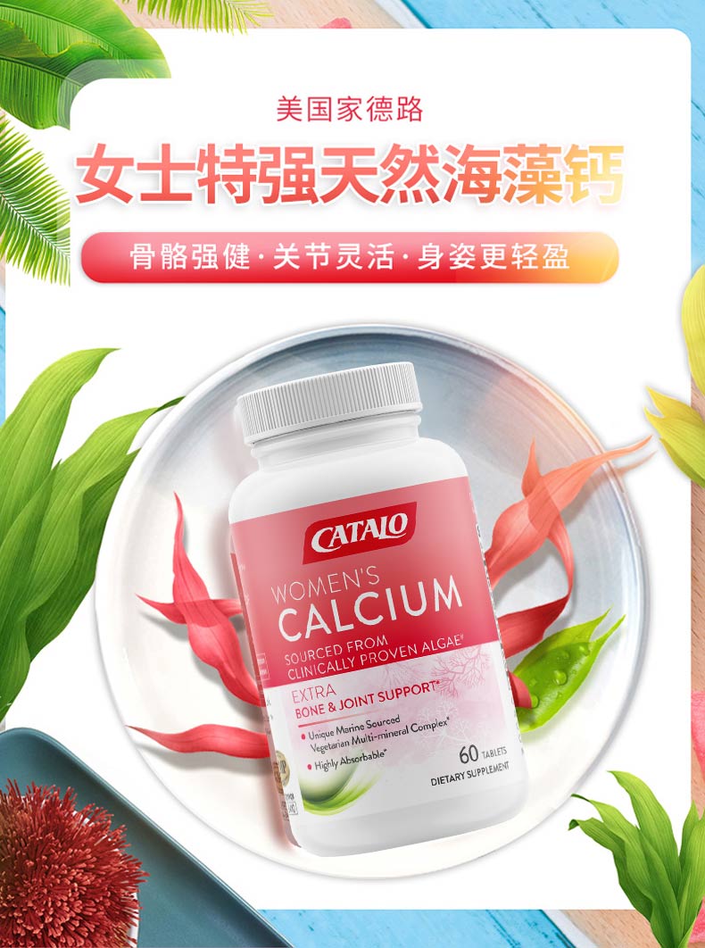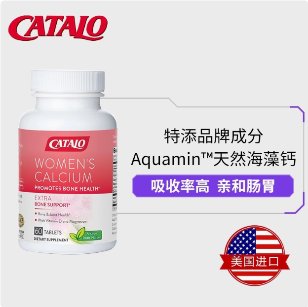 CATALO女士天然海藻钙红海藻钙+D3成人补钙骨骼进口60粒 (保质期2026.10)