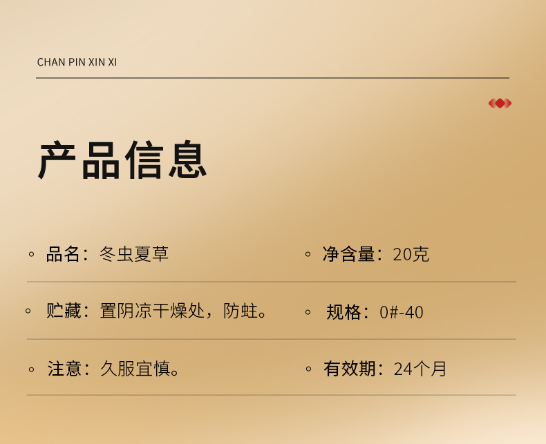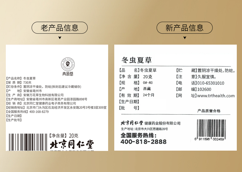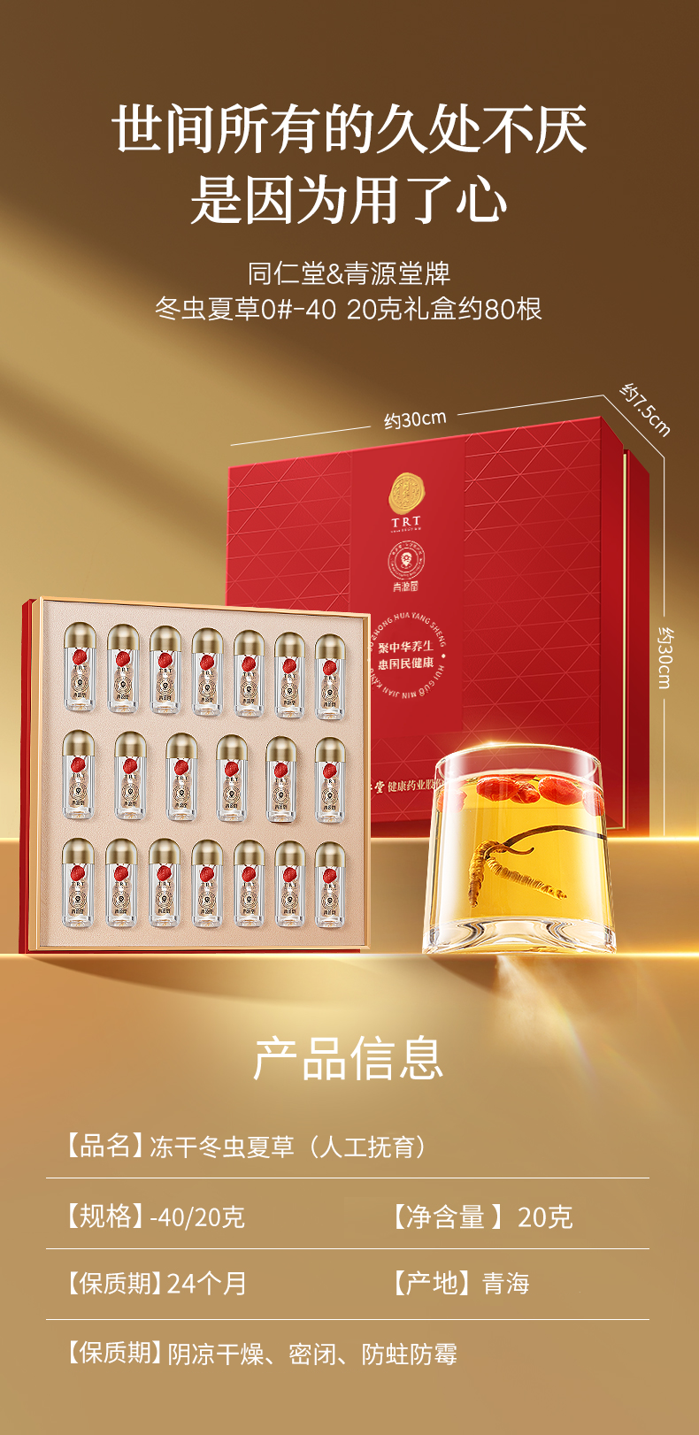 【正宗同仁堂品牌】北京同仁堂 青源堂 冬虫夏草4条/g 20克 虫草礼盒 养生礼品 SY