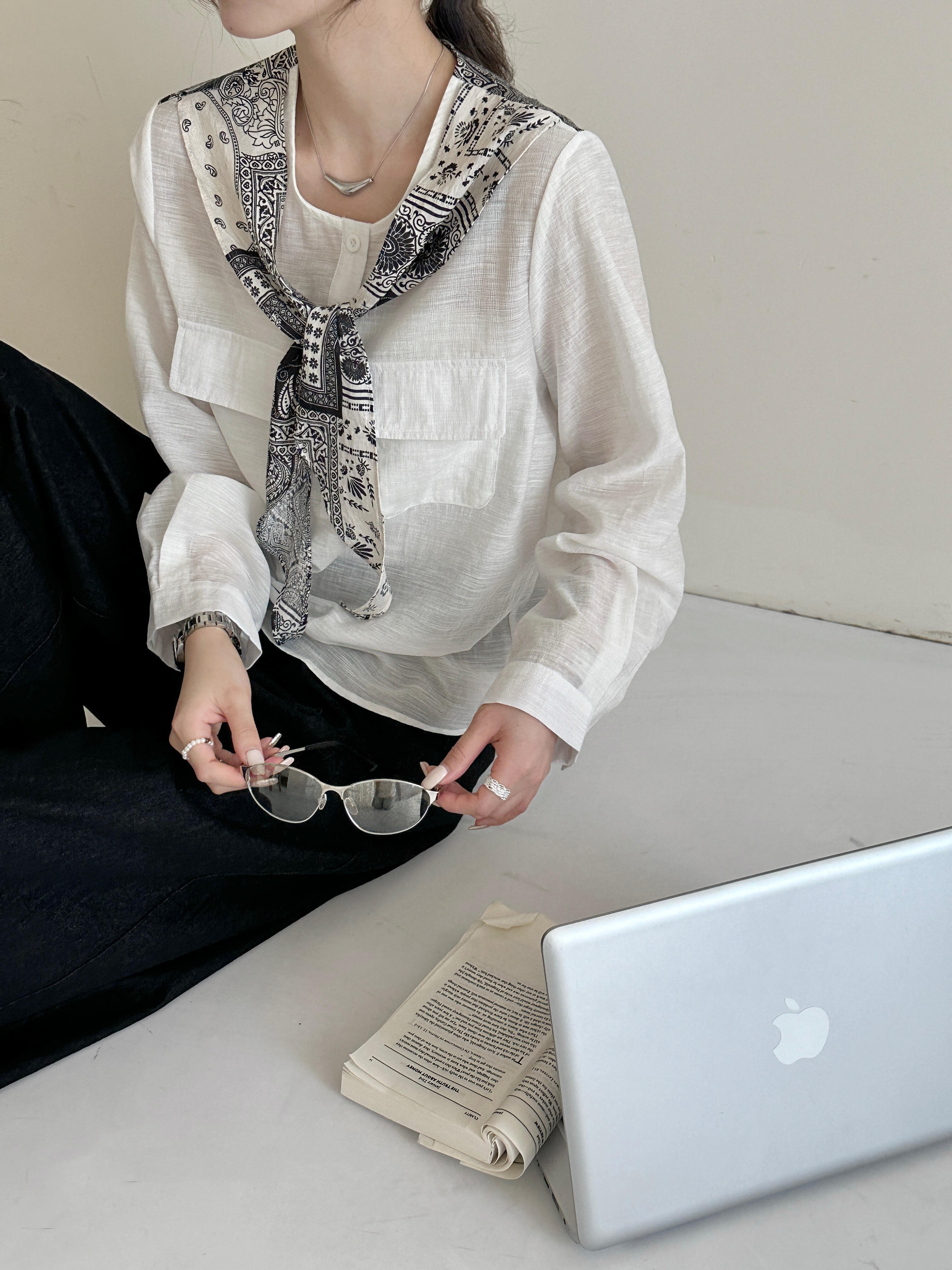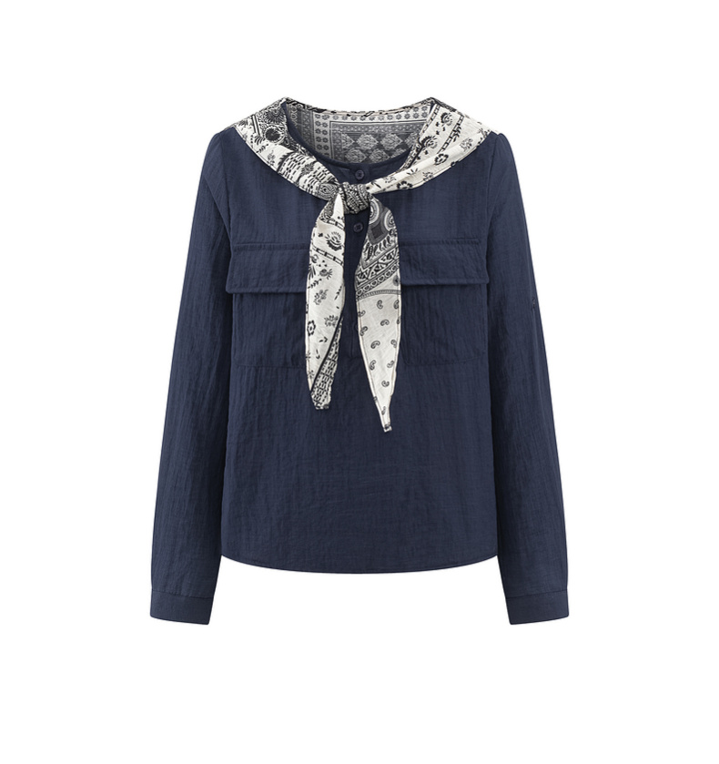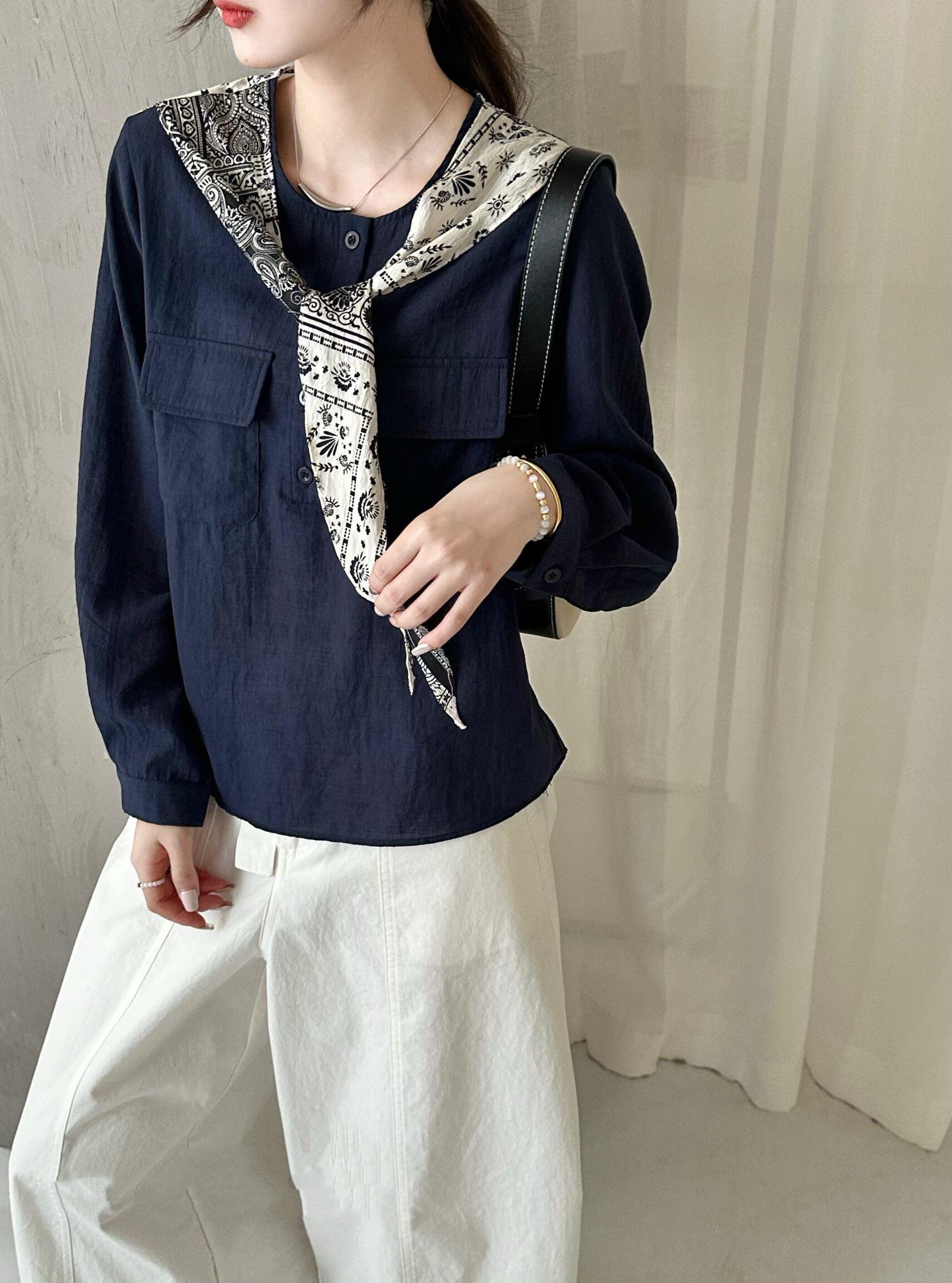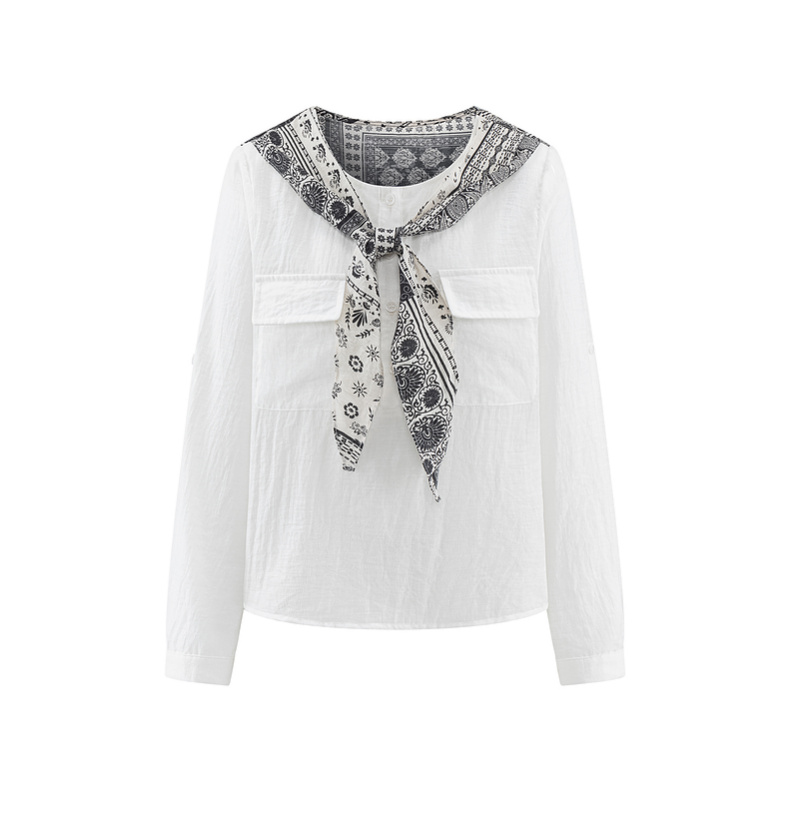 会员福利【又韩又老钱】拉夏贝尔/La Chapelle韩版宽松显瘦披肩长袖圆领假两件衬衫女上衣2025秋季新款