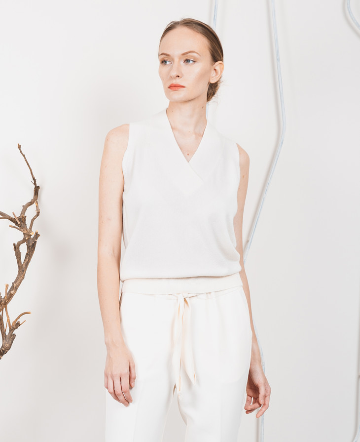叠门V领素色羊绒背心