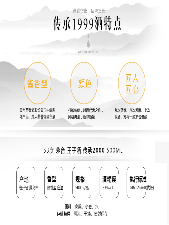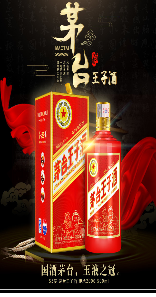 【推荐】2017年 茅台王子酒传承2000 53度500ml*6整箱装