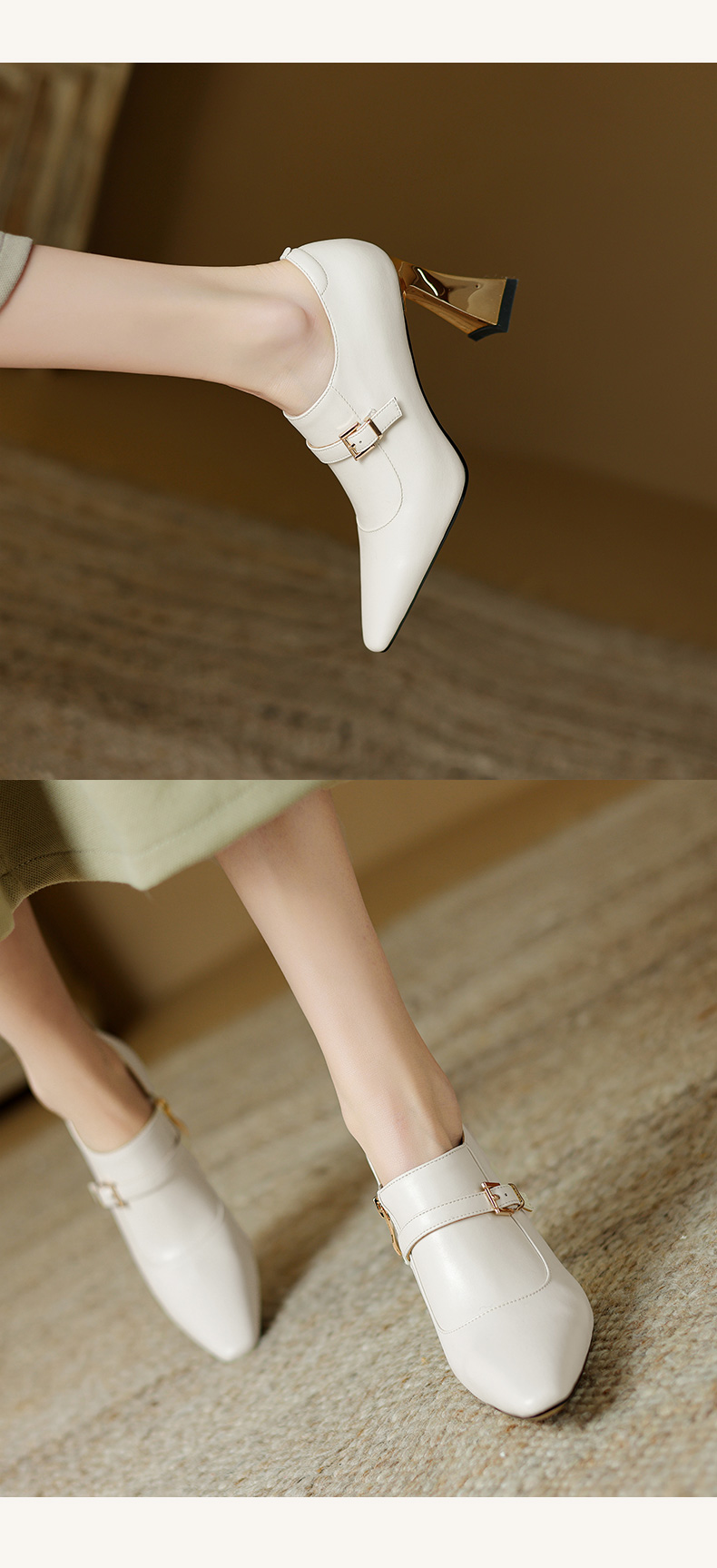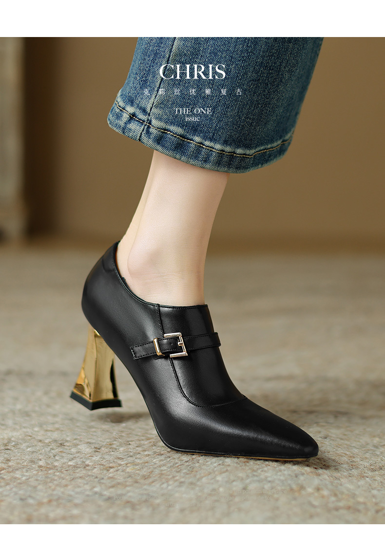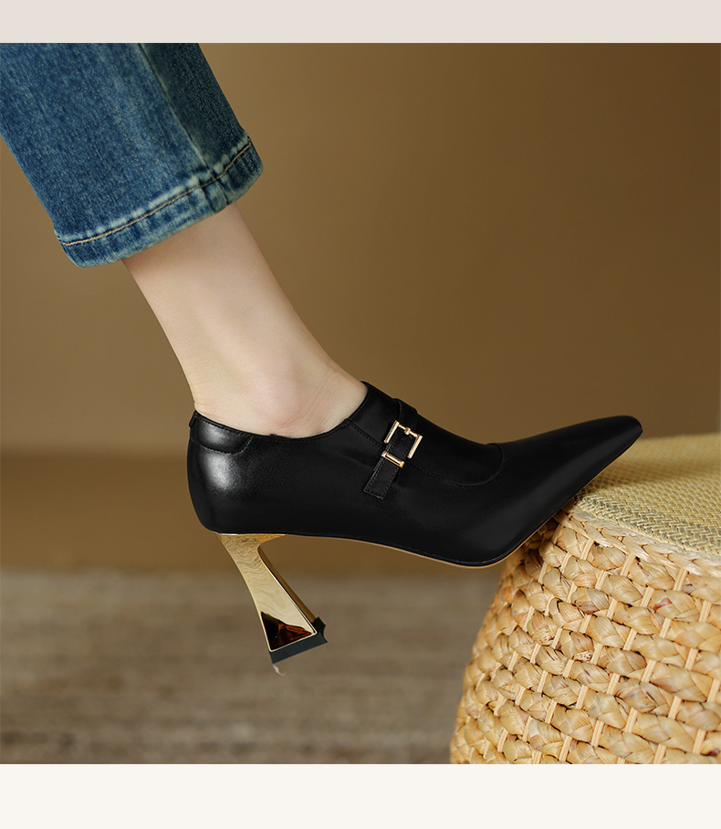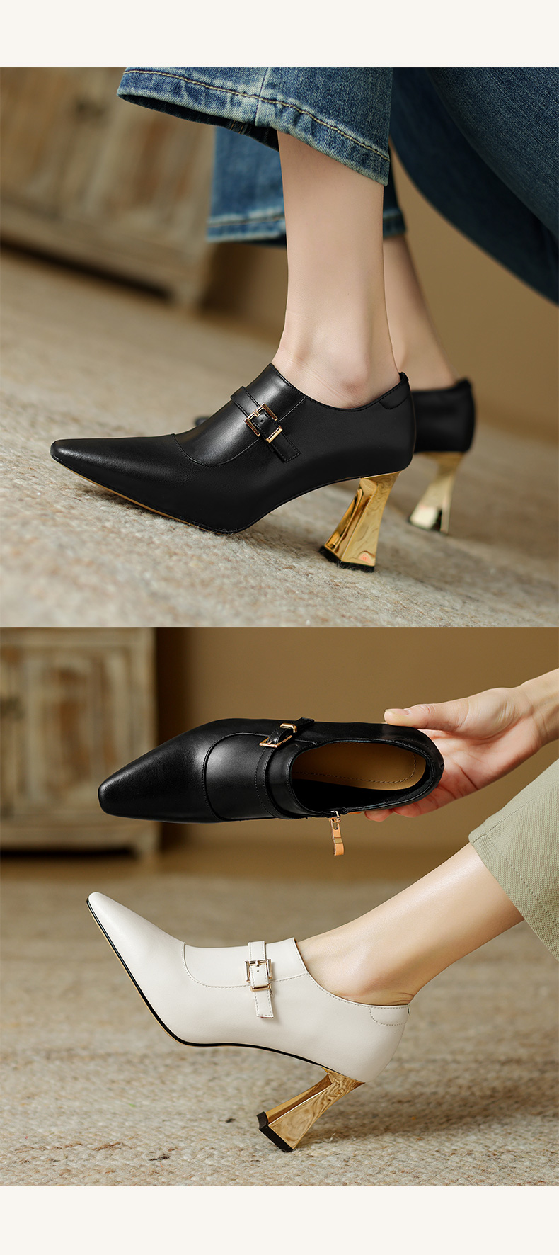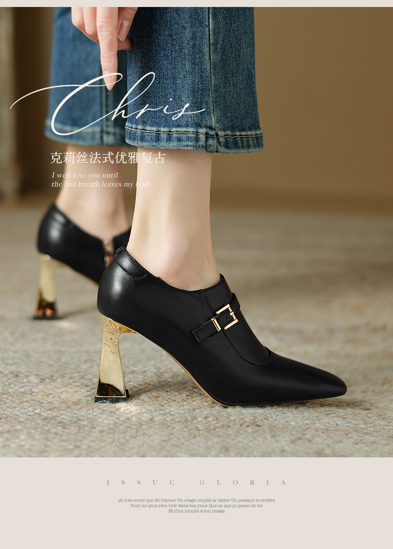 【预售5天】春季新款,性感百搭里外全真皮牛皮尖头深口高跟鞋FDME&FD8272