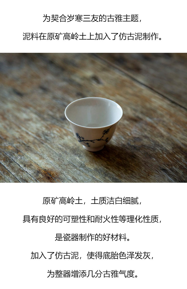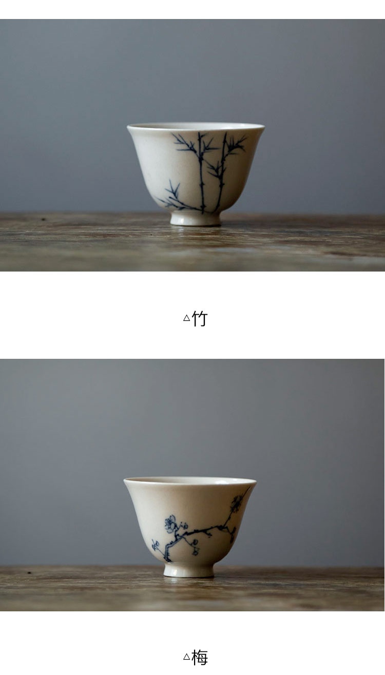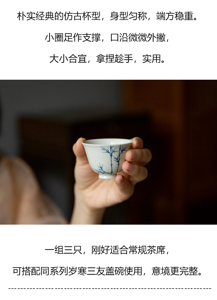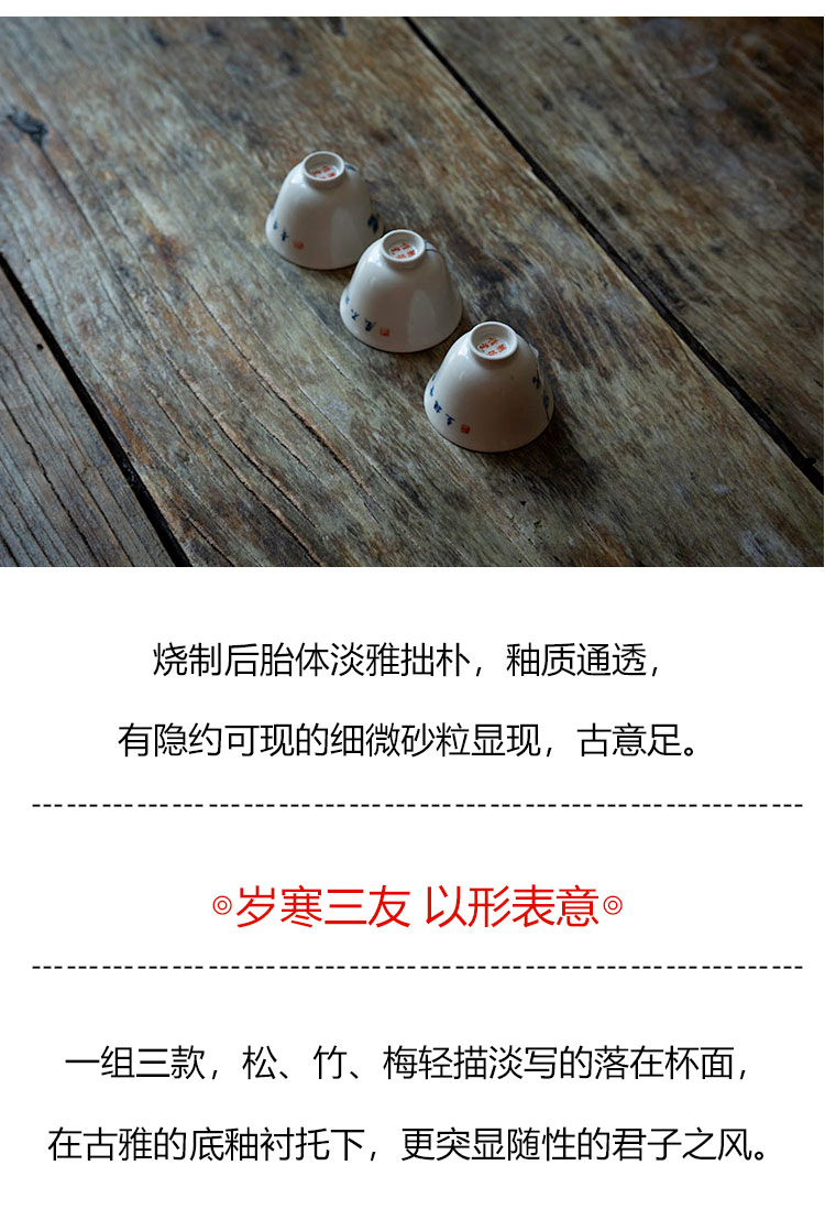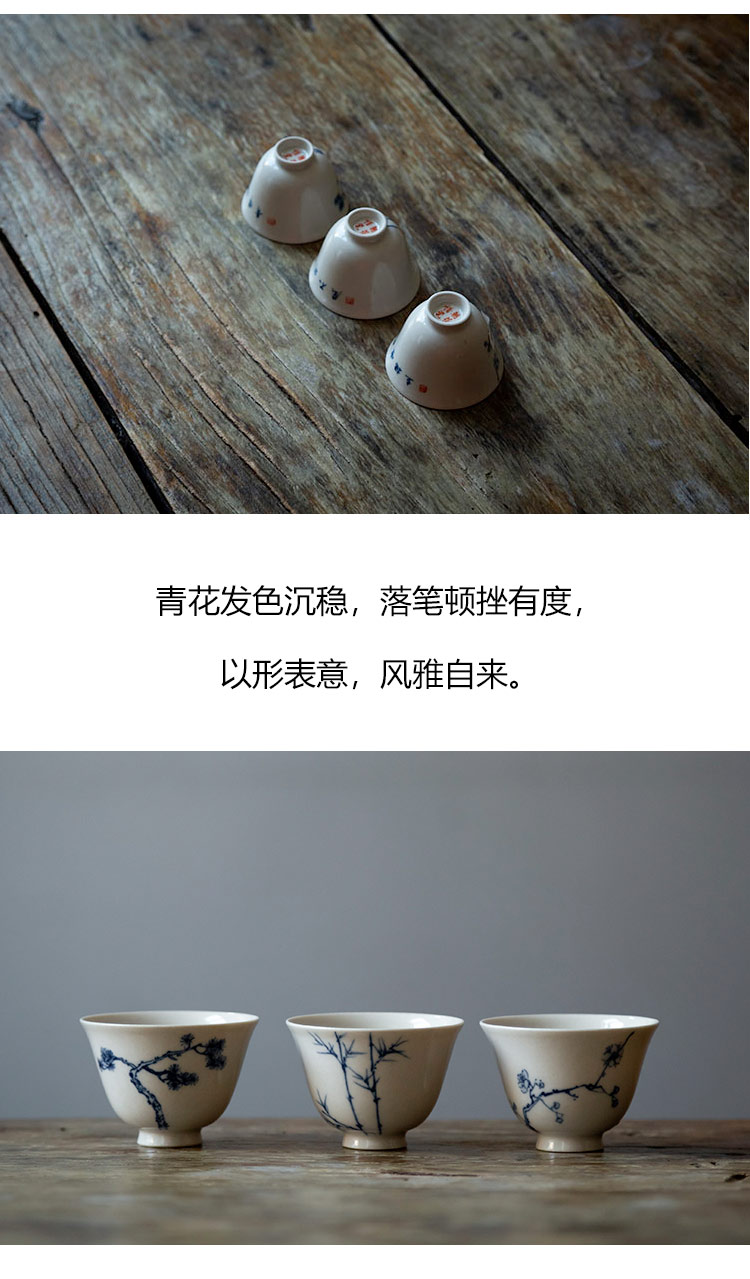 茶香记 岁寒三友主人杯 手绘青花 景德镇 朝花惜瓷 松竹梅 品杯